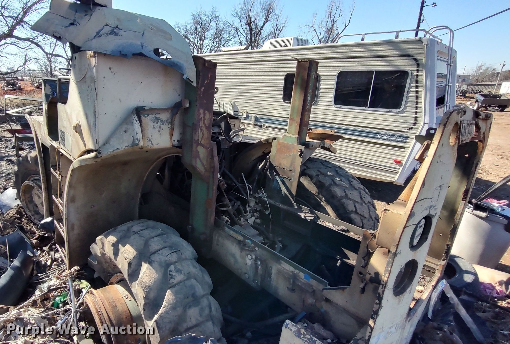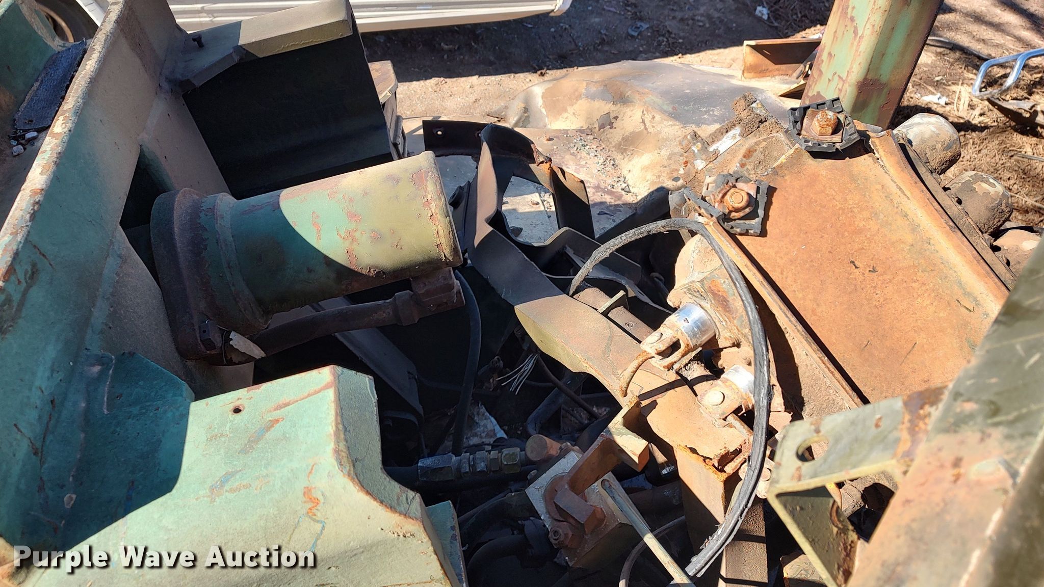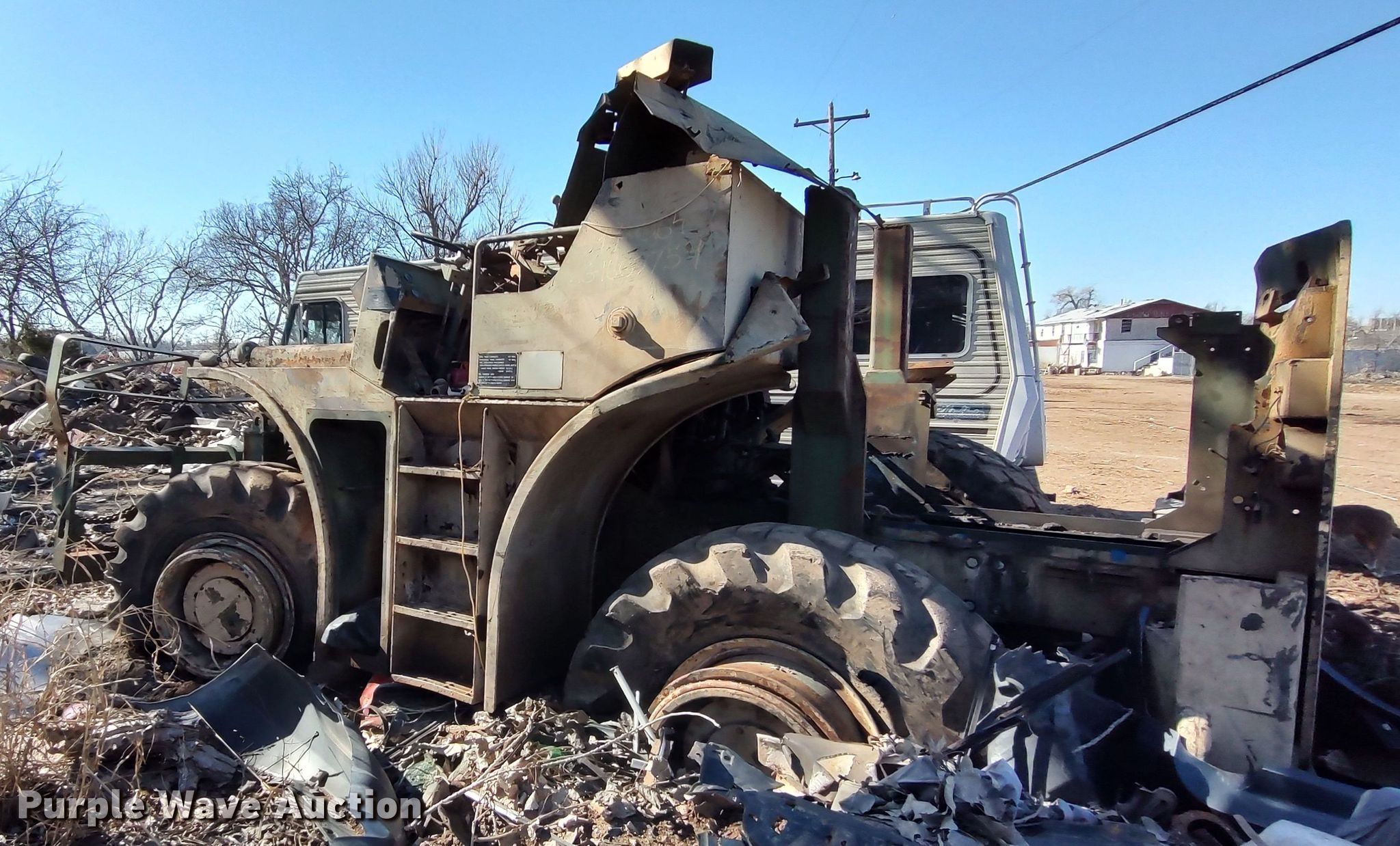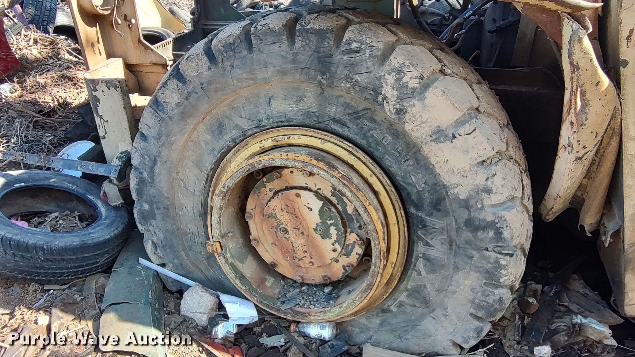 Pettibone telehandler. Hours: 574 on meter. Transmission Powershift. Features Fork length: 72". Tires Front: 20.5-25. Notes Engine missing, Parts may be missing, Flat tires, Non-operational unit. Newcastle Salvage. 4300 Newcastle Rd. Oklahoma City, OK 73119