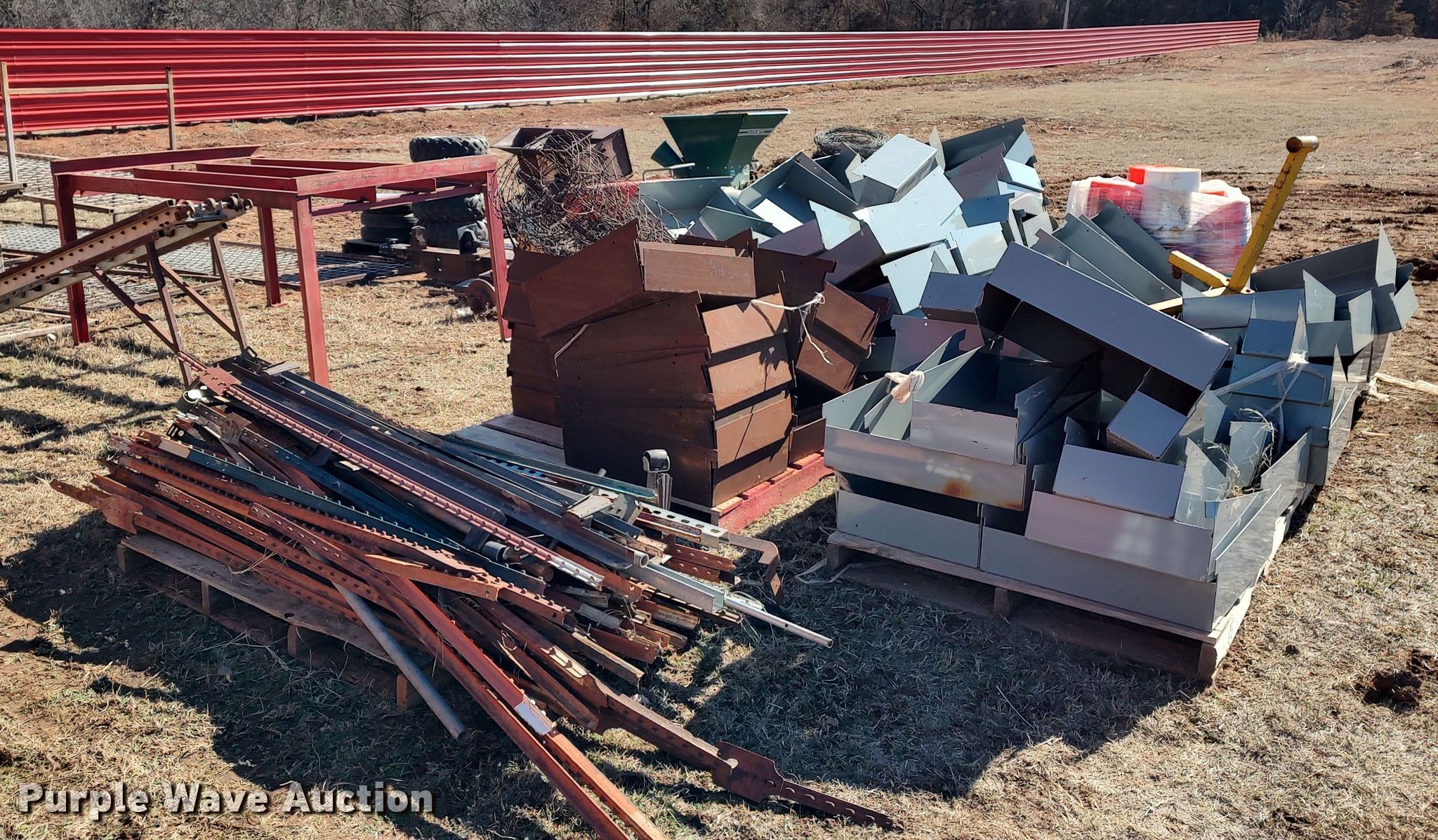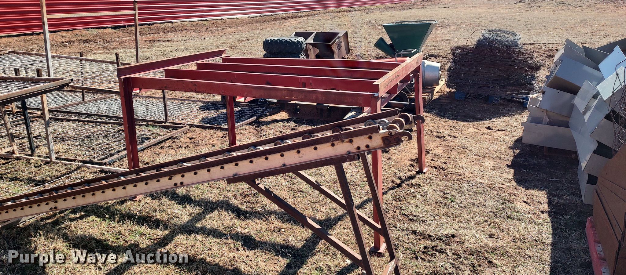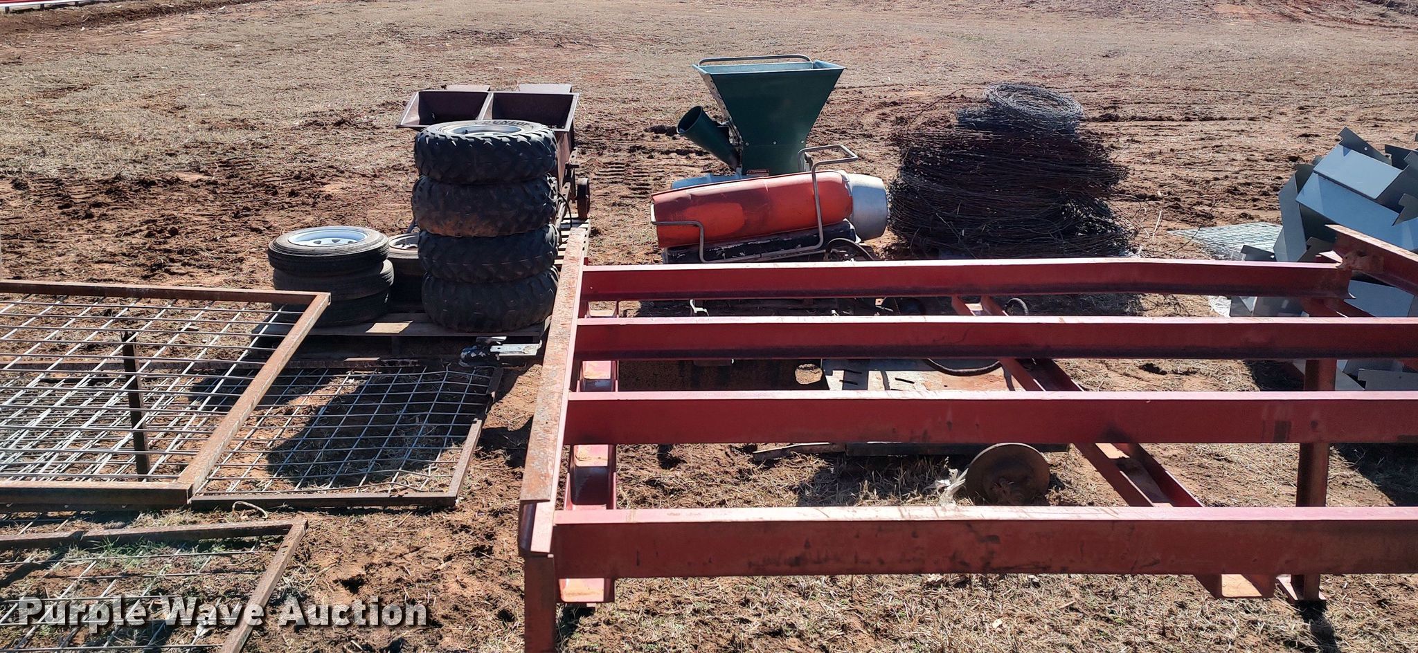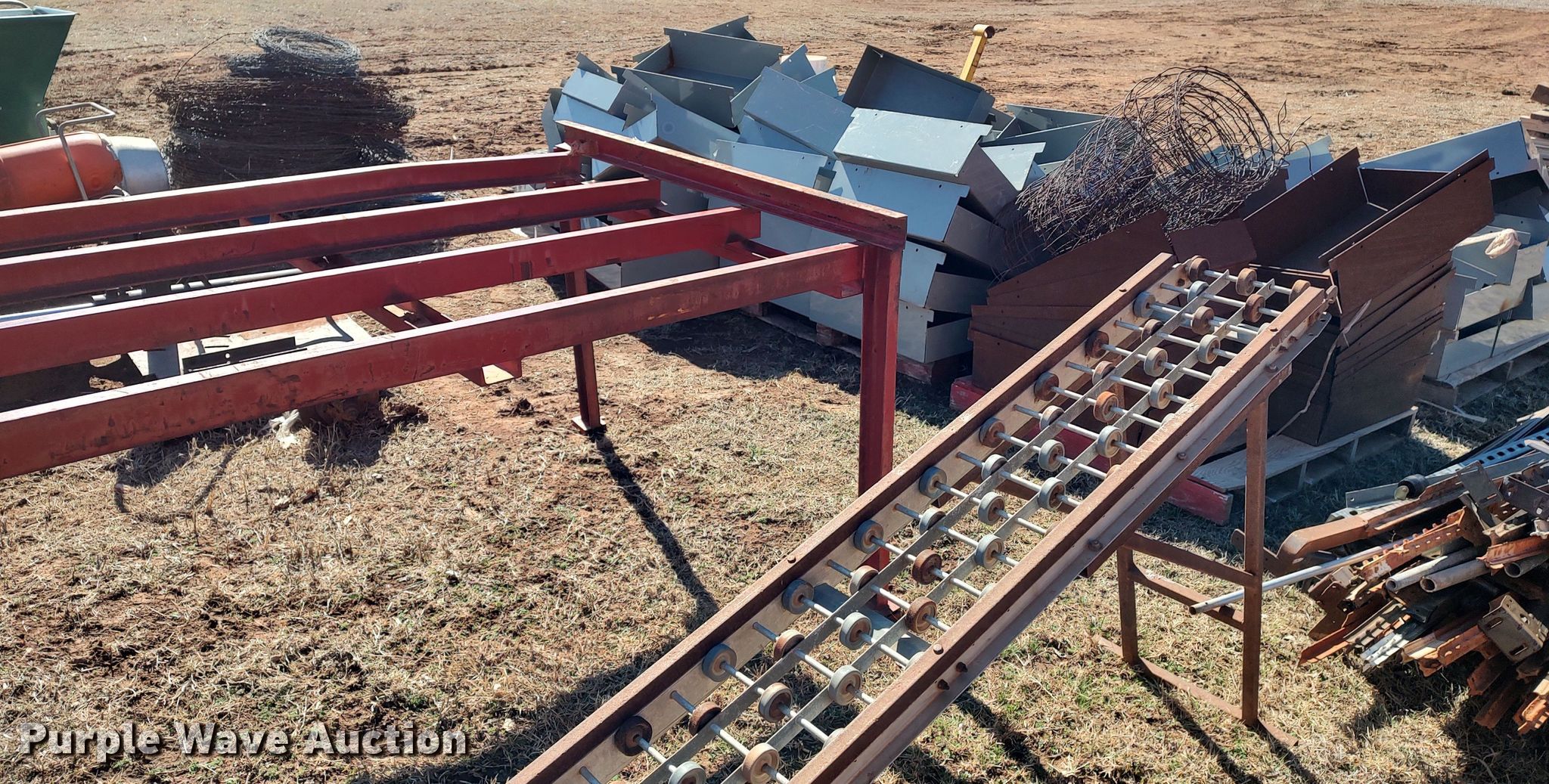 Purple Wave is selling a used Tools in Oklahoma. This item is a Tools with the following: T-posts, Conveyer rollers, Wood chipper, (2) kegs, Log splitter, Tires, Corn shuckers and more