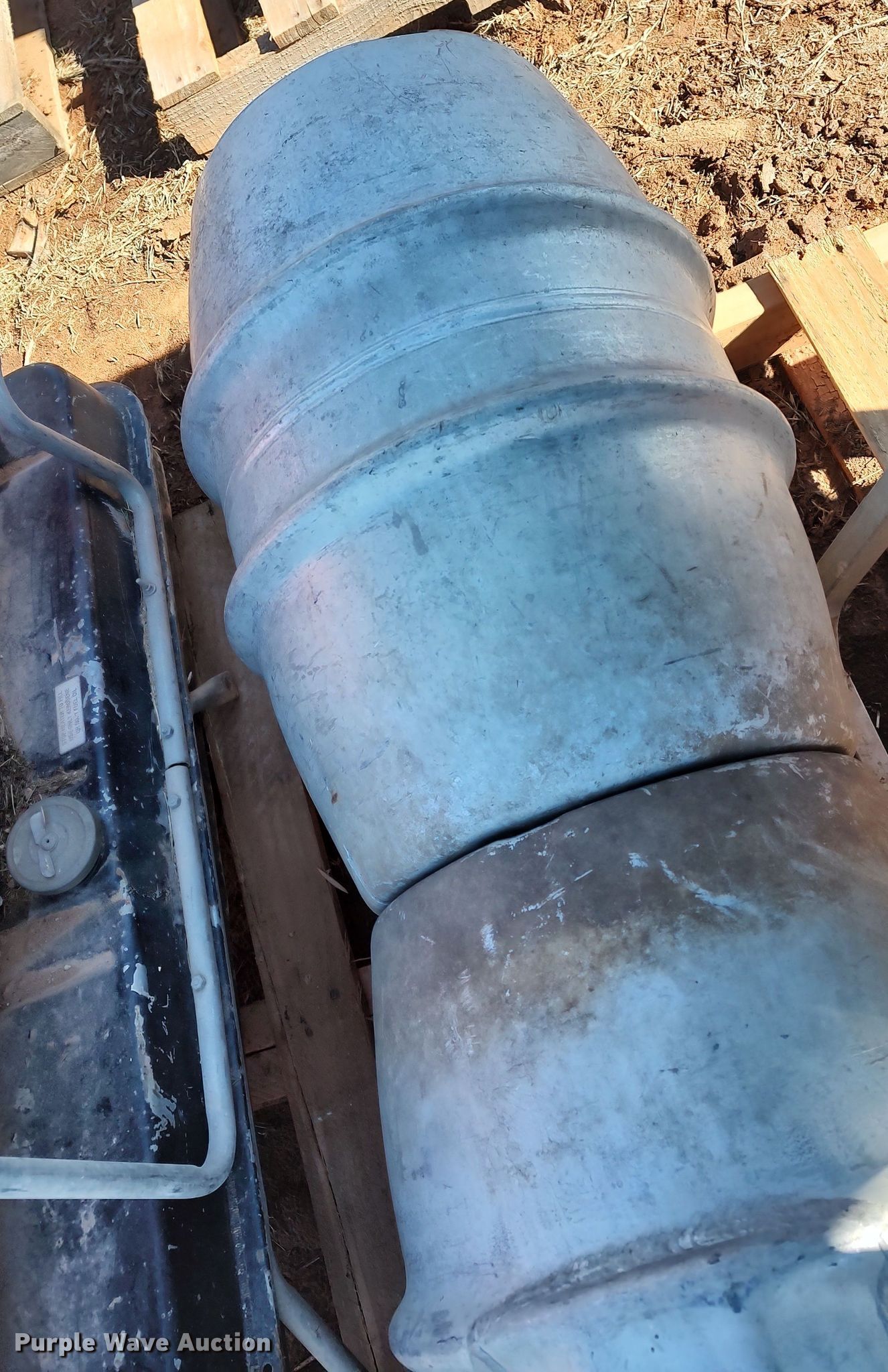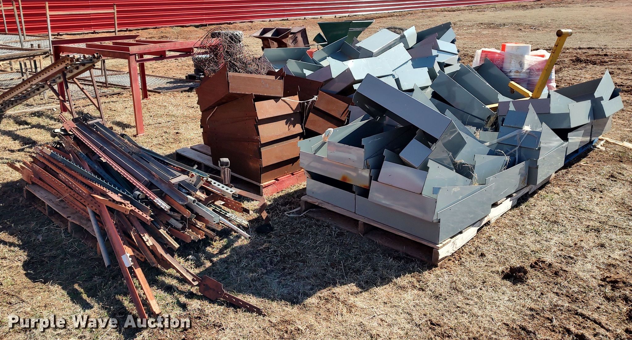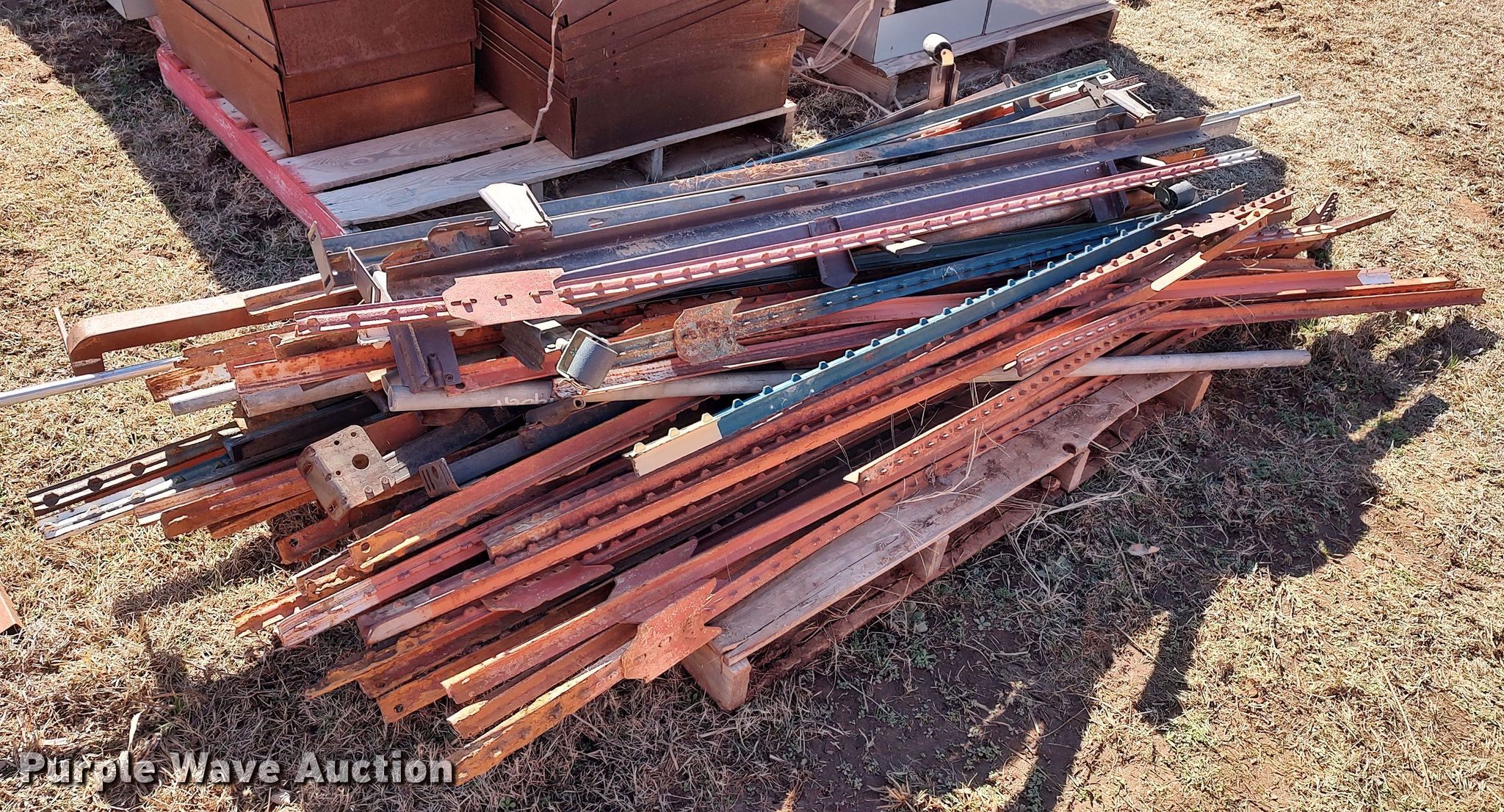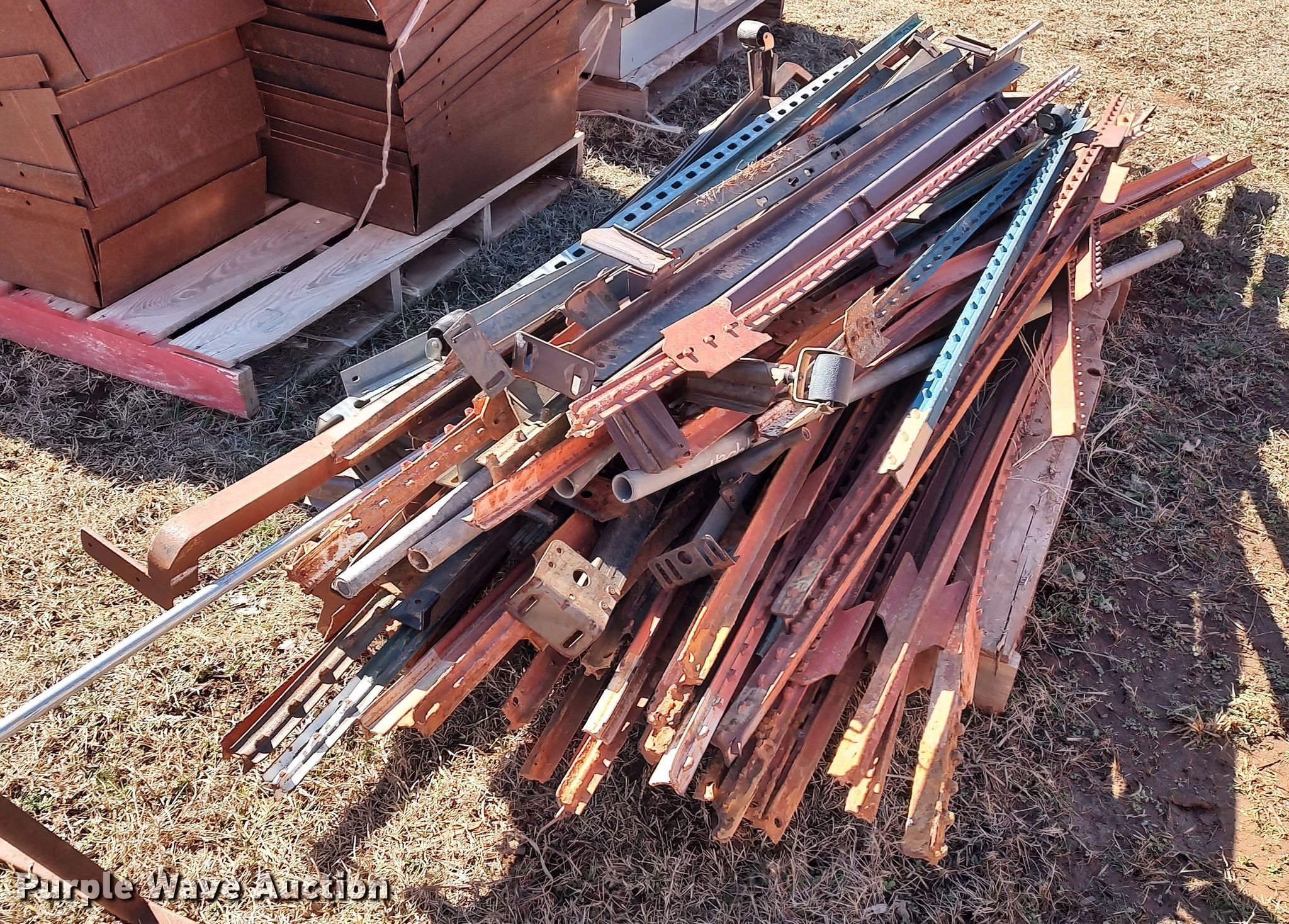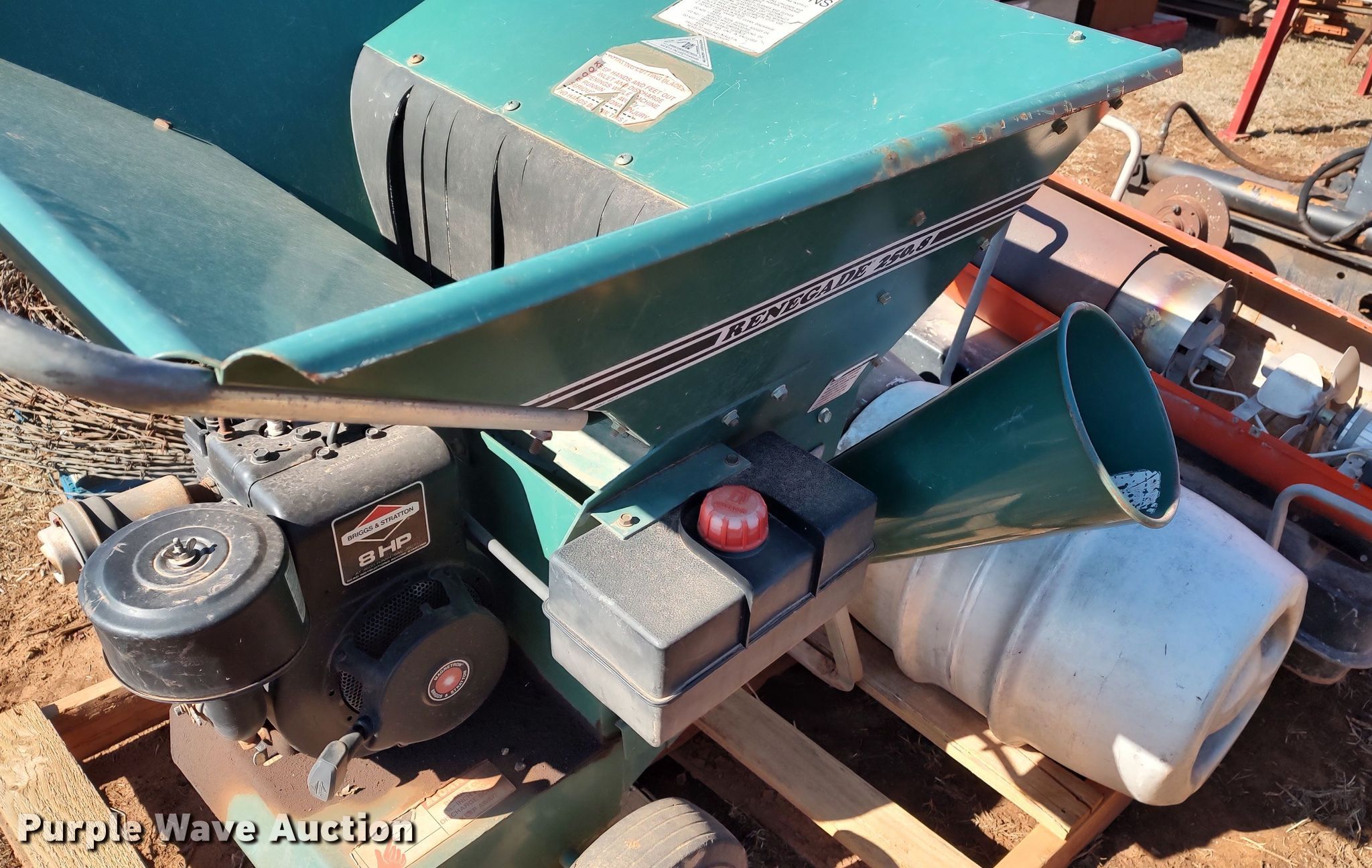 Purple Wave is selling a used Tools in Oklahoma. This item is a Tools with the following: T-posts, Conveyer rollers, Wood chipper, (2) kegs, Log splitter, Tires, Corn shuckers and more