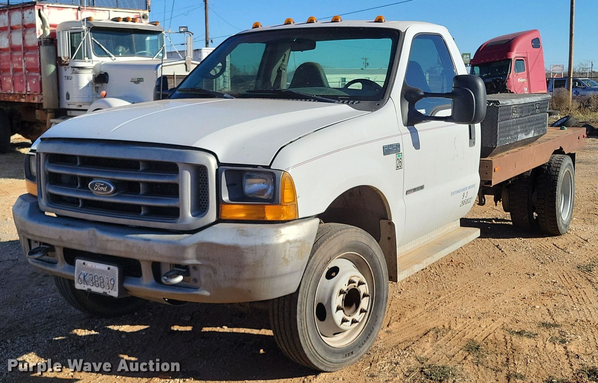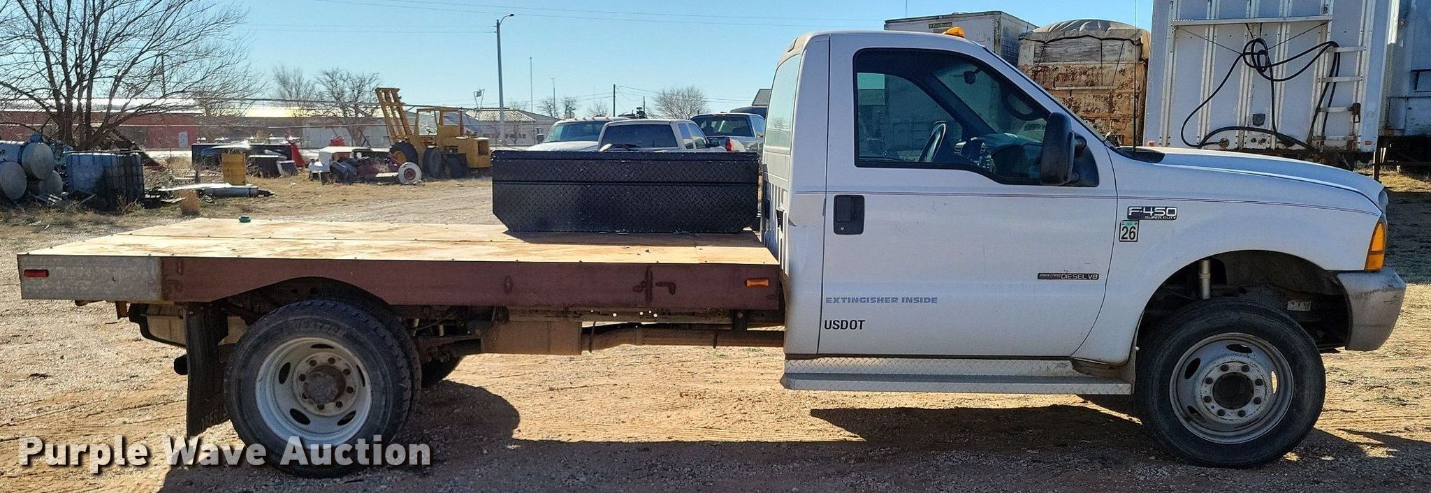 Purple Wave is selling a used Flat Bed Truck in Texas. This item is a 2000 Ford F450 Super Duty flatbed truck with the following: Miles: 330,927 on odometer, VIN: 1FDXF46F7YEE28769