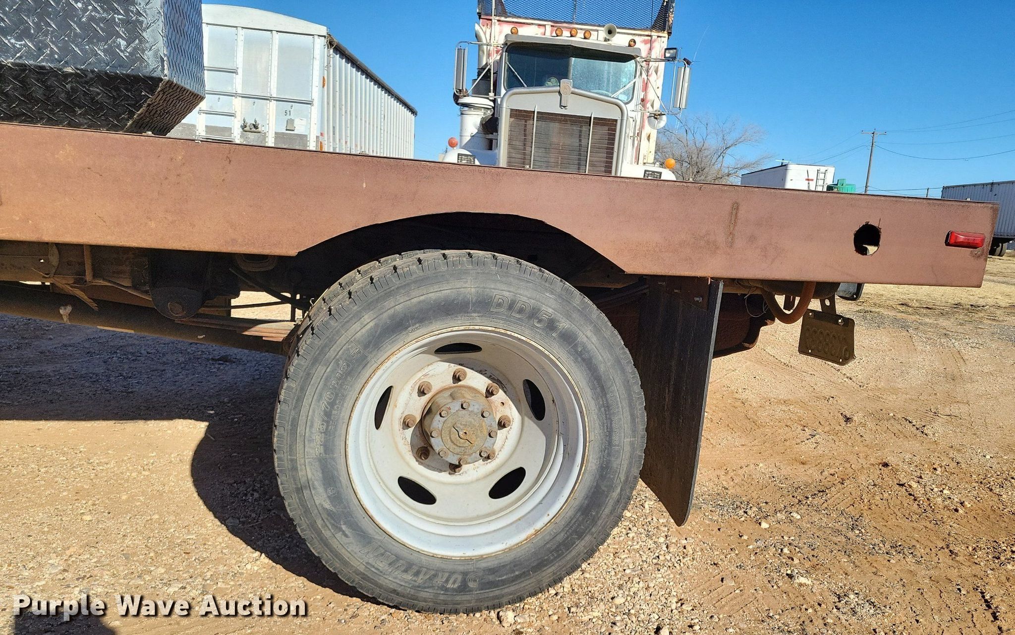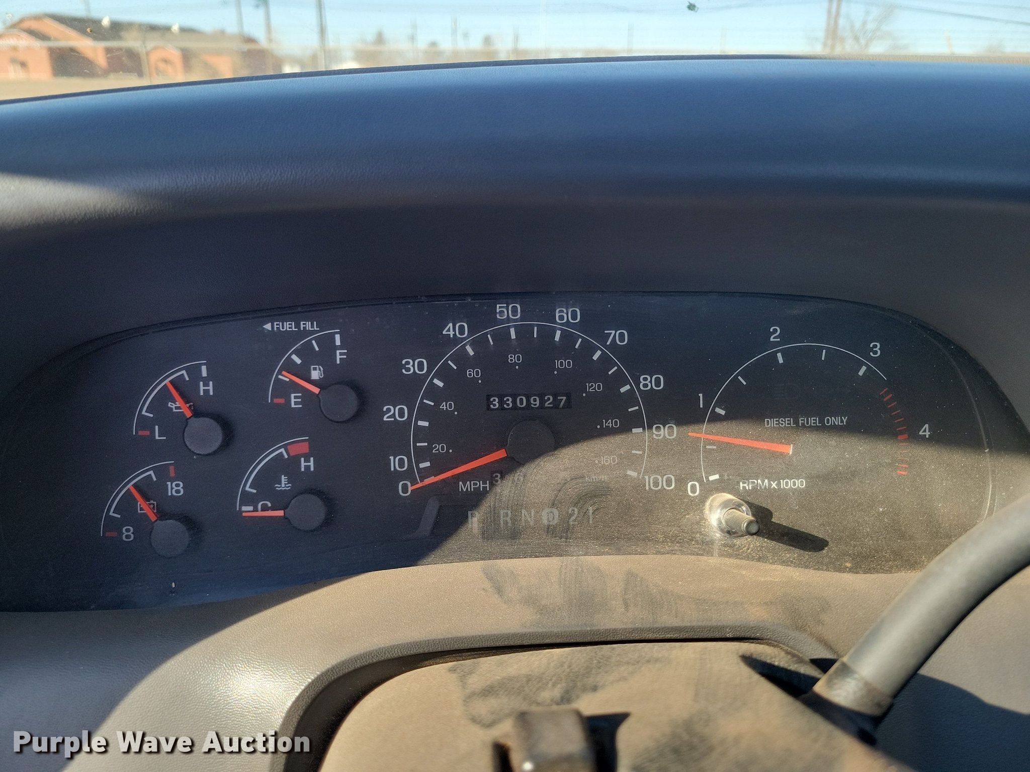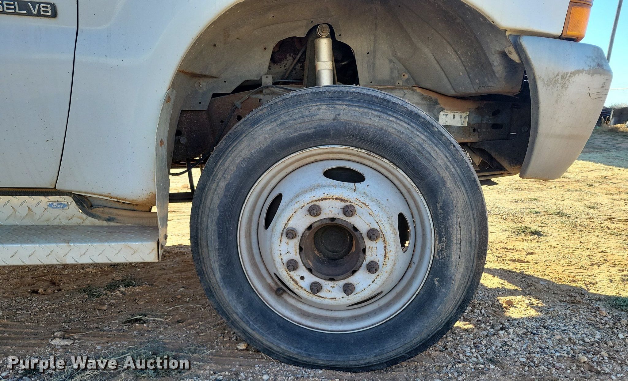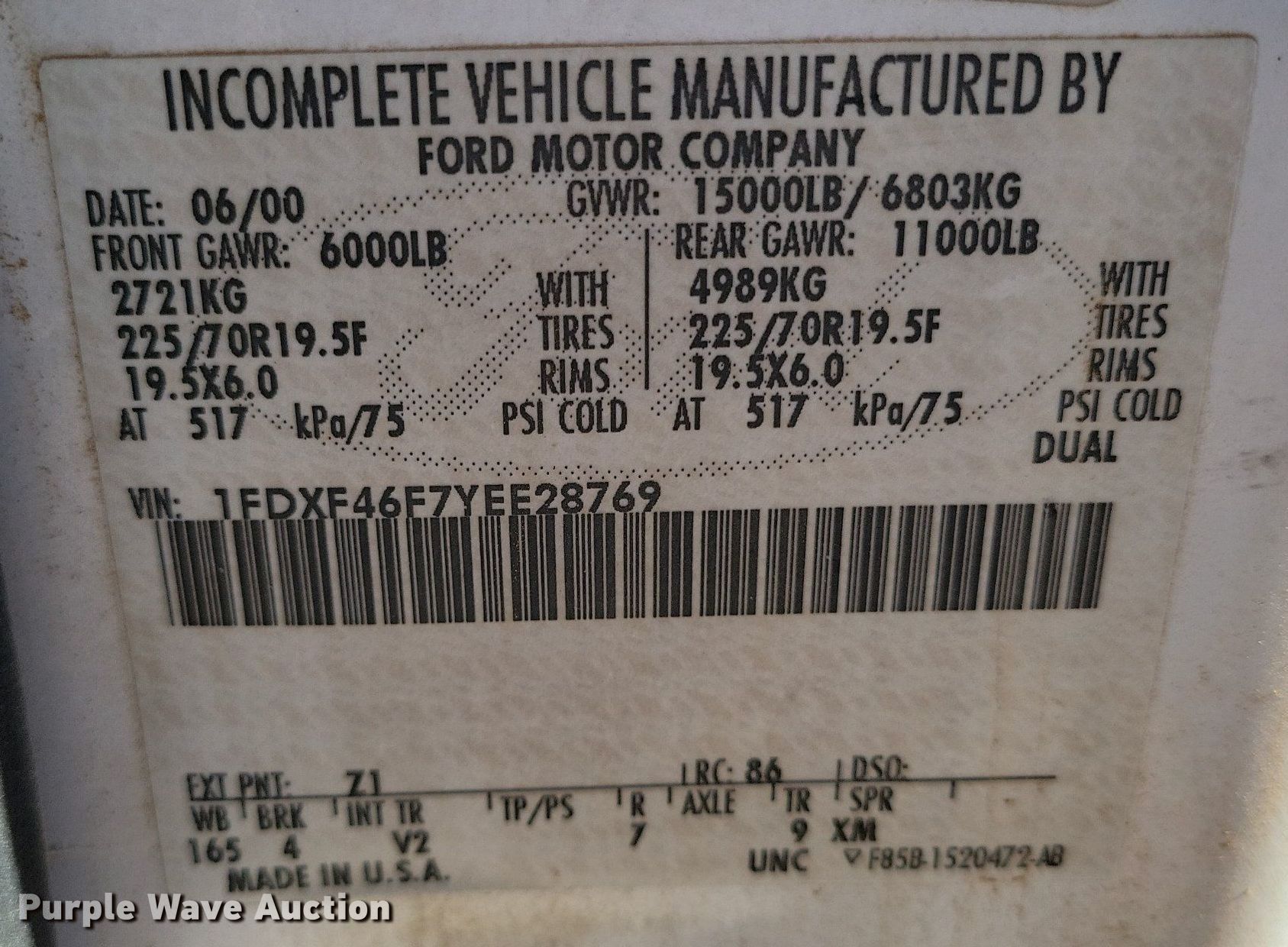 2000 Ford F450 Super Duty flatbed truck. Miles: 330,927 on odometer, VIN: 1FDXF46F7YEE28769. Engine Displacement: 7.3L, Cylinders: 8, Fuel type: Diesel. Transmission Automatic. Chassis Axles: Single, Suspension: Spring, Brakes: Hydraulic, GVWR: 15,000 lbs, Wheelbase: 165". Interior AC, Heat. Features Flatbed 11' L x 84" W. Tires Size: 225/70R19.5. Notes Windshield chipped or cracked. California title. 717 Seagraves Hwy. Brownfield, TX 79316