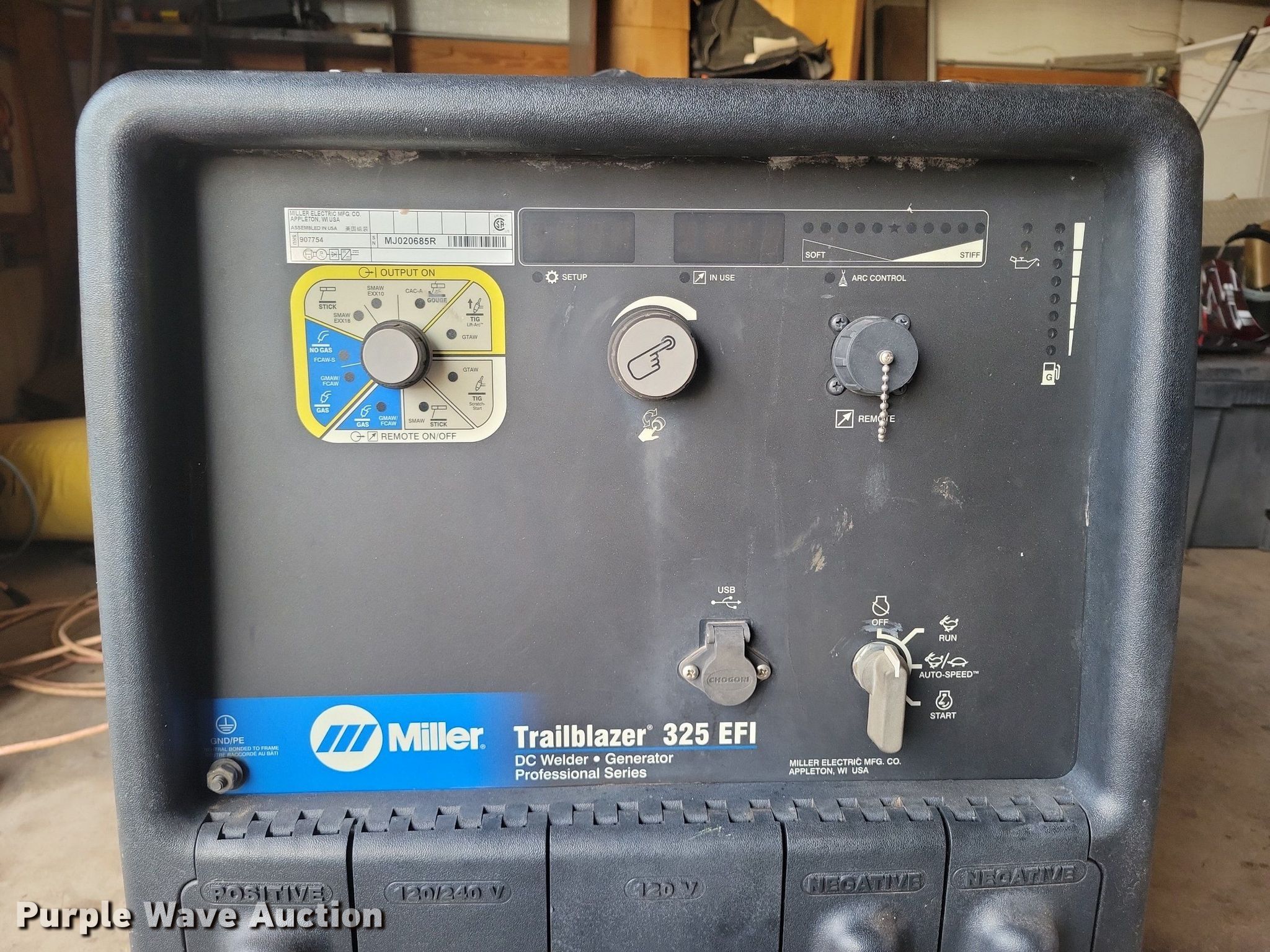 Purple Wave is selling a used Welder (Manual) in Oklahoma. This item is a Miller Trailblazer 325 EFI welder/generator with the following: Serial: MJ020685R
