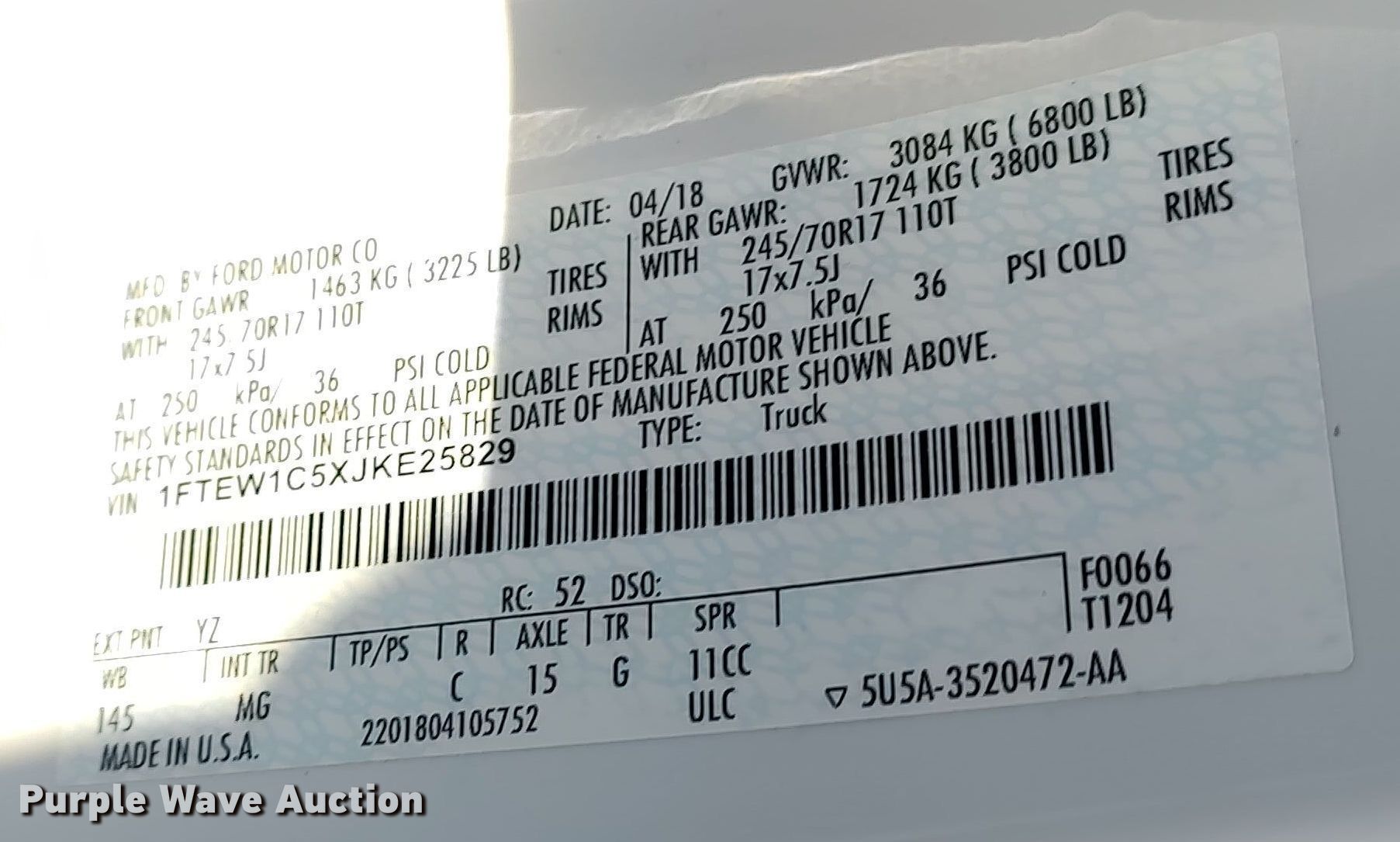 • VIN: 1FTEW1C5XJKE25829