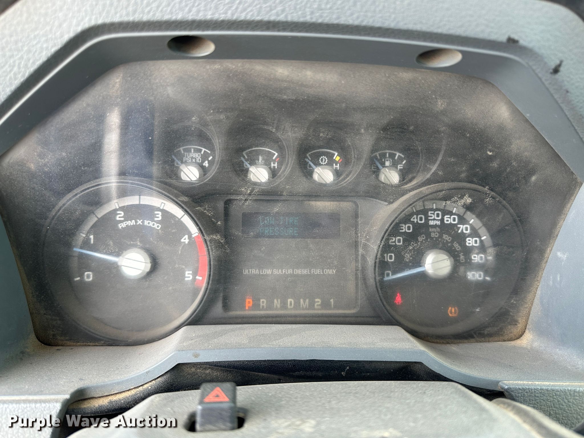 2014 Ford F250 Super Duty XL Crew Cab pickup truck. Miles: 372,150 on odometer, VIN: 1FT7W2BT4EEB25576. Engine Displacement: 6.7L V8 OHV, Cylinders: 8, Fuel type: Diesel. Transmission Automatic, Four wheel drive. Interior AC, Heat, Cruise control. Tires Size: 265/70R17. Notes Dash warning indicator: TPMS, Windshield chipped or cracked, Water pump may need replaced. Kansas title. Hurricane Well Services. 2480 E 8th St. Hays, KS 67601