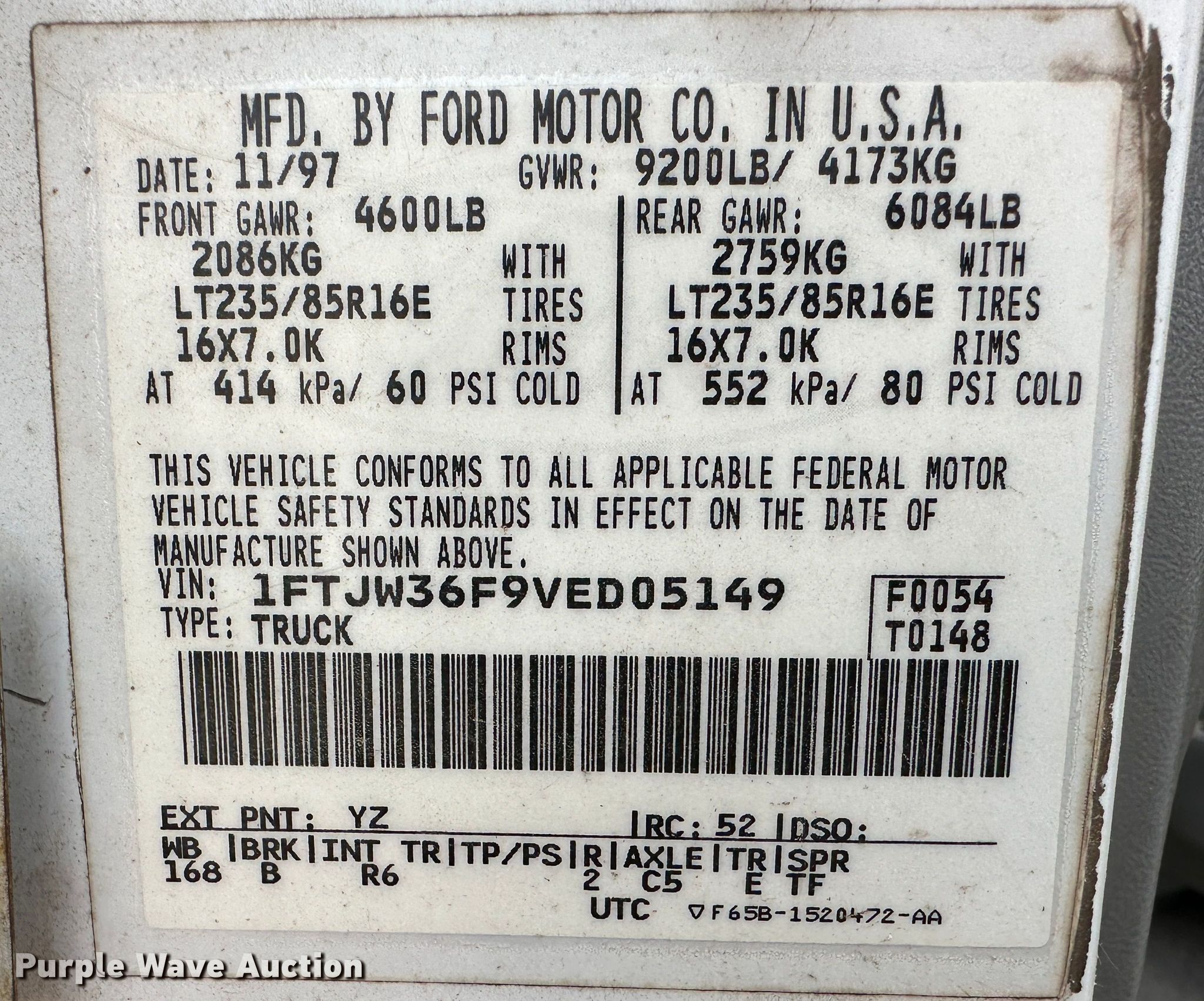 - VIN: 1FTJW36F9VED05149