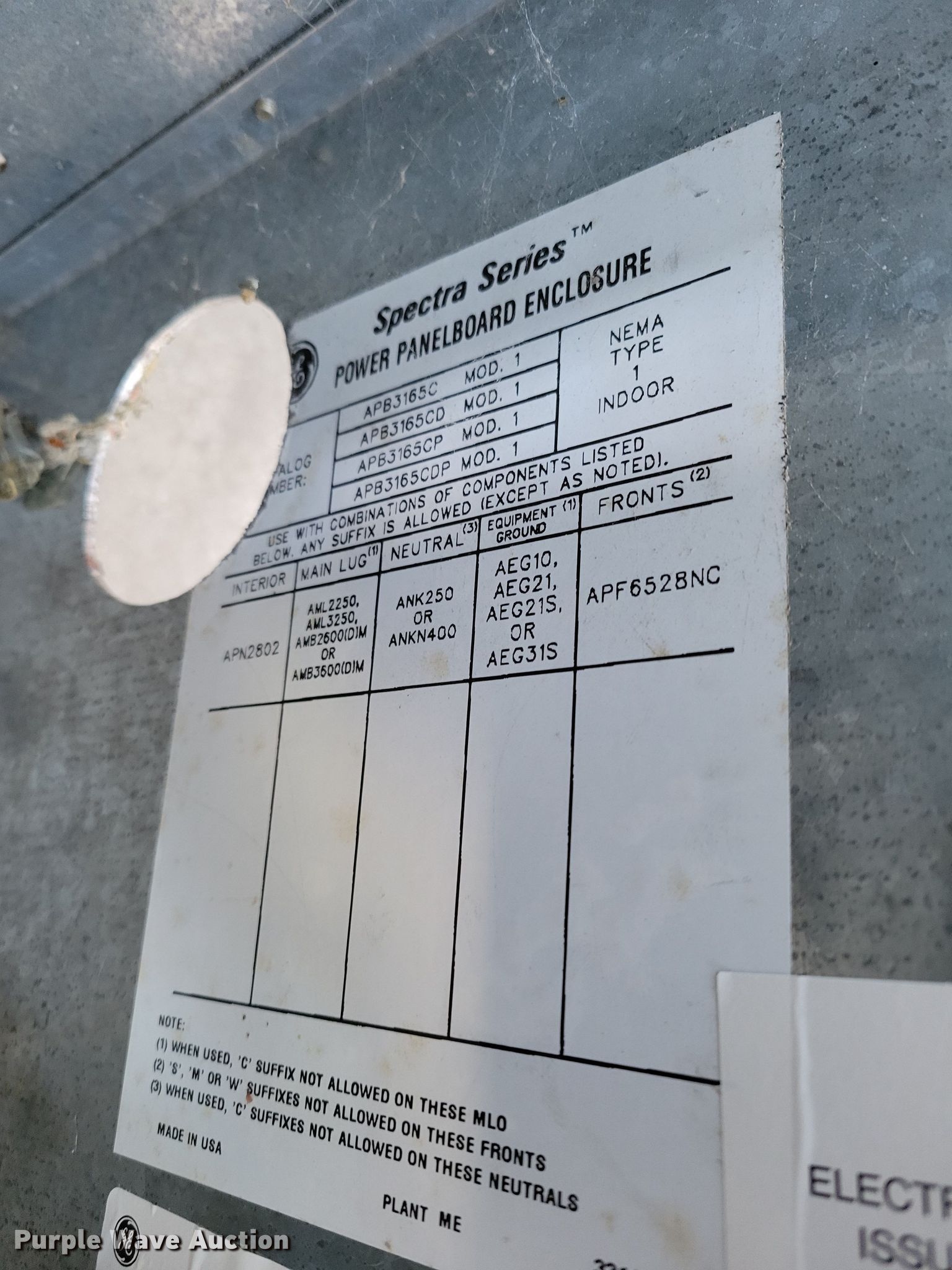 Purple Wave is selling a used Tools in Nebraska. This item is a GE Spectra Series Power Panelboards safety switch enclosure with the following: Dimensions: 31"W x 12.5"D x 65"H, 240V, Three phase, Four-wire