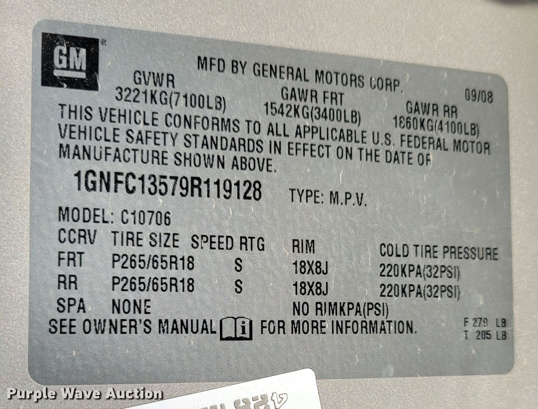 Purple Wave is selling a used Passenger Vehicle in Nebraska. This item is a 2009 Chevrolet Tahoe Hybrid 2 Mode SUV with the following: Miles: 218,478 on odometer, VIN: 1GNFC13579R119128