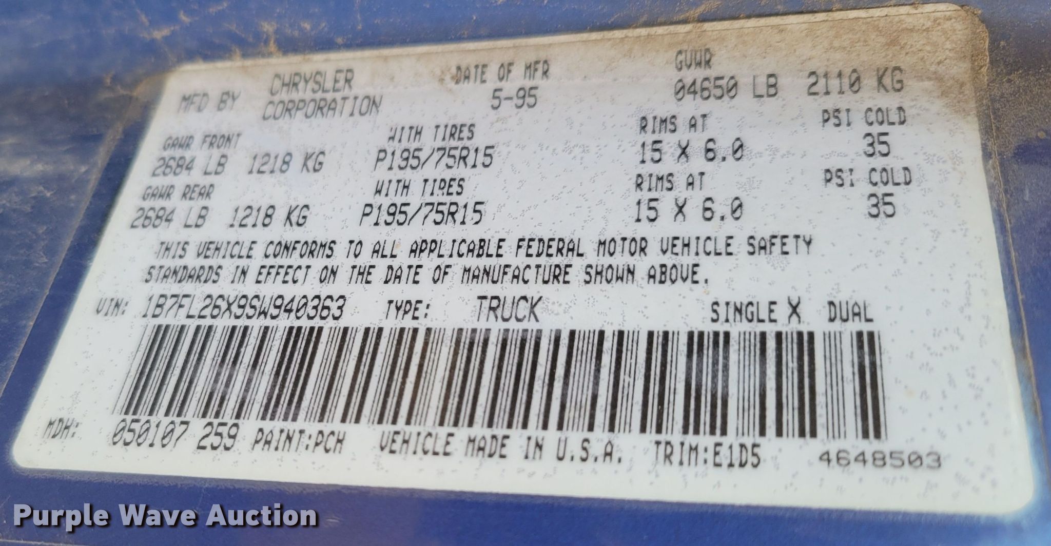 Purple Wave is selling a used Compact Pickup or Van in Nebraska. This item is a 1995 Dodge Dakota pickup truck with the following: Miles: 172,013 on odometer, VIN: 1B7FL26X9SW940363