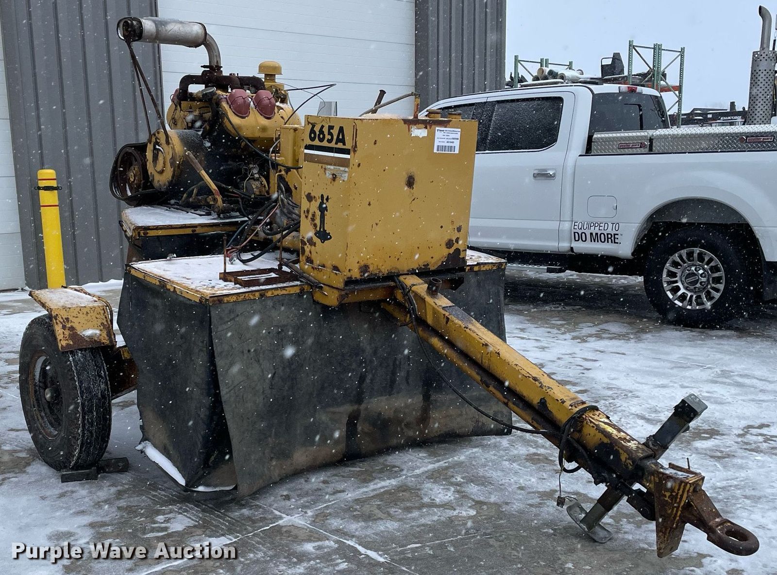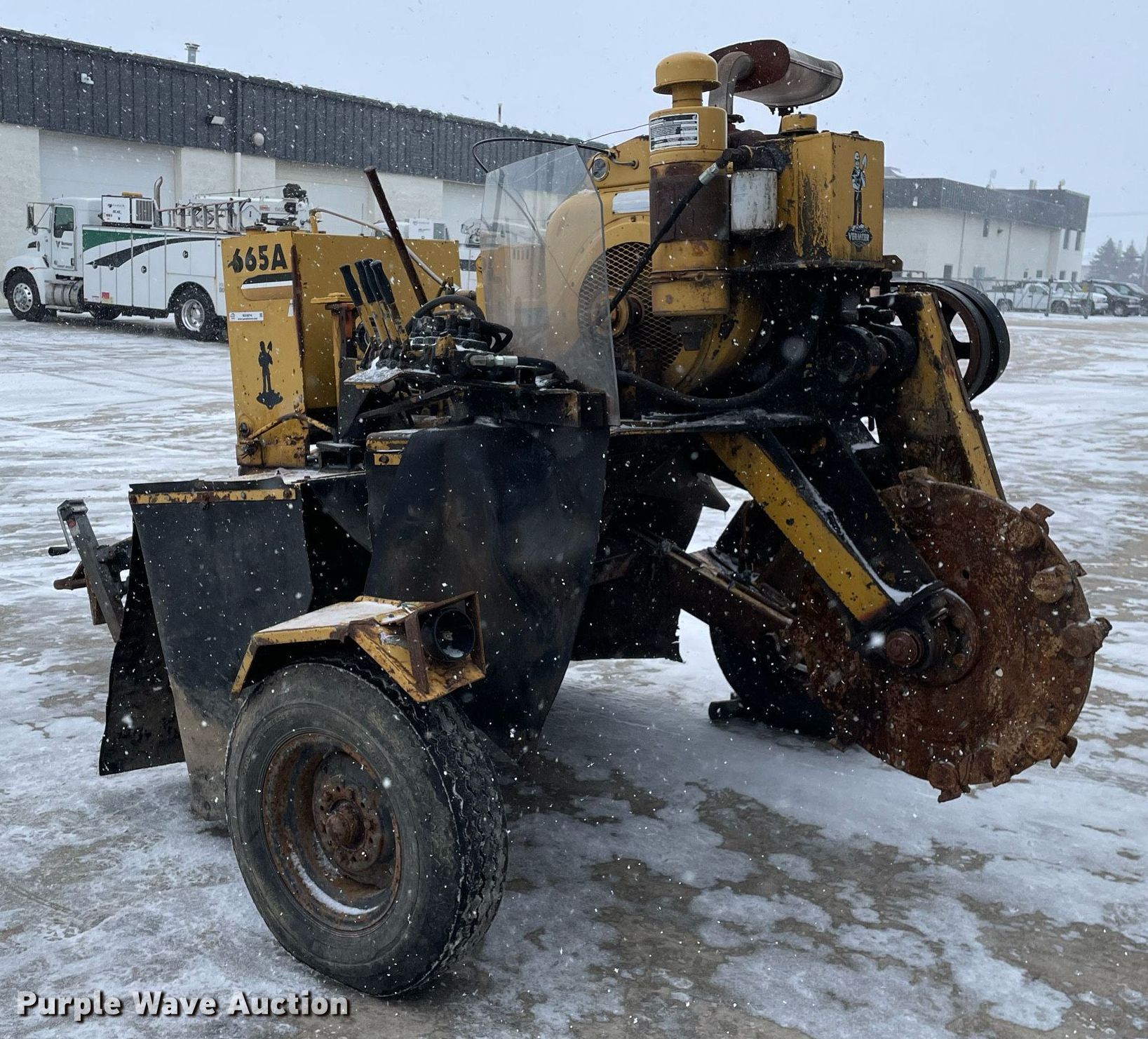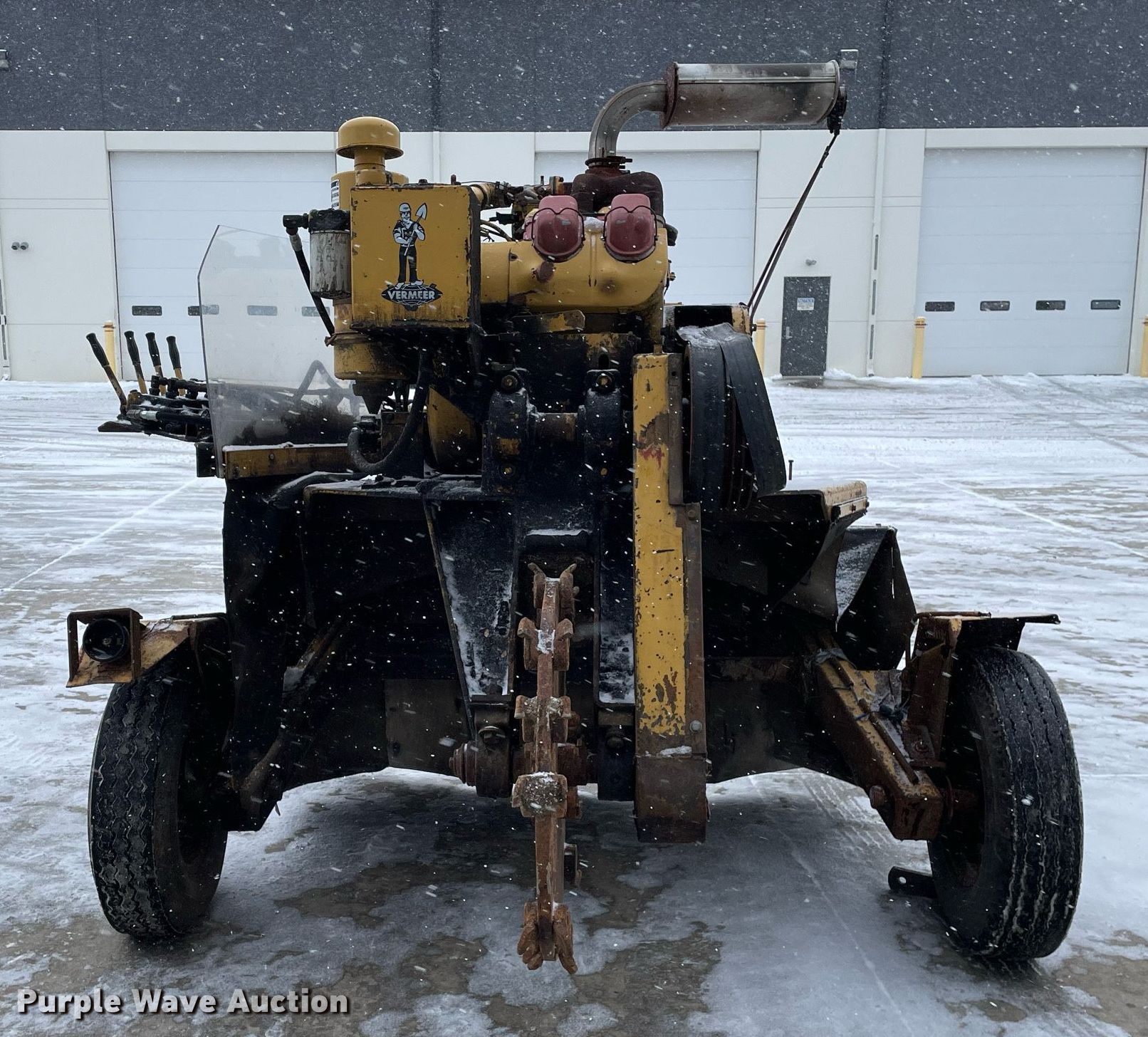 1998 Vermeer 665A stump grinder. Hours: 1,408 on meter, Serial: 1VRC131FXJ1002090. Engine Wisconsin V465D, Cylinders: 4, Fuel type: Gas, HP: 65. Features Cutting head diameter: 30" Bolt-on teeth. Trailer 13.5' L x 92" W, Hitch: Pintle, Axles: Single, Tire size: 7.00-15. Notes Non-operational unit. Vermeer Midwest. 2801 Beverly Drive. Aurora, IL 60502