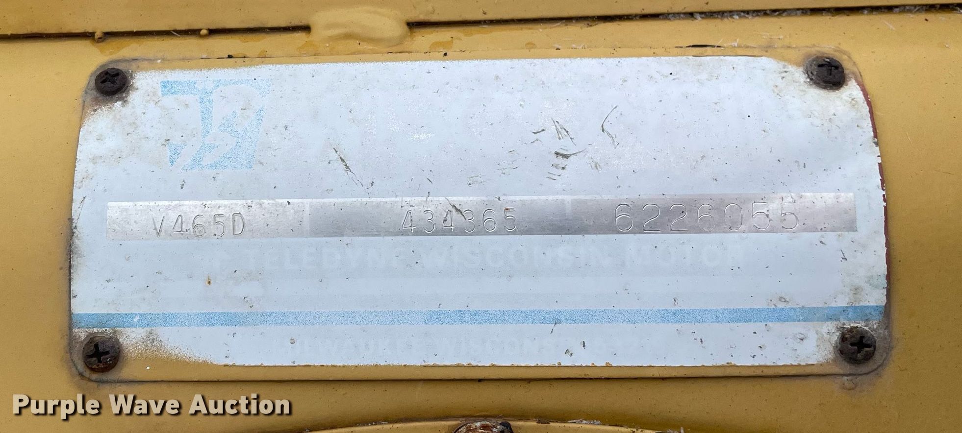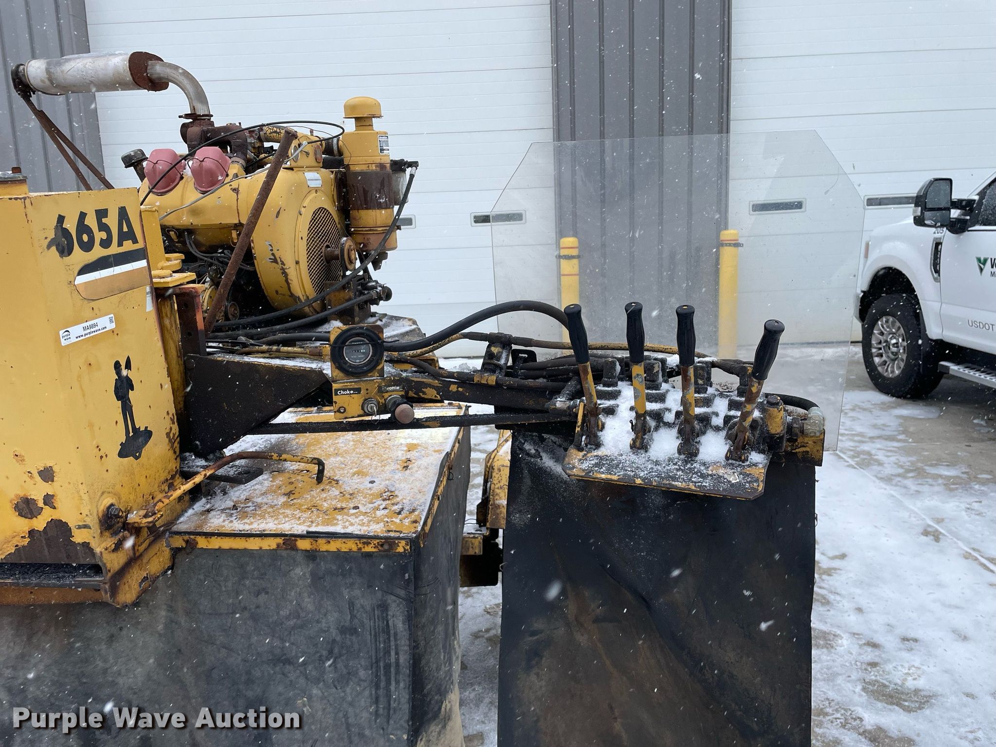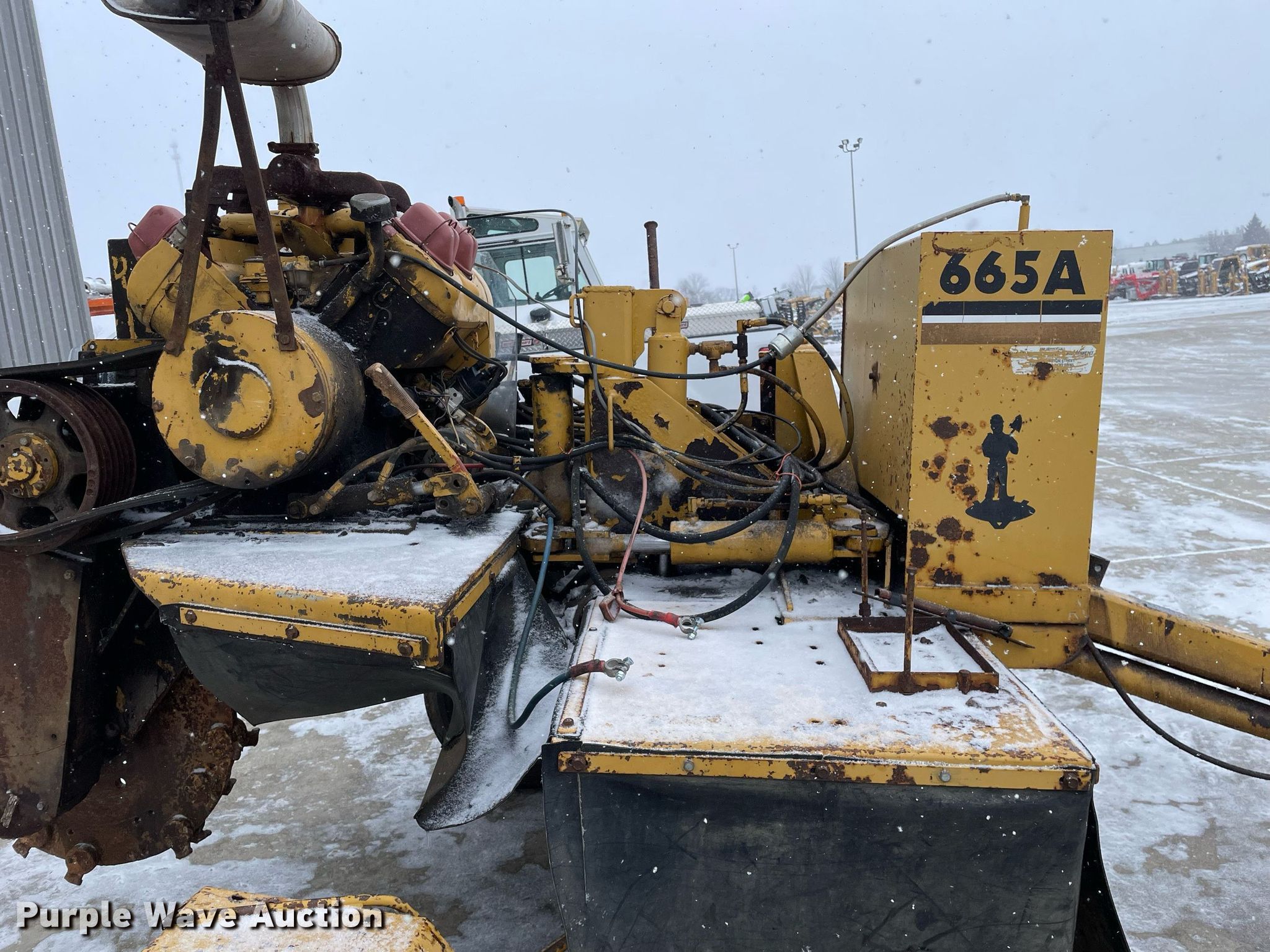 1998 Vermeer 665A stump grinder. Hours: 1,408 on meter, Serial: 1VRC131FXJ1002090. Engine Wisconsin V465D, Cylinders: 4, Fuel type: Gas, HP: 65. Features Cutting head diameter: 30" Bolt-on teeth. Trailer 13.5' L x 92" W, Hitch: Pintle, Axles: Single, Tire size: 7.00-15. Notes Non-operational unit. Vermeer Midwest. 2801 Beverly Drive. Aurora, IL 60502
