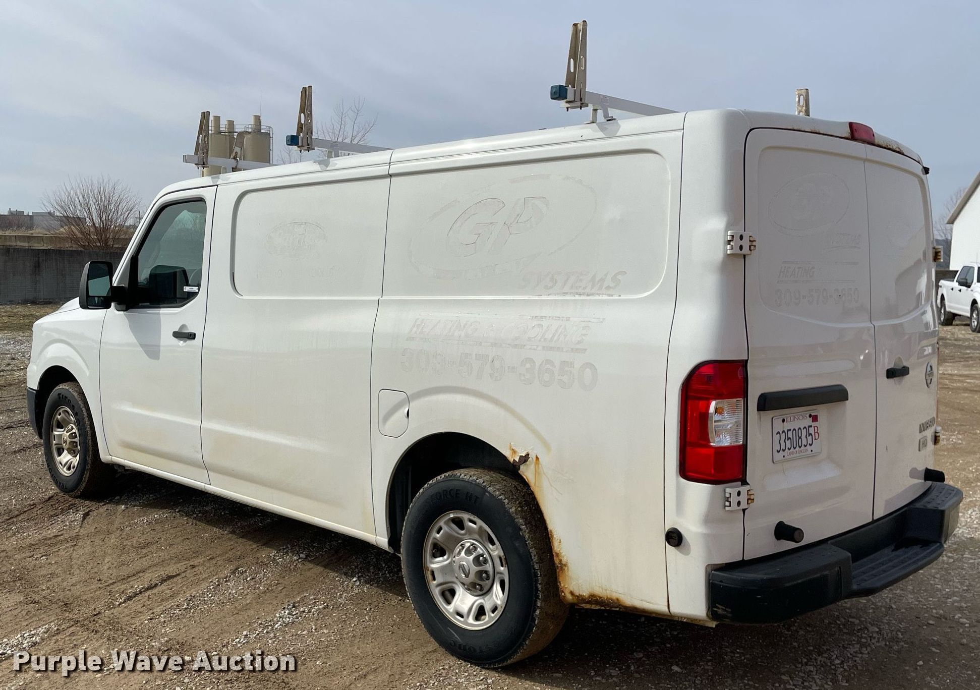 2013 Nissan NV3500HD van. Miles: 246,042 on odometer, VIN: 1N6AF0KX8DN105338. Engine Displacement: 5.6L V8 DOHC, Cylinders: 8, Fuel type: Gas. Transmission Automatic. Interior AC, Heat, Heated mirrors, Power windows, Power locks, Cruise control. Tires Size: 245/75R17. Notes Dash warning indicator: Check engine, Windshield chipped or cracked, Dead battery, Battery will be replaced prior to auction. Illinois title. Title distribution may be delayed up to 14 days from verification of funds. The Waldinger Corporation/GP Systems. 2020 E. Wilkins Drive. Chillicothe, IL 61523