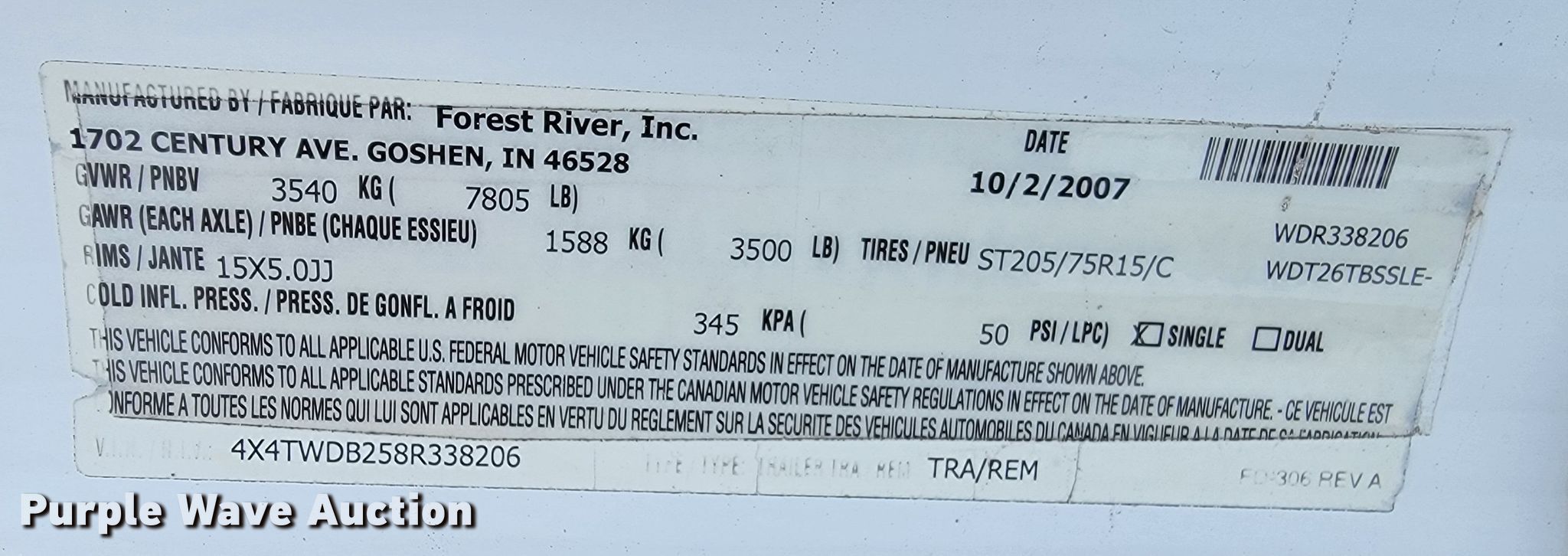 Purple Wave is selling a used RV or Camper in Nebraska. This item is a 2008 Forrest River Wildwood LE camper with the following: Camper length: 28' 9", VIN: 4X4TWDB258R338206