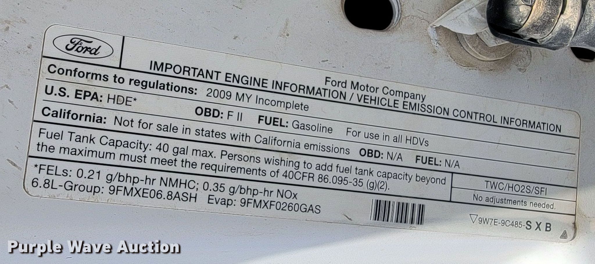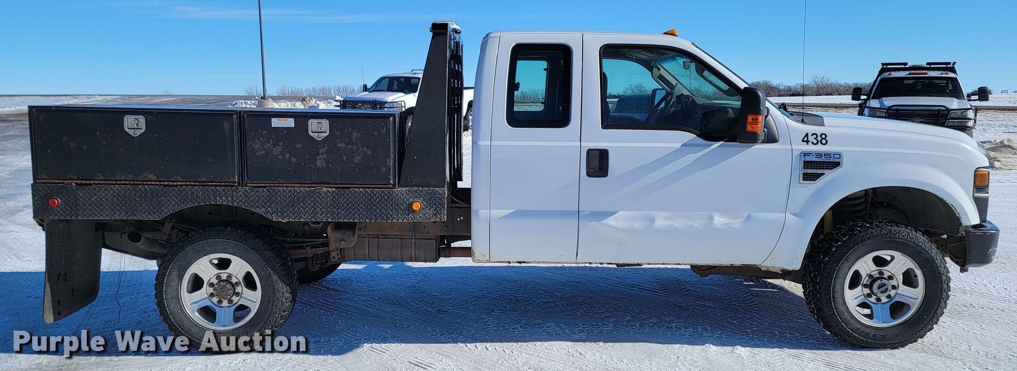2009 Ford F350 Super Duty XL SuperCab pickup truck. Miles: 187,013 on odometer, VIN: 1FDWX35Y89EA01009. Engine Displacement: 6.8L V10 SOHC, Cylinders: 10, Fuel type: Gas. Transmission Automatic, Four wheel drive. Interior AC, Heat, Power windows, Power locks, Cruise control. Features Flatbed 8' L x 84" W, Hitch: Gooseneck. Tires Size: LT275/70R18. Notes Dash warning indicator: Check engine, TPMS, Air bag. South Dakota title. Title distribution may be delayed up to 14 days from verification of funds. Efraimson Electric Inc. 19295 438th Avenue. Bryant, SD 57221
