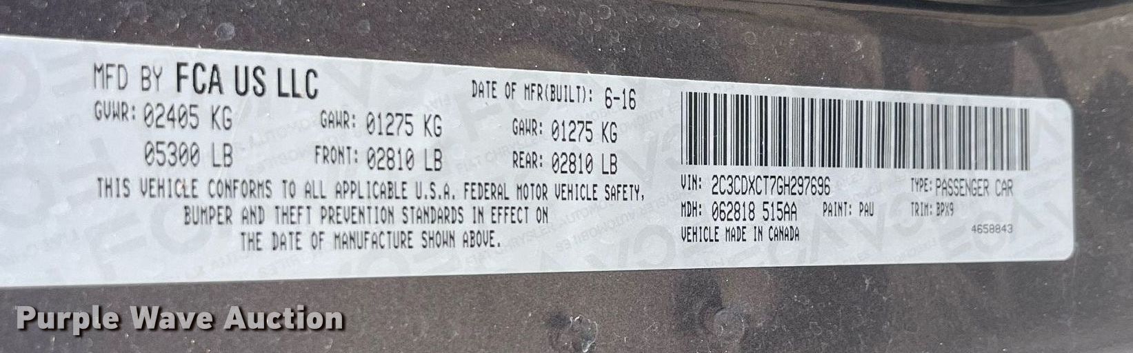 Purple Wave is selling a used Passenger Vehicle in Kansas. This item is a 2016 Dodge Charger with the following: Miles: 72,156 on odometer, VIN: 2C3CDXCT7GH297696
