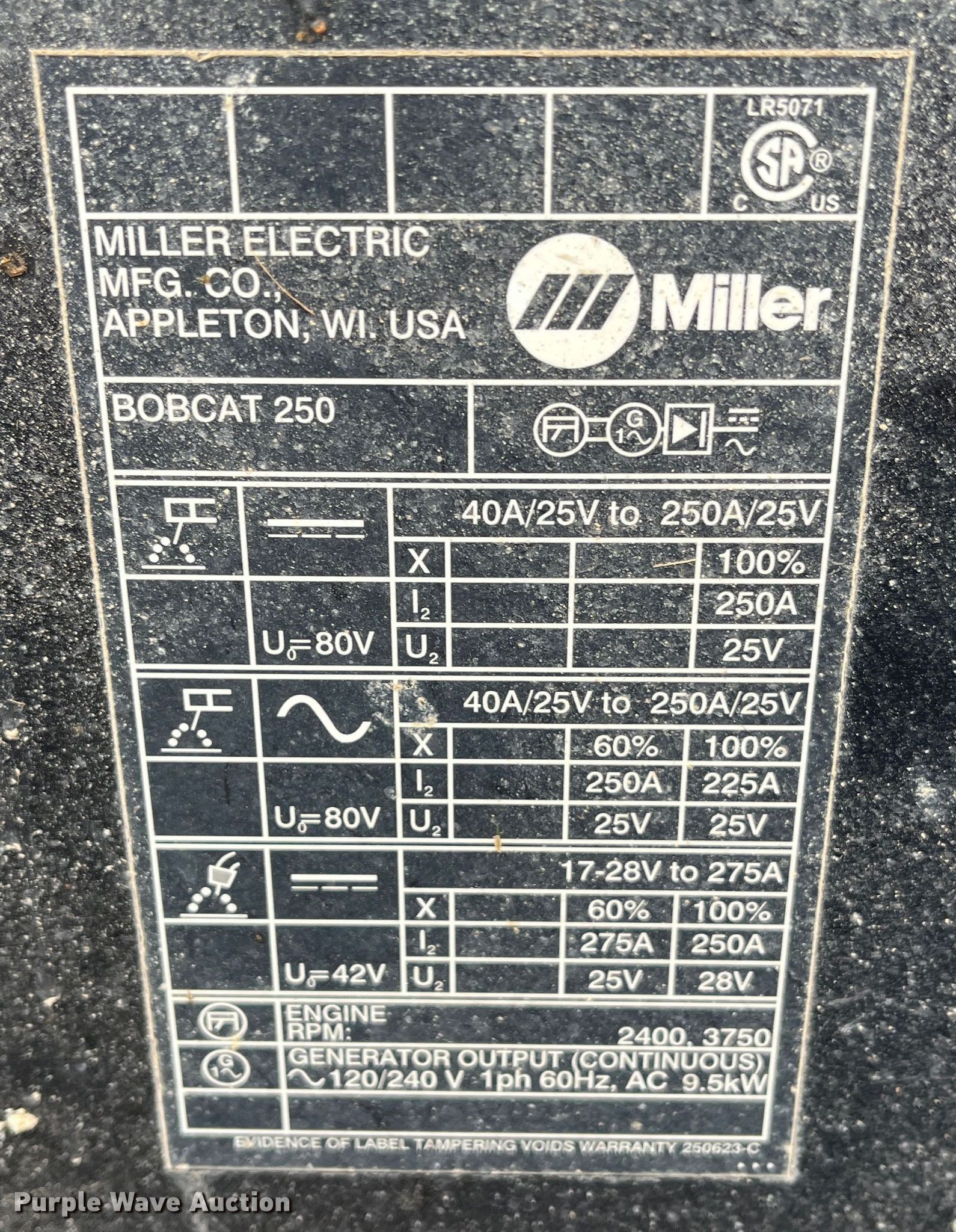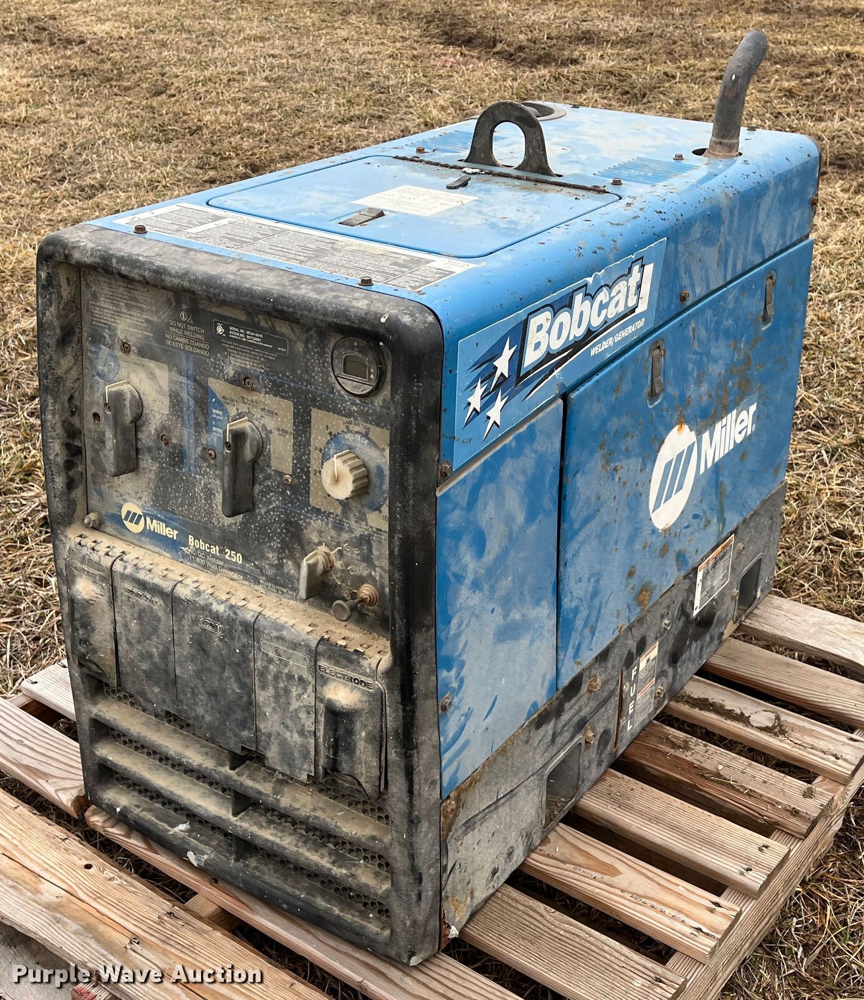Purple Wave is selling a used Welder (Manual) in Kansas. This item is a Miller Bobcat 250 welder with the following: Hours: 99 on meter