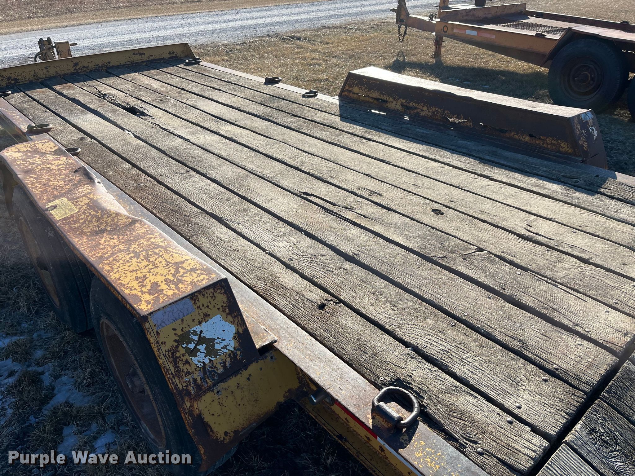 1998 Redi Haul FSL1629E equipment trailer. VIN: 47SS162T0W1013675. Dimensions Overall: 26' L x 102" W, Deck: 16' L x 6' 6" W, Tail length: 3', Ramps: Manual Length: 5'. Features Deck type: Wood. Chassis Hitch: Pintle, Landing gear: Single, Two speed, Suspension: Spring, Brakes: Electric, Axles: Tandem, GVWR: 20,700 lbs, GAWR: 9,000 lbs. Tires Steel wheels, Size: 215/75R17.5. Missouri title. Title distribution may be delayed up to 14 days from verification of funds. Lawson Construction. 29032 Hwy 11. Kirksville, MO 63501
