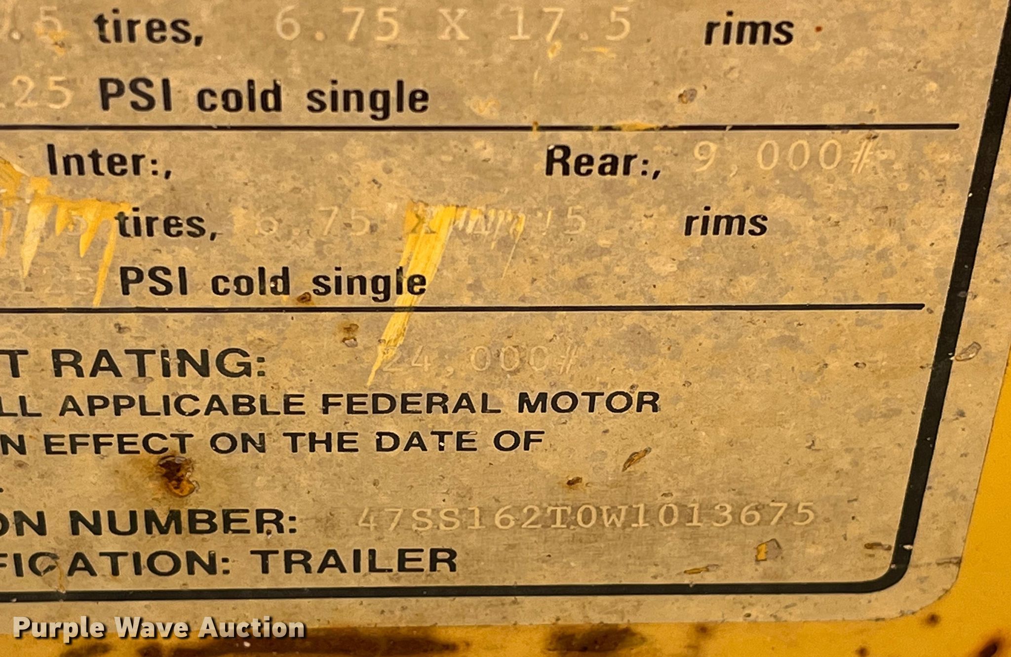 Purple Wave is selling a used Equip. Trailer in Missouri. This item is a 1998 Redi Haul FSL1629E equipment trailer with the following: VIN: 47SS162T0W1013675