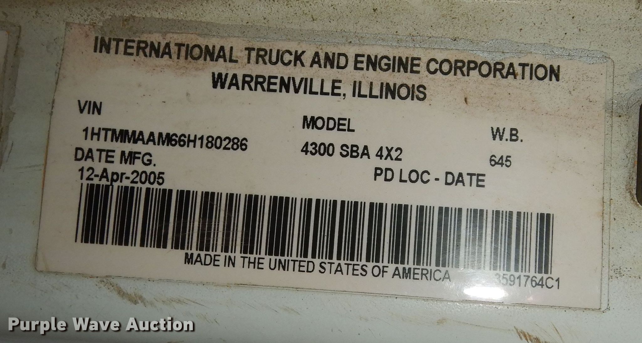 Purple Wave is selling a used Construction Dump Truck in Kansas. This item is a 2006 International 4300 dump truck with the following: Miles: 238,509 on odometer, Hours: 8,906 on meter, VIN: 1HTMMAAM66H180286