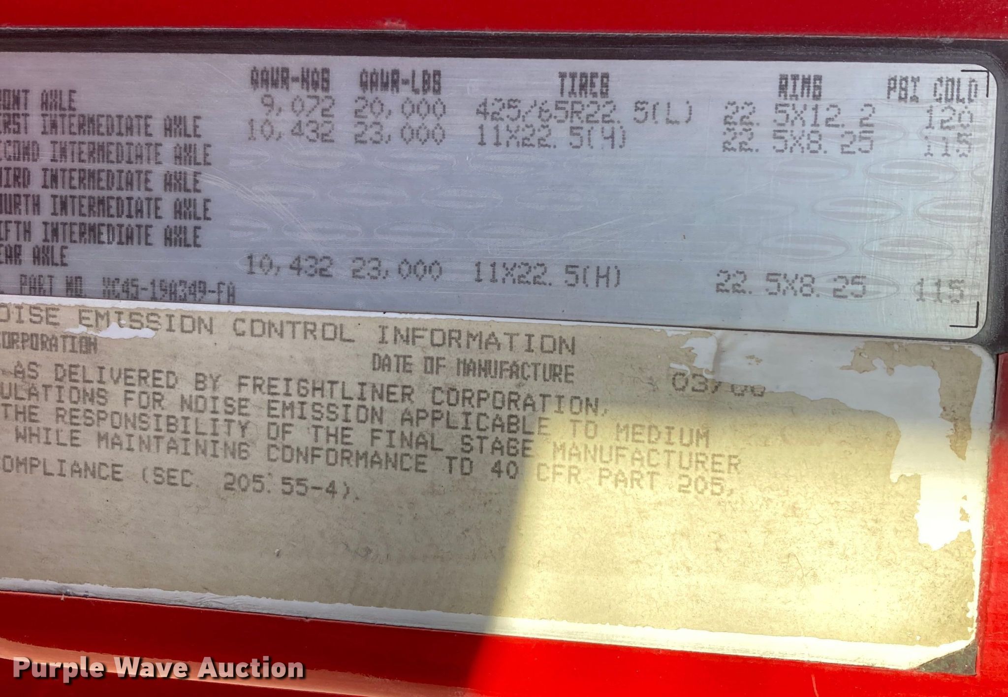 - Front: 425/65R22.5