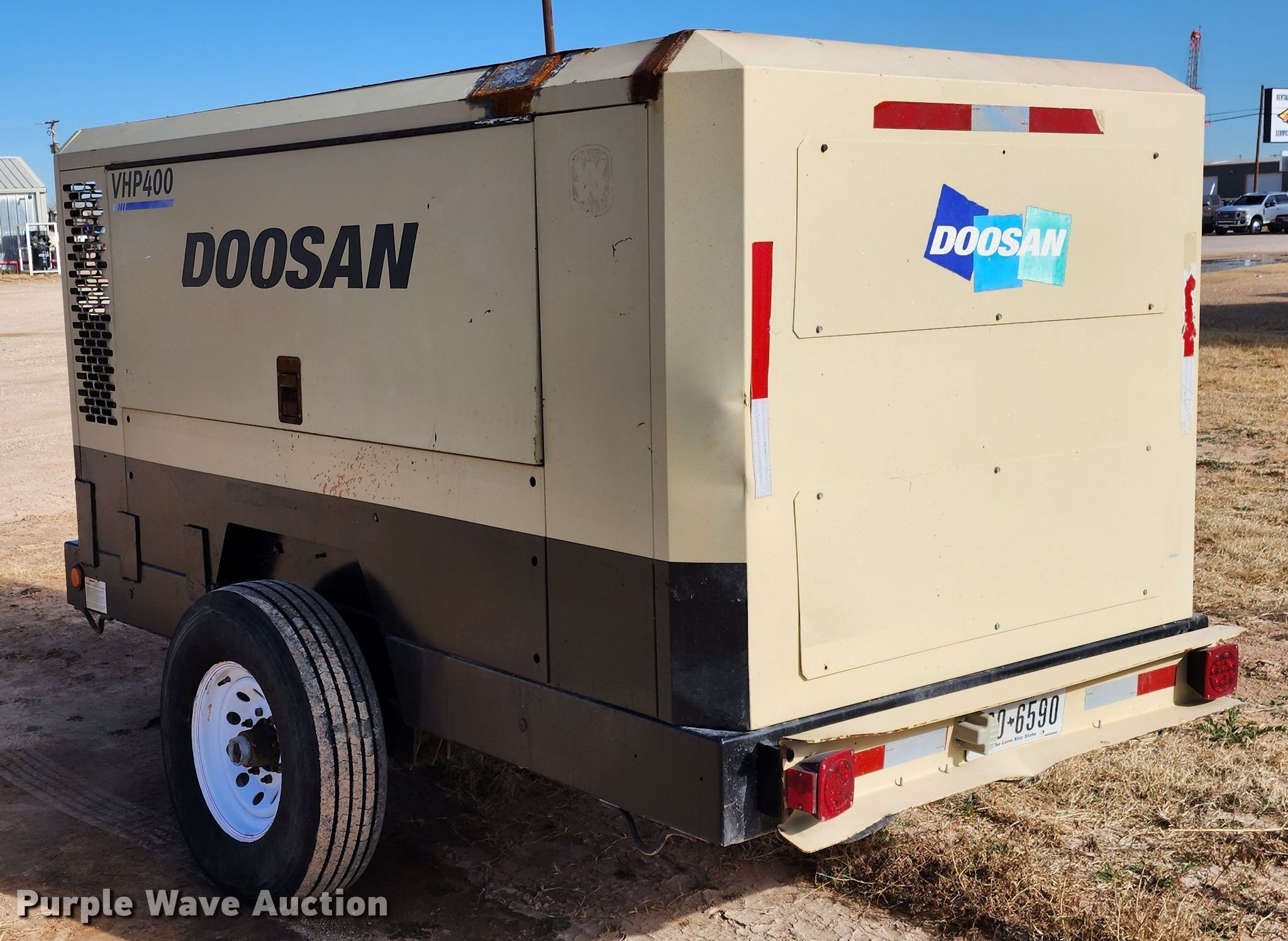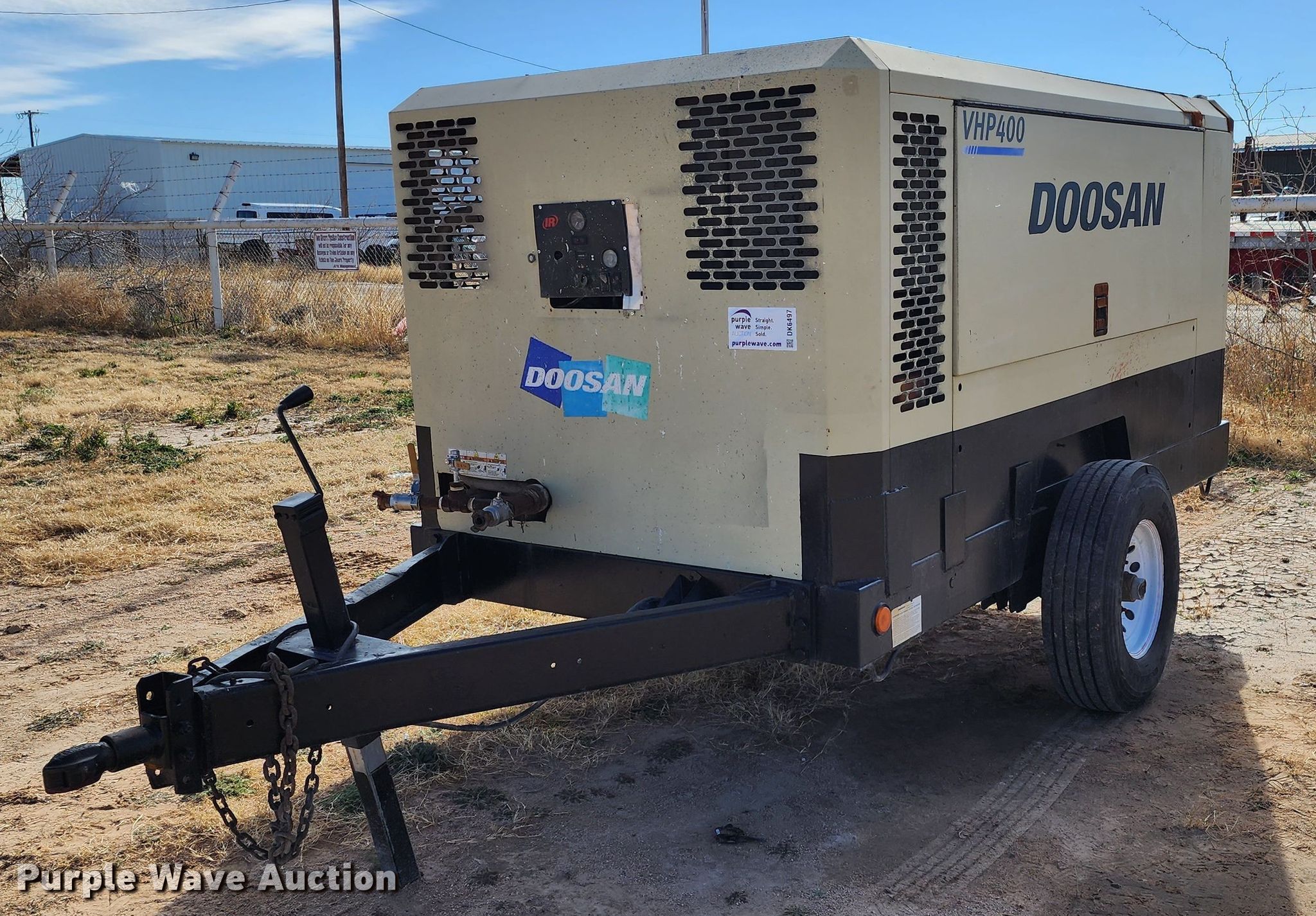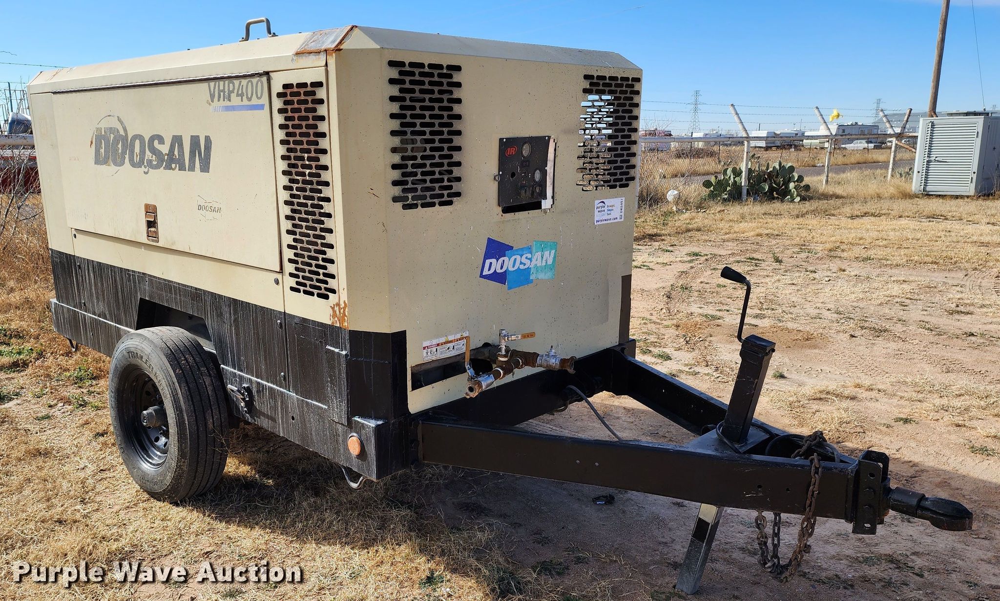 Purple Wave is selling a used Air Compressor in Texas. This item is a 2011 Doosan VHP400WJD-13 air compressor with the following: Hours: 5,858 on meter, Serial: 428295UGVC56