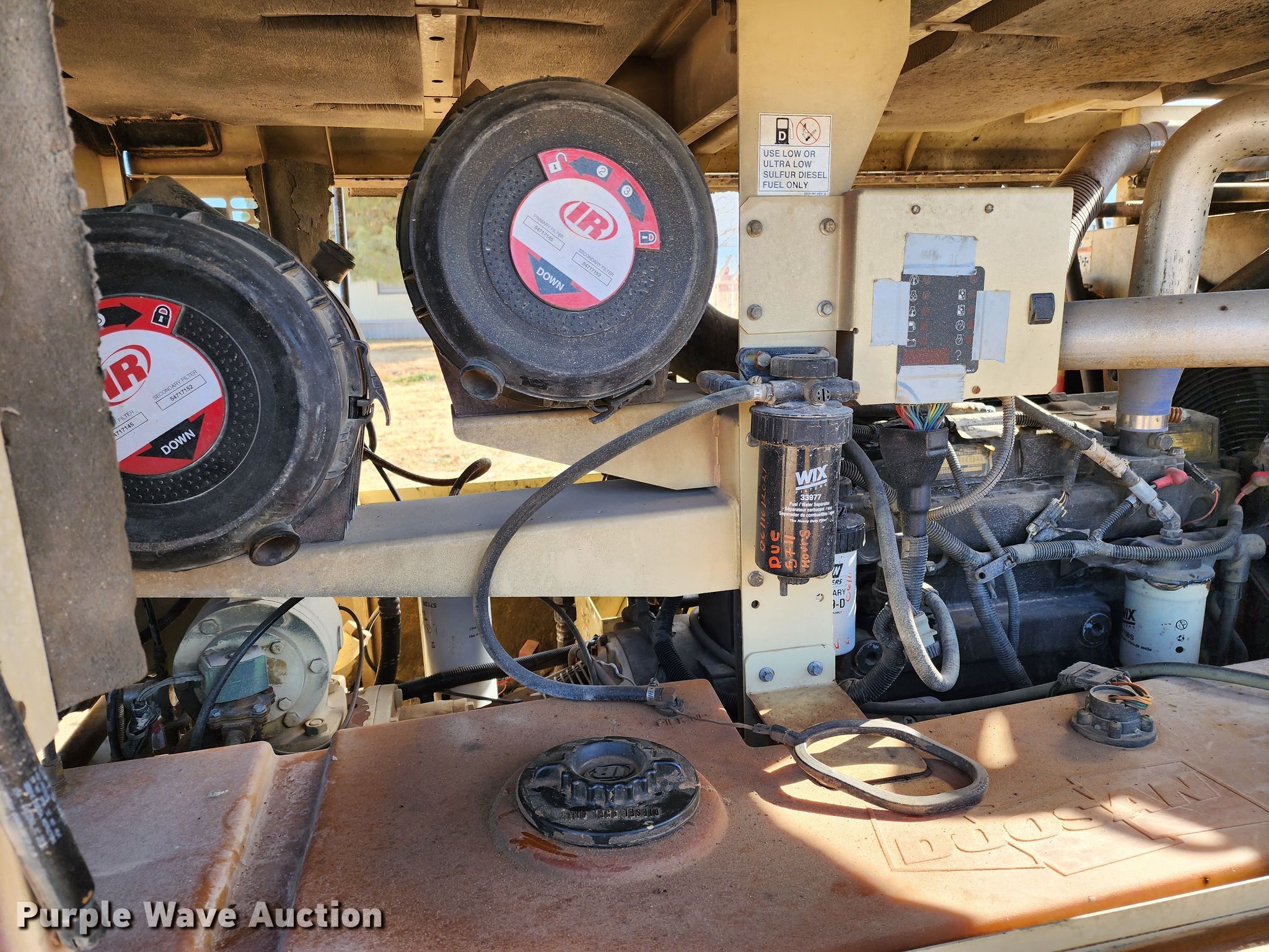 2011 Doosan VHP400WJD-13 air compressor. Hours: 5,858 on meter, Serial: 428295UGVC56. Engine John Deere 6068HF285, Displacement: 6.8L, Cylinders: 6, Fuel type: Diesel. Features Air compressor Ingersoll-Rand, PSI: 200. Trailer 15' L x 72" W, Ball hitch size: 2 5/16", Suspension: Spring, Brakes: Electric, Axles: Single, Tire size: 235/85R16. This is worksite support equipment and will not come with a title. Transfer of ownership documentation will be a bill of sale. Two Rivers Pipeline. 3276 W Crescent Dr. Odessa, TX 79761