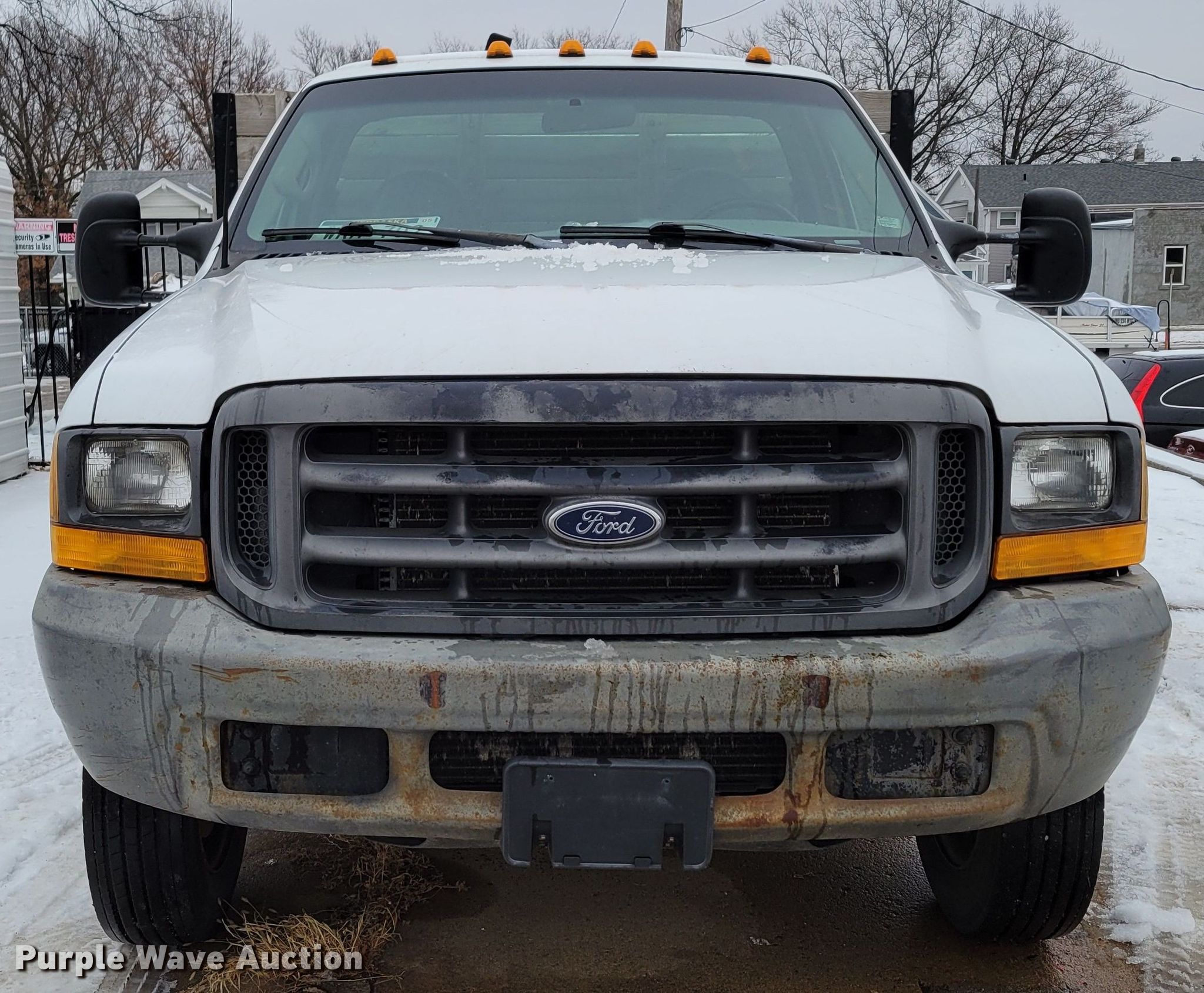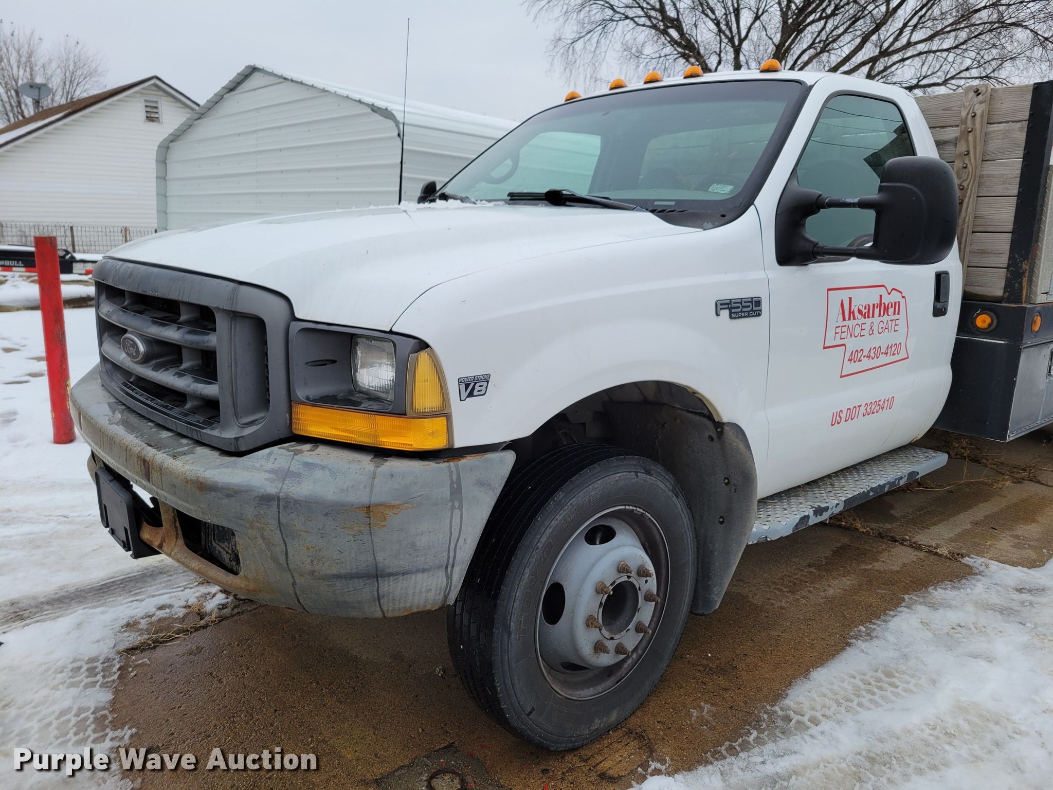 This 1999 Ford F550 Super Duty flatbed truck will sell to the highest bidder regardless of price.