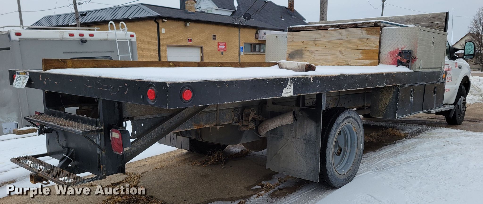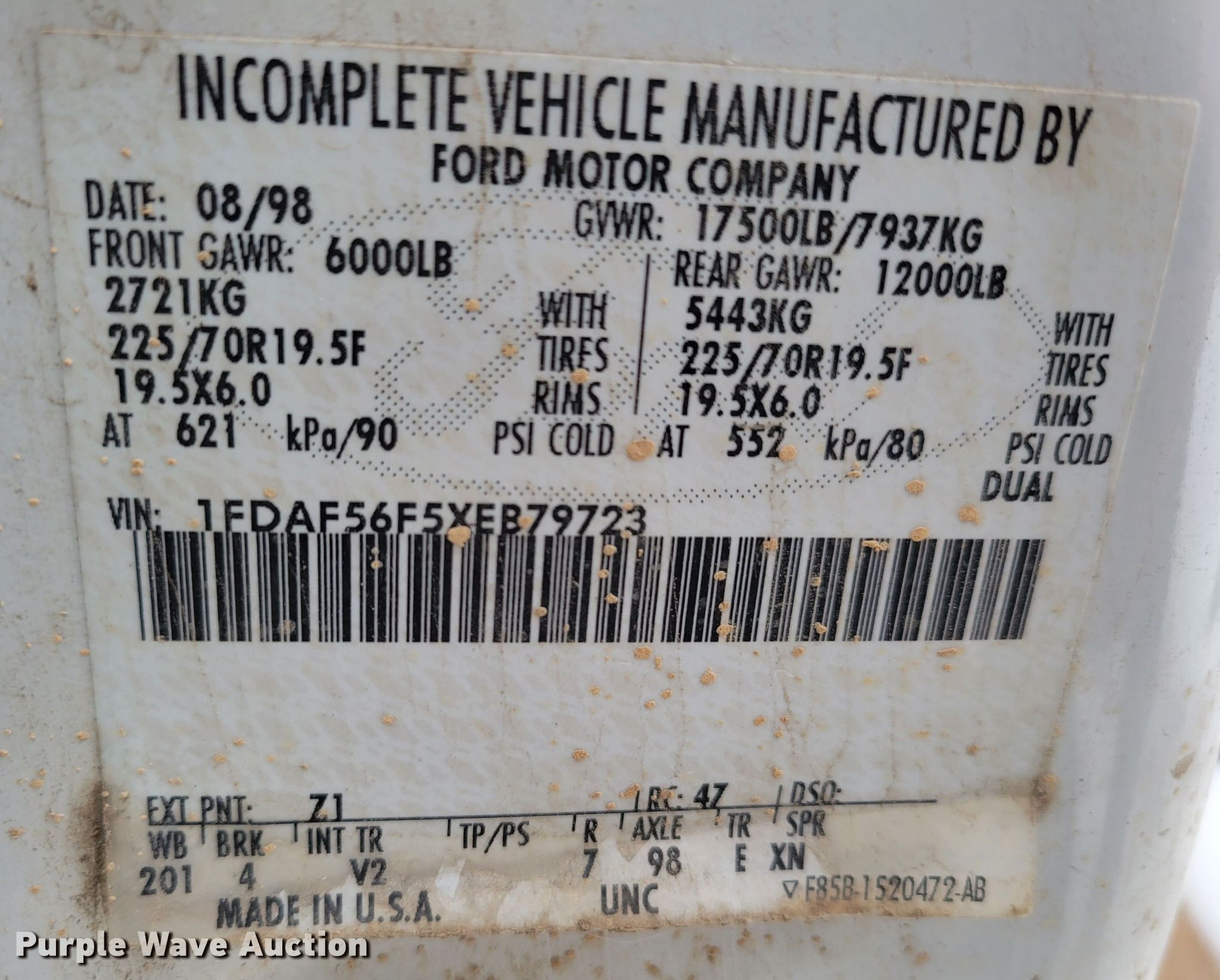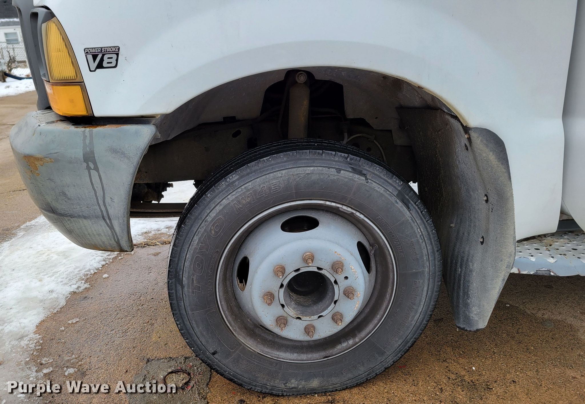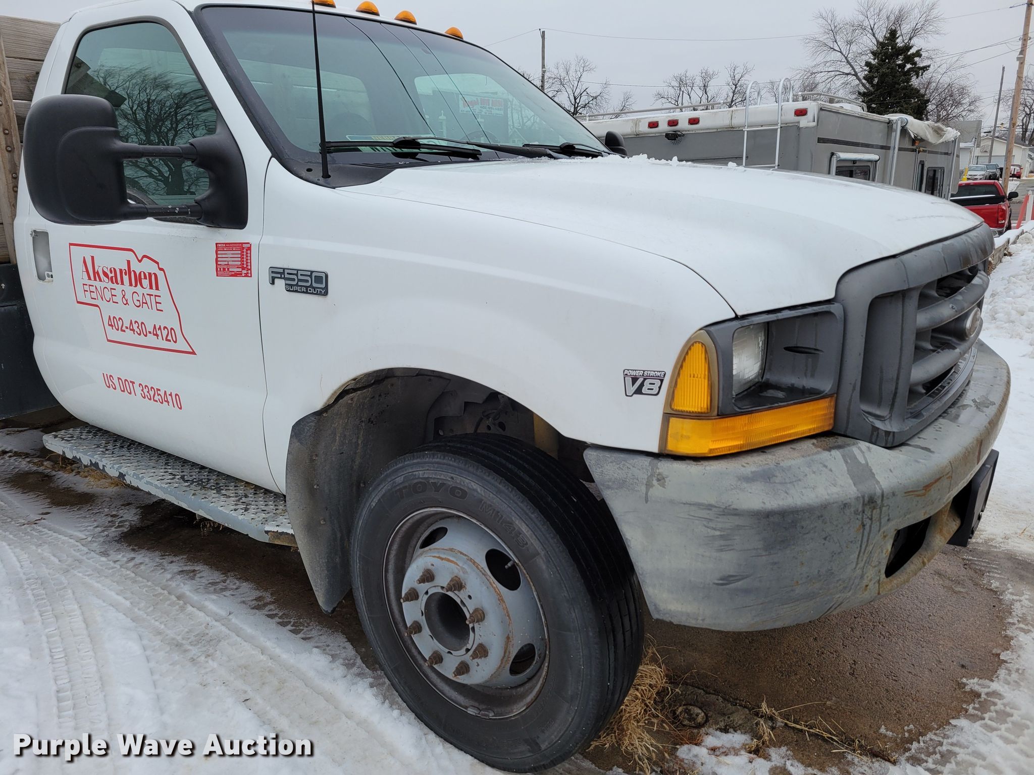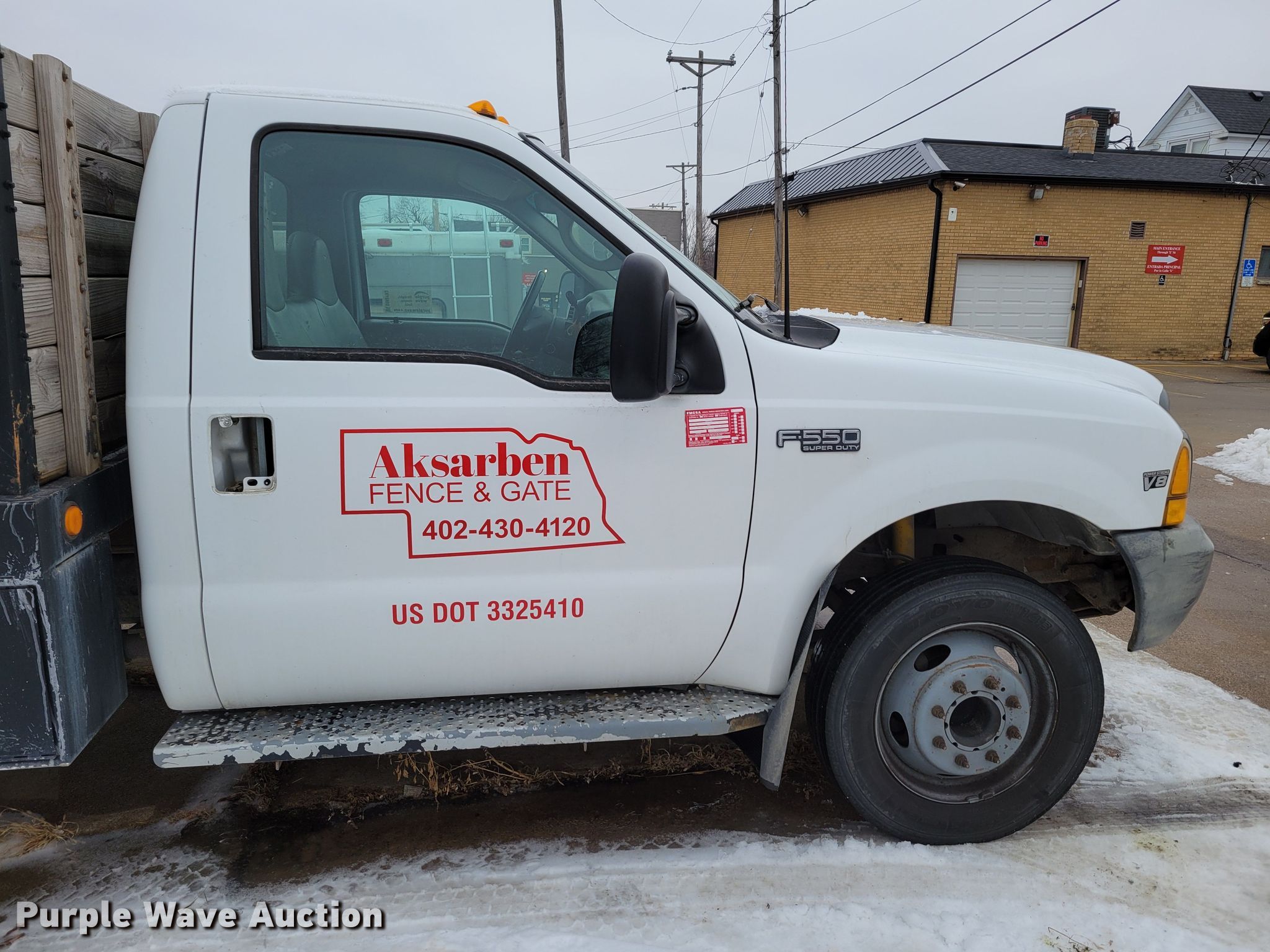 1999 Ford F550 Super Duty flatbed truck. Miles: 157,931 on odometer, VIN: 1FDAF56F5XEB79723. Engine Displacement: 7.3L, Cylinders: 8, Fuel type: Diesel. Transmission Automatic. Interior AC, Heat. Features Flatbed 17' L x 96" W. Tires Size: 225/70R19.5. Nebraska title. Title distribution may be delayed up to 14 days from verification of funds. Aksarben Fence and Gate. 4542 South 40th Street. Omaha, NE 68107