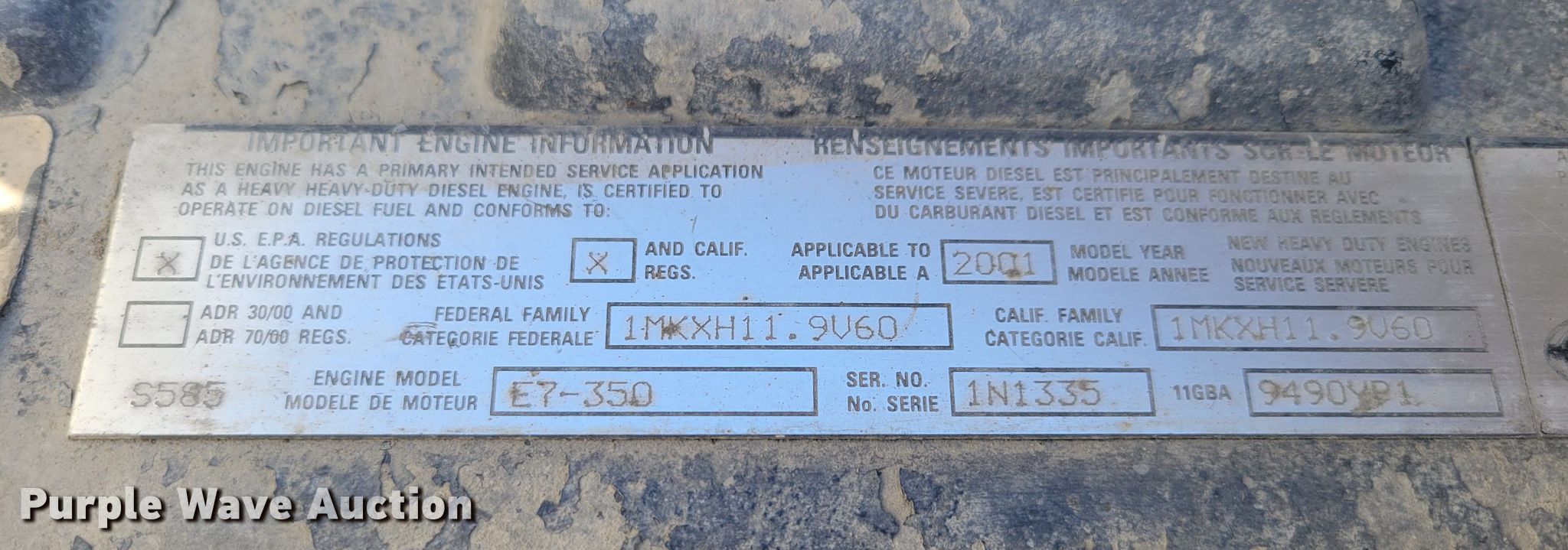 2002 Mack CV713 Granite dump truck. Miles: 410,091 on odometer, Hours: 20,116 on meter, VIN: 1M2AG11C32M001438. Engine Mack E7-350, Serial: 1N1335, Displacement: 12.0L, Cylinders: 6, Fuel type: Diesel, HP: 350, Engine brake. Transmission Eaton Fuller 8LL, Manual, Speed: 10. Chassis Axles: Triple, Pusher axle, Differential lock: Inter-axle, Suspension: Camelback, Brakes: Air, PTO, Wheelbase: 216". Interior AC, Heat. Features Dump bed 15' 6" L x 96" W, Side height: 46", Side board height: 11", Bed type: Steel, Roll tarp, Ram: Single , End gate: Air operated. Tires Front: 425/65R22.5, Rear: 11R24.5, Lift axle: 295/75R22.5. Notes Windshield chipped or cracked. Nebraska title. Title distribution may be delayed up to 14 days from verification of funds. AM Contracting. 13305 Portal Dr. Omaha, NE 68138