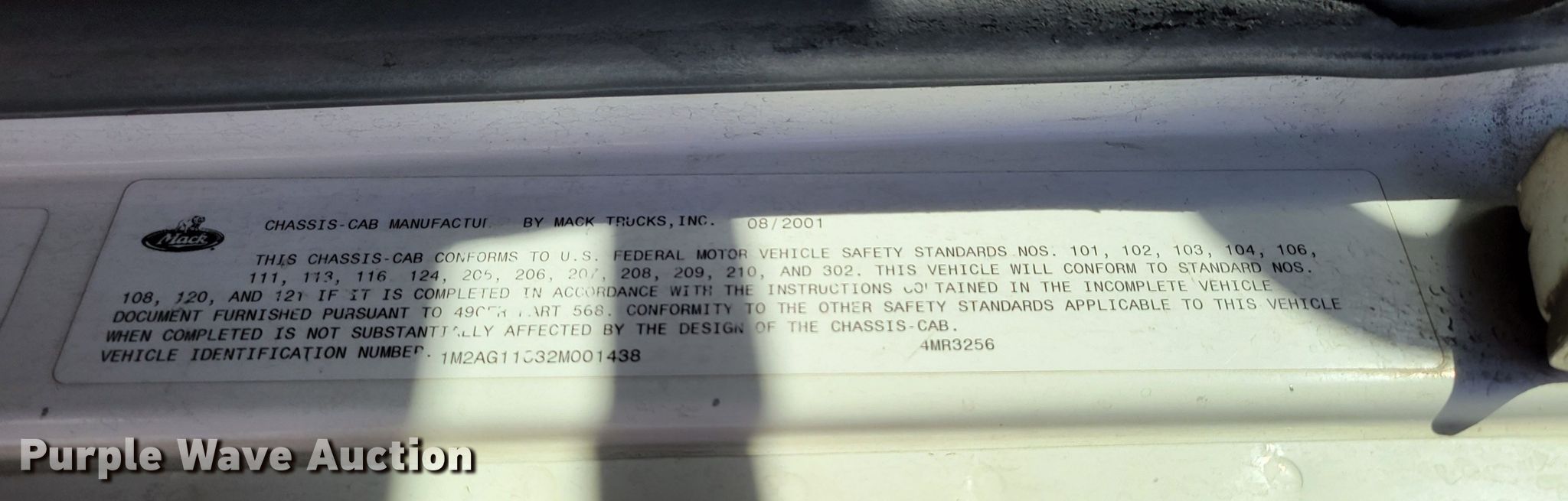 Purple Wave is selling a used Construction Dump Truck in Nebraska. This item is a 2002 Mack CV713 Granite dump truck with the following: Miles: 410,091 on odometer, Hours: 20,116 on meter, VIN: 1M2AG11C32M001438