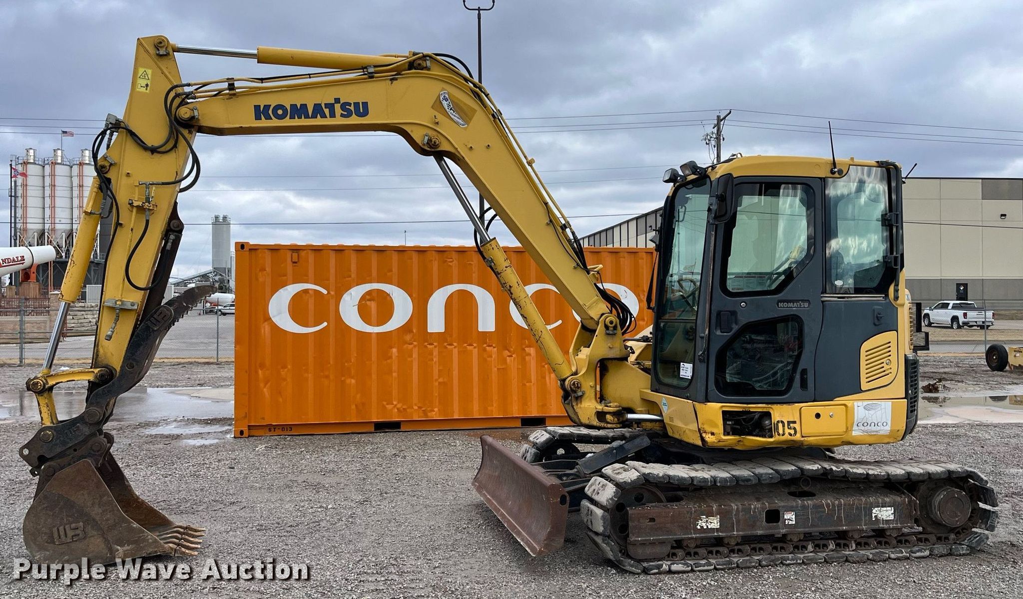 2008 Komatsu PC88MR-8 mini excavator. Hours: 5,289 on meter, Serial: KMTPC205P01005168. Engine Komatsu SAA4D95LE-5-C, Serial: 504101, Displacement: 3.26L, Cylinders: 4, Fuel type: Diesel, HP: 68. Transmission Hydrostatic. Operators station Enclosed cab, AC, Heat. Features Auxiliary hydraulics, Backfill blade Width: 92", Boom Swing, Stick Stick length: 7', Quick coupler: Hydraulic, Thumb: Hydraulic, Bucket Width: 24", Cutting edge: Weld-on, Teeth: 5, Bucket Width: 36", Bucket Width: 30", Bucket Width: 18", Bucket Width: 12". Tracks Width: 18", Rubber. Conco Construction. 3051 N Ohio St. Wichita, KS 67219