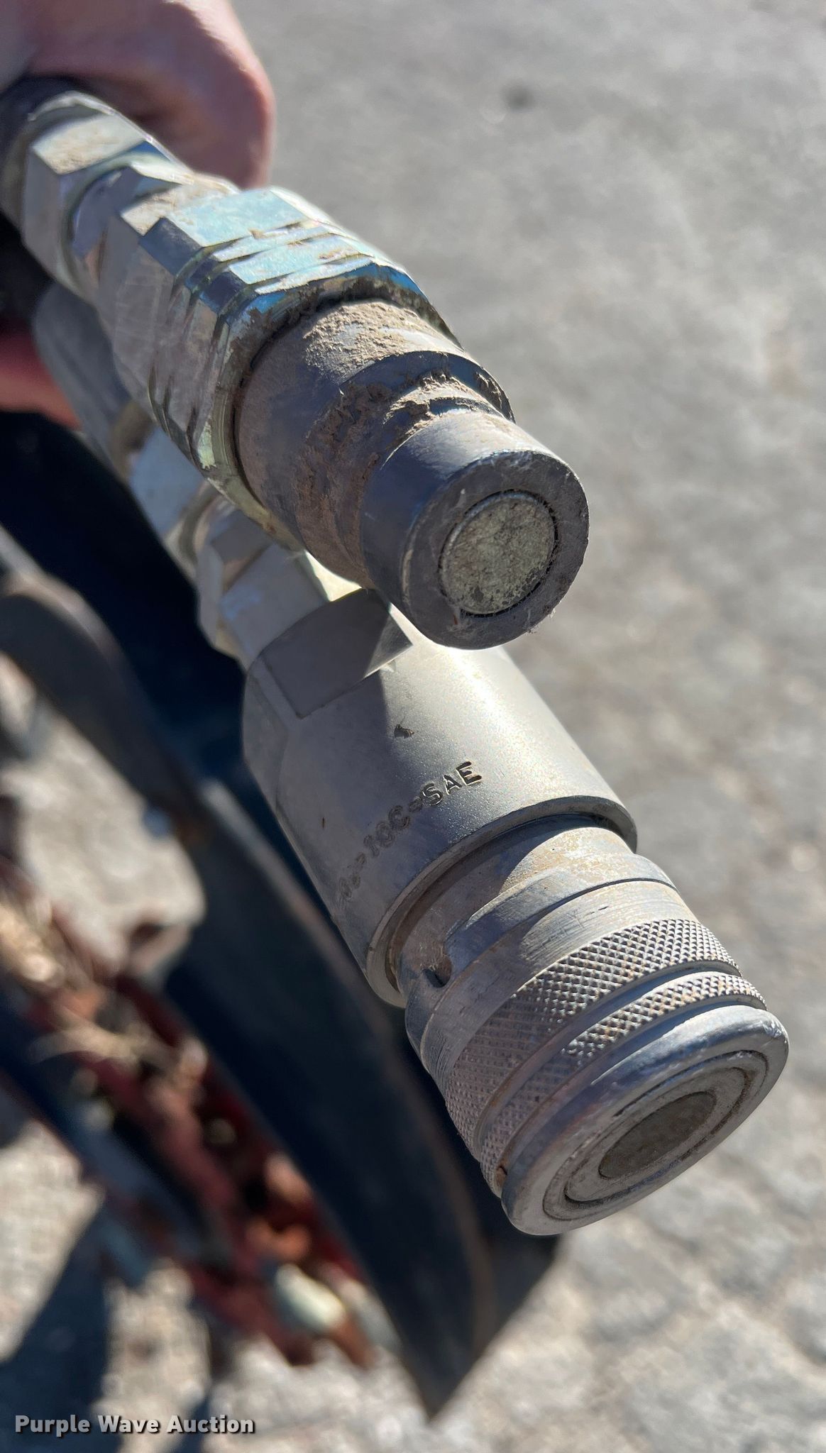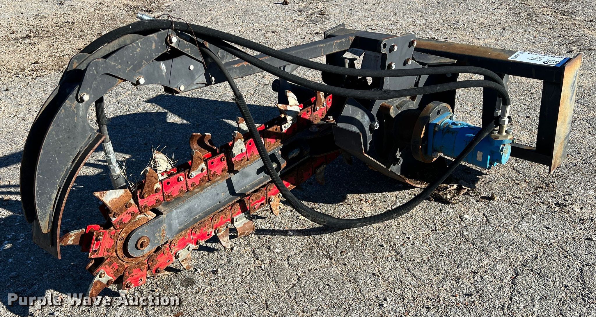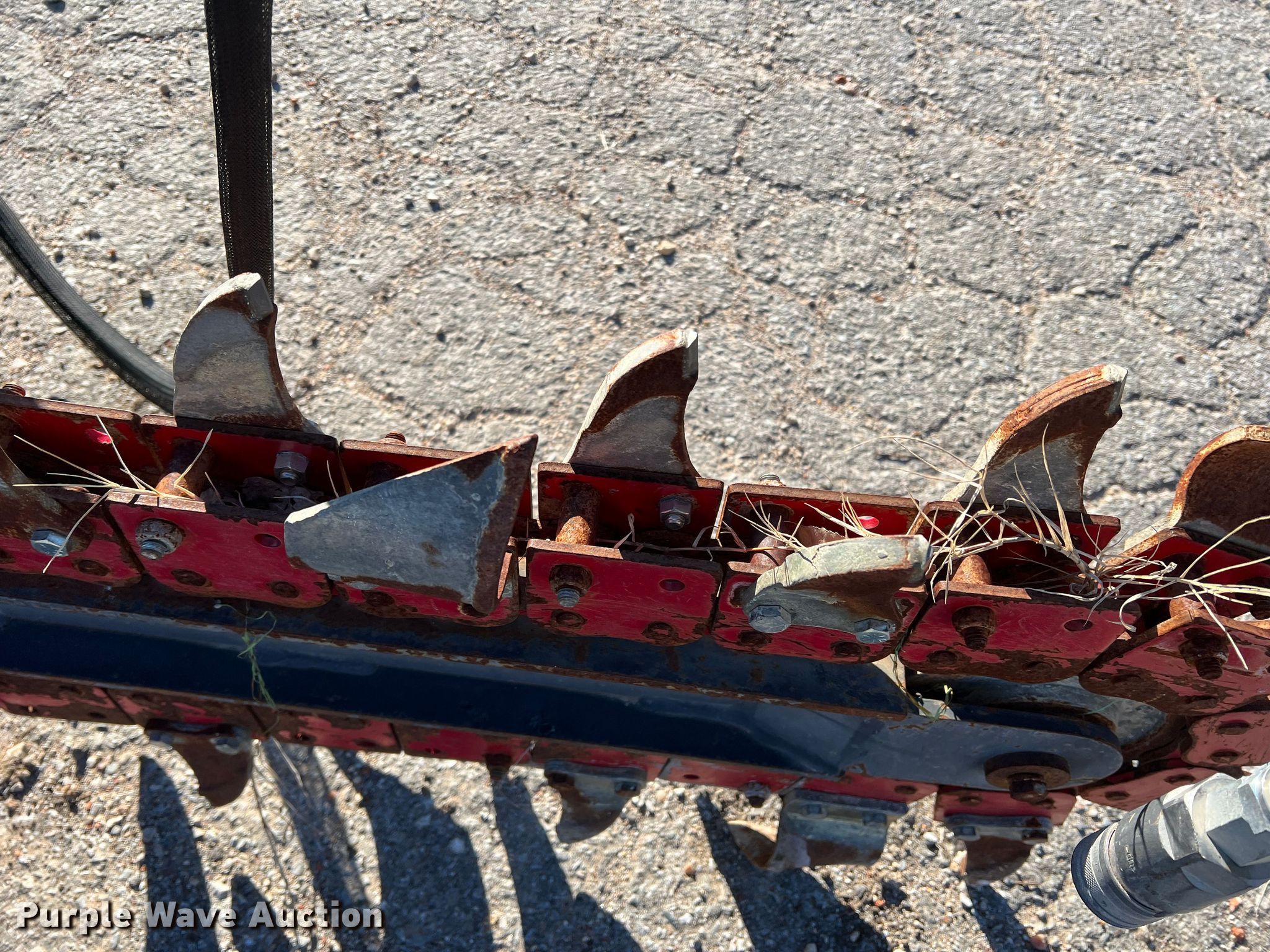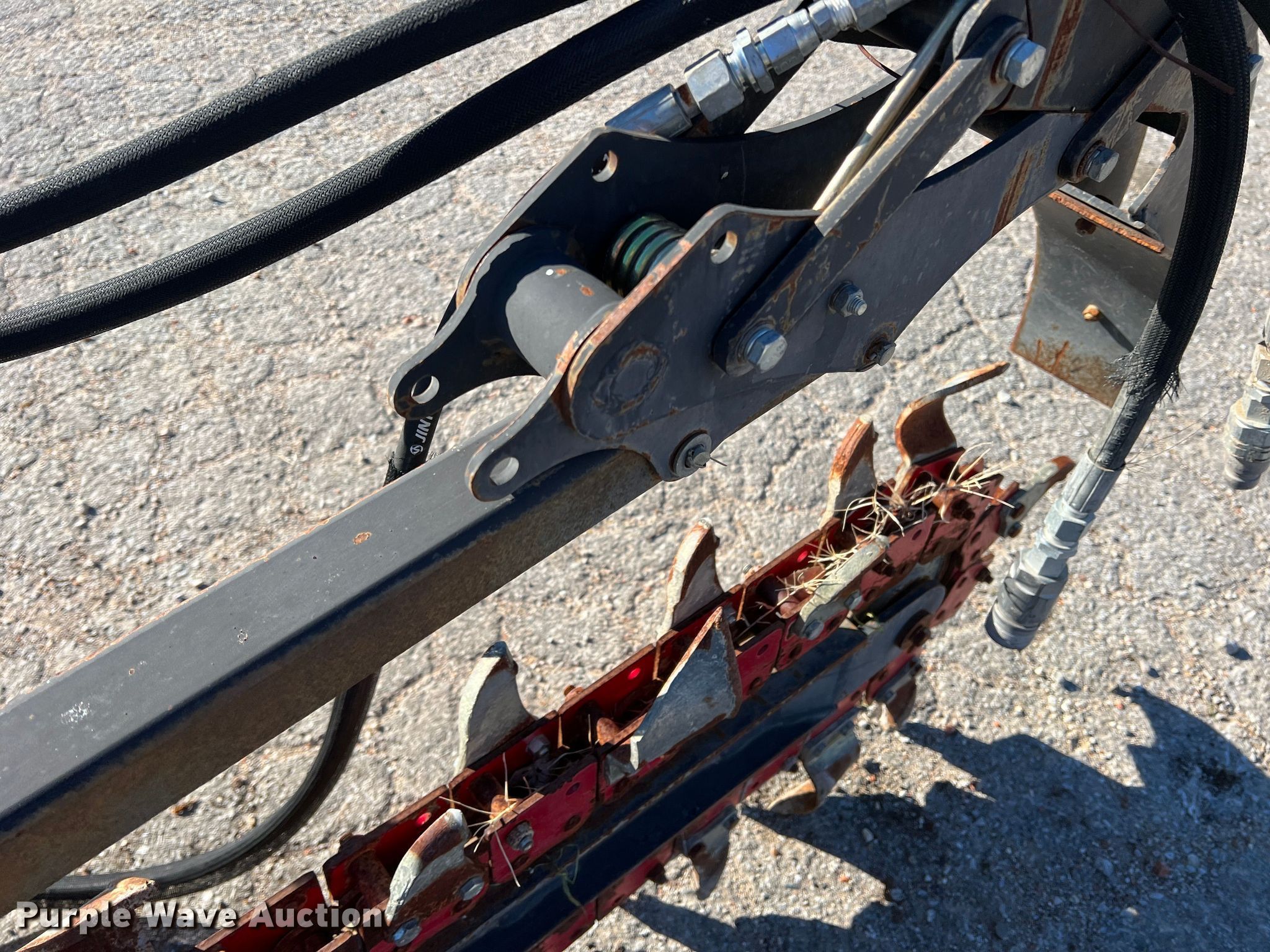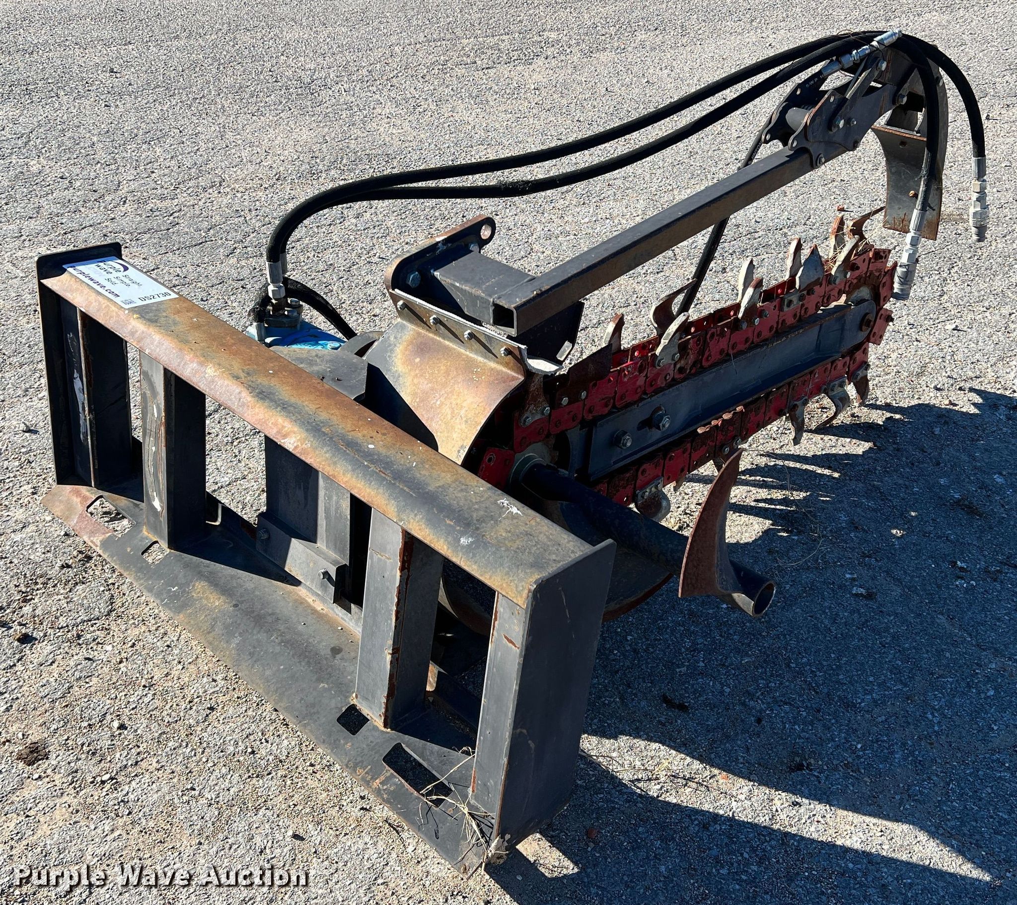 Purple Wave is selling a used Skid Steer Attach. in Texas. This item is a Skid steer trencher with the following: Cutting width: 4", Estimated dig depth: 51", Teeth: Rock, Dirt