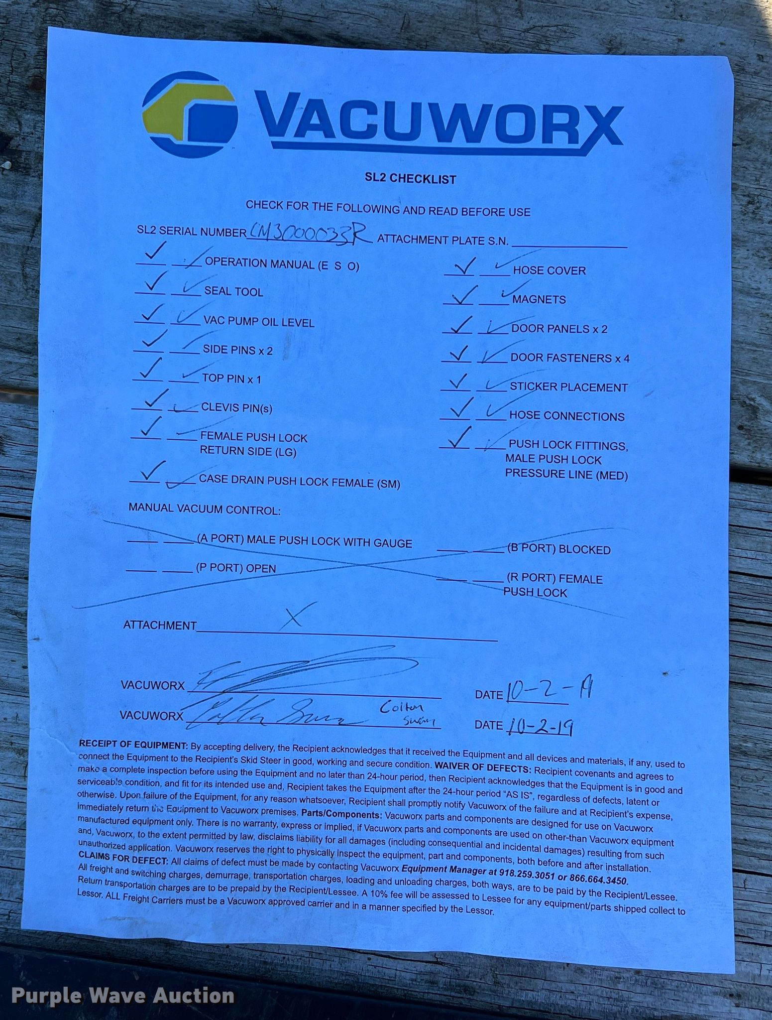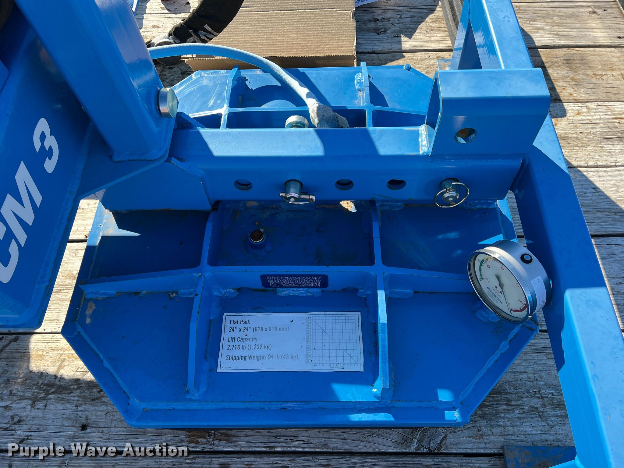 Purple Wave is selling a used Other Attach. or Equip. in Texas. This item is a Vacuworx CM 3 slab vacuum with the following: Serial: CM3000033R