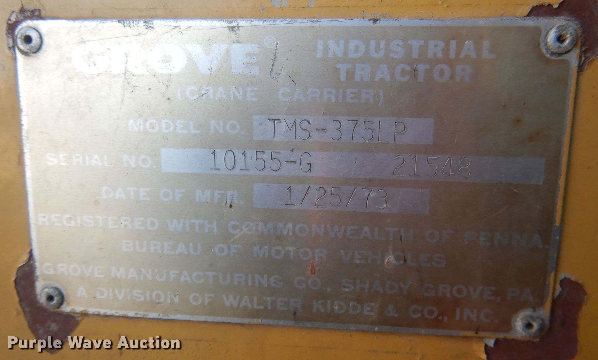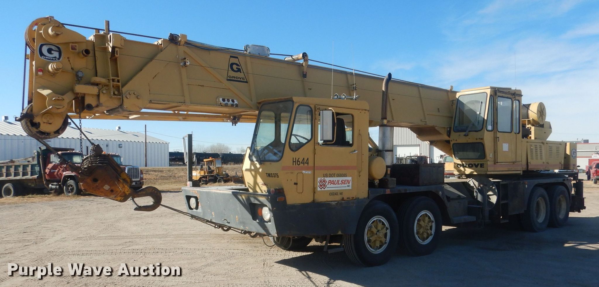 Purple Wave is selling a used Truck Crane in Nebraska. This item is a 1973 Grove TM375 crane with the following: Miles: 109,585 on odometer, Serial: 10155 G 21548