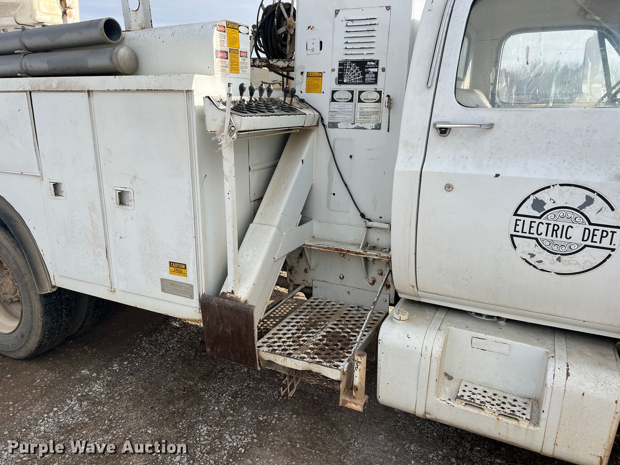 1978 Chevrolet C65 digger derrick truck. Miles: 75,756 on odometer, VIN: CCE668V171872. Engine Cylinders: 8, Fuel type: Gas. Transmission Manual, Speed: 5, plus 2. Chassis Axles: Single, Suspension: Spring, Brakes: Hydraulic, GVWR: 30,200 lbs. Interior Heat. Features Bed 10' 6" L x 7' 10" W, Boom Altec D-900 TB, Serial: 0179-B0580, Boom length: 31', Mast height: 40', Maximum lift capacity: 14,200 lbs, Boom type: Telescopic, Man basket, Boom controls Ground, Auger Diameter: 18".. Tires Size: 10.00-20, Rear: 295/75R22.5. Notes Non-operational boom, main cylinder seals need replaced. Missouri title. Title distribution may be delayed up to 14 days from verification of funds. 496 NW 120th Ln. Liberal, MO 64762
