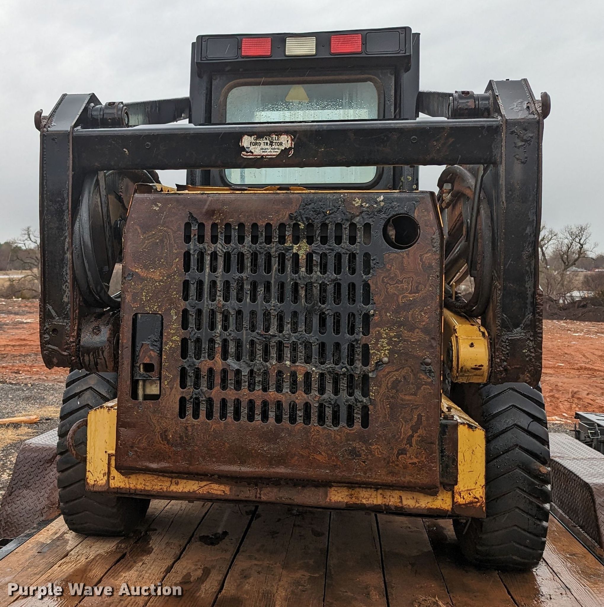 1996 New Holland LX865 skid steer loader. Hours: Unknown, Serial: 895677. Engine Cylinders: 3, Fuel type: Diesel. Transmission Hydrostatic, Two speed travel. Operators station Bucket control: Foot. Features Auxiliary hydraulics, Quick coupler: Manual, Bucket Caterpillar, Width: 72", Cutting edge: Bolt-on. Tires Front: 8.25-15. Notes Unknown operating condition , Trailer not included. 8177 Skyline Dr. Blanchard, OK 73010