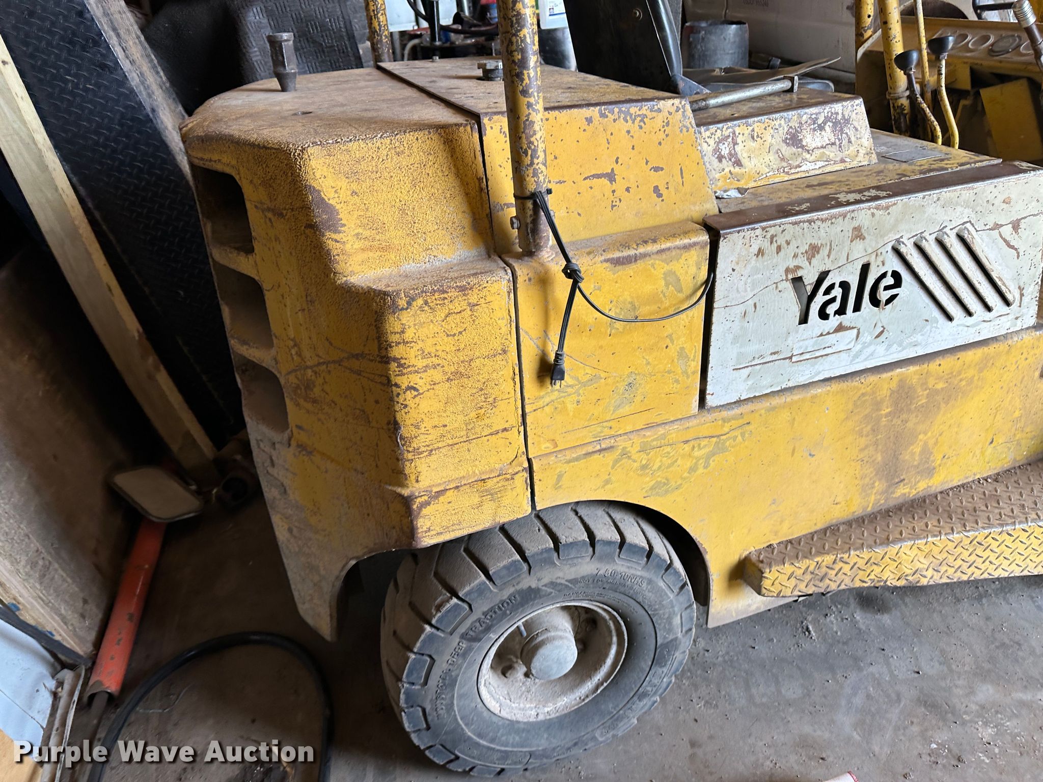 Purple Wave is selling a used Cushion Tire or Pneumatic Forklift in Kansas. This item is a Yale G83P-050-SAS-086 forklift with the following: Hours: 3,880 on meter, Serial: P-238630