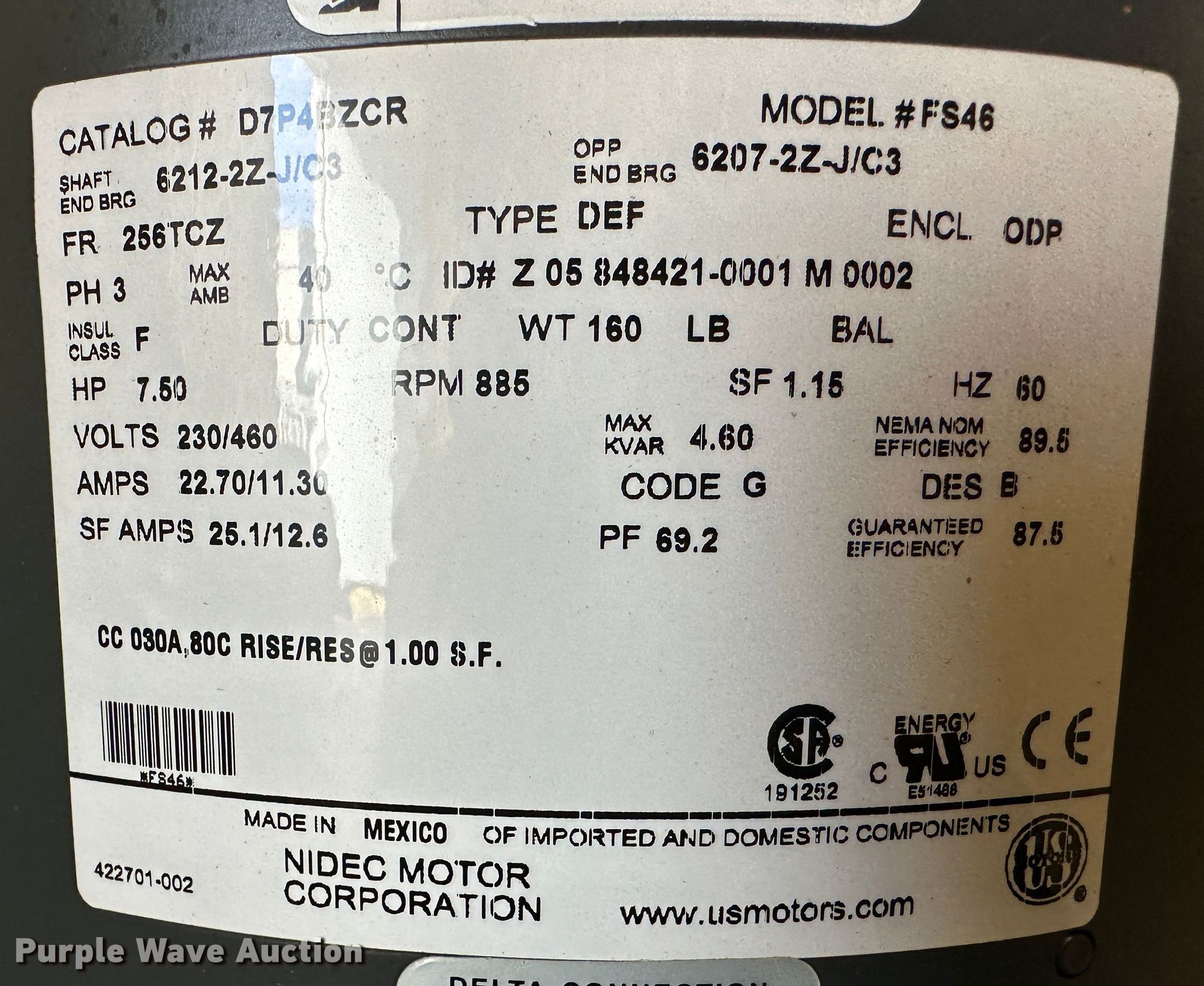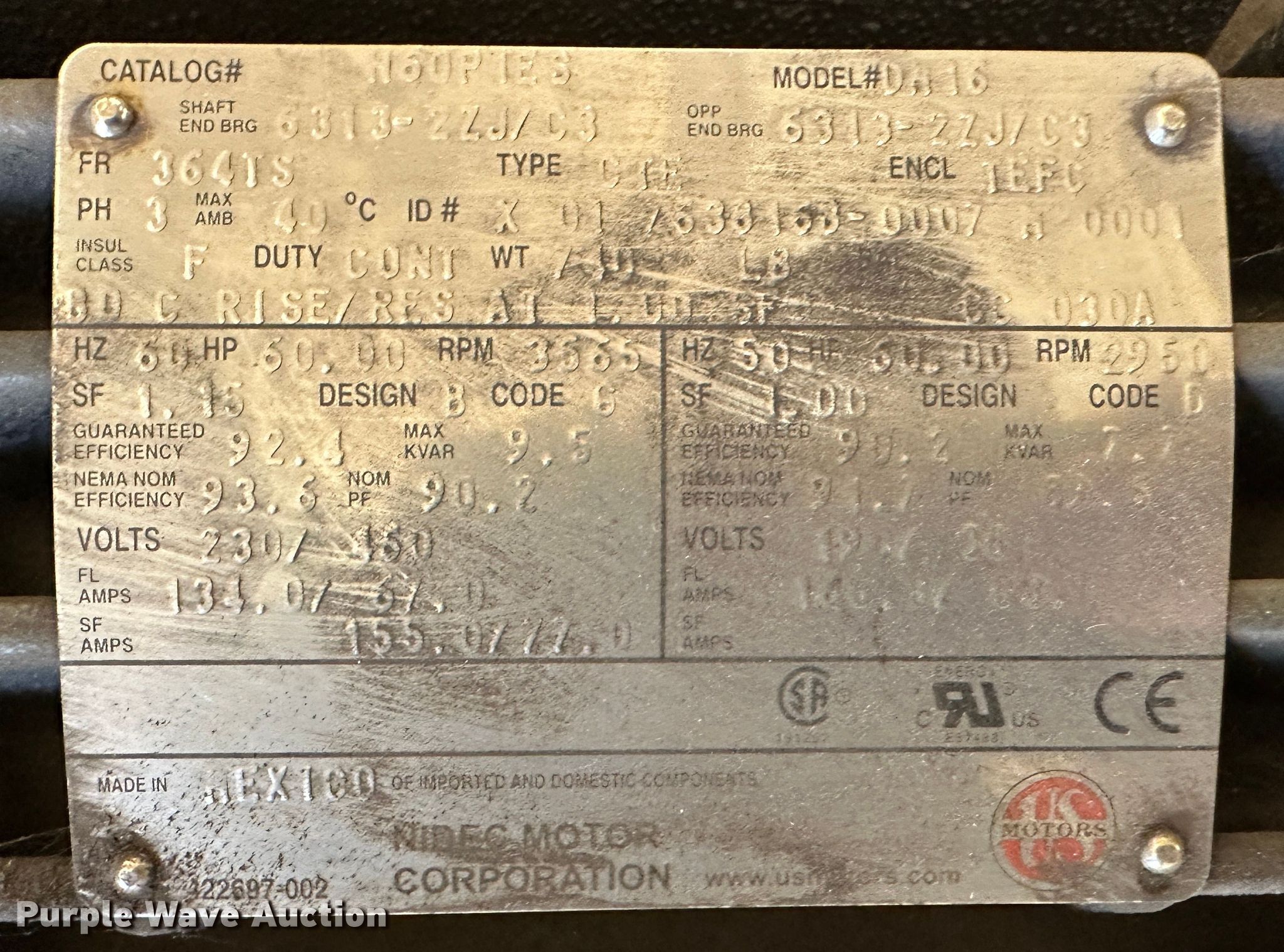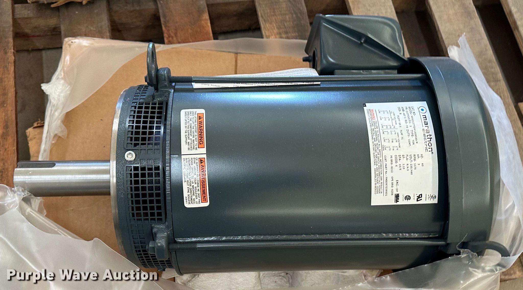 Purple Wave is selling a used Electric Motor in Kansas. This item is a (10) electric motors with the following: (2) 60 HP US electric motors, 230/460 volts, Three phase, 134/67amps, 25 HP US electric motor, 460 volts, Three phase, 29.5 amps, (2) 7.5 HP US electric motors, 230/460 volts, Three phase, 25.1/12.6 amps, (2) 7.5 HP US electric motors, 208 volts, Three phase, 21 amps, 30 HP US electric motor, 230/460 volts, Three phase, 84/42 amps, (2) 3 HP Marathon electric motors, 230/460 volts, Three phase, 9/4.5 amps, Unused