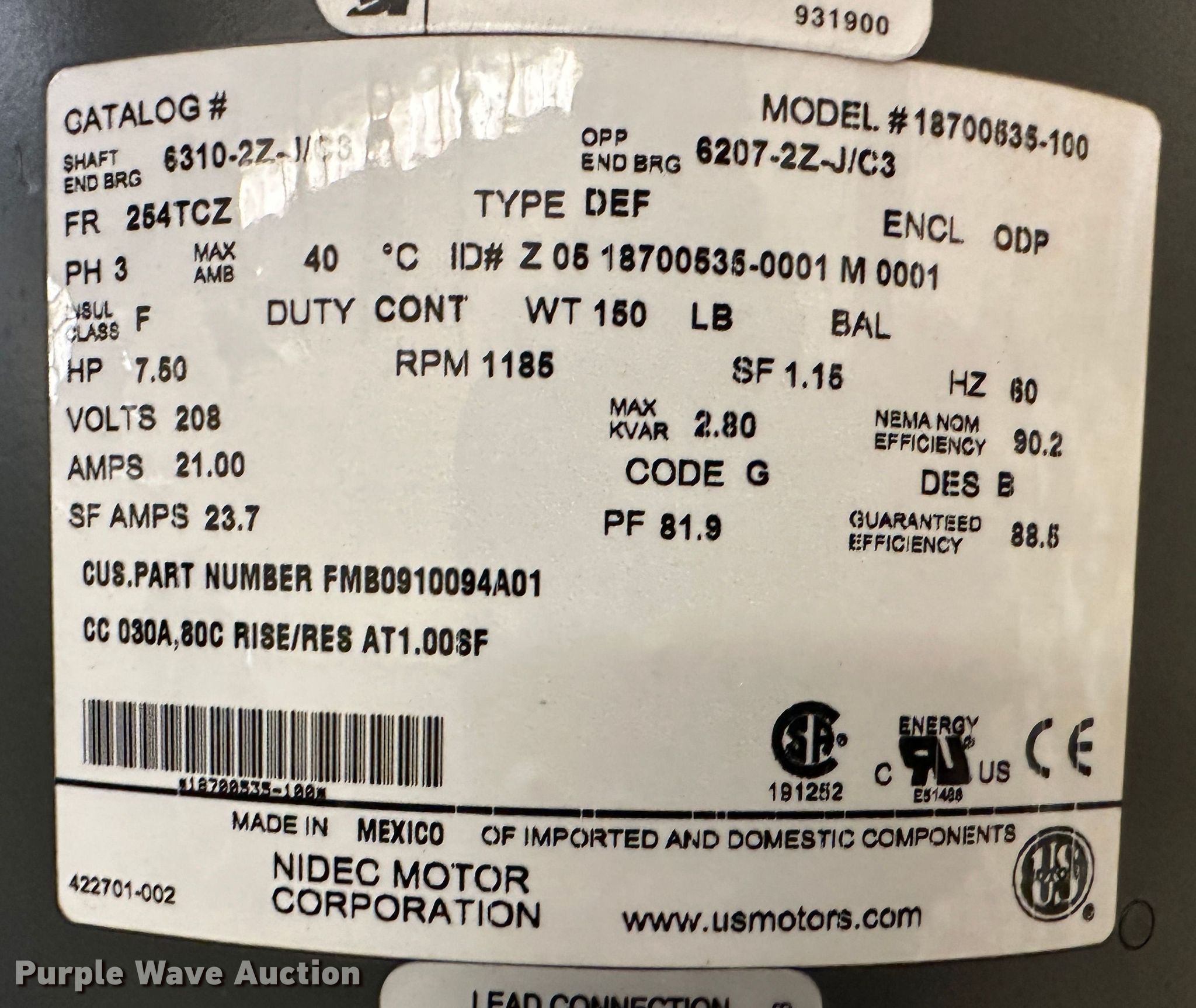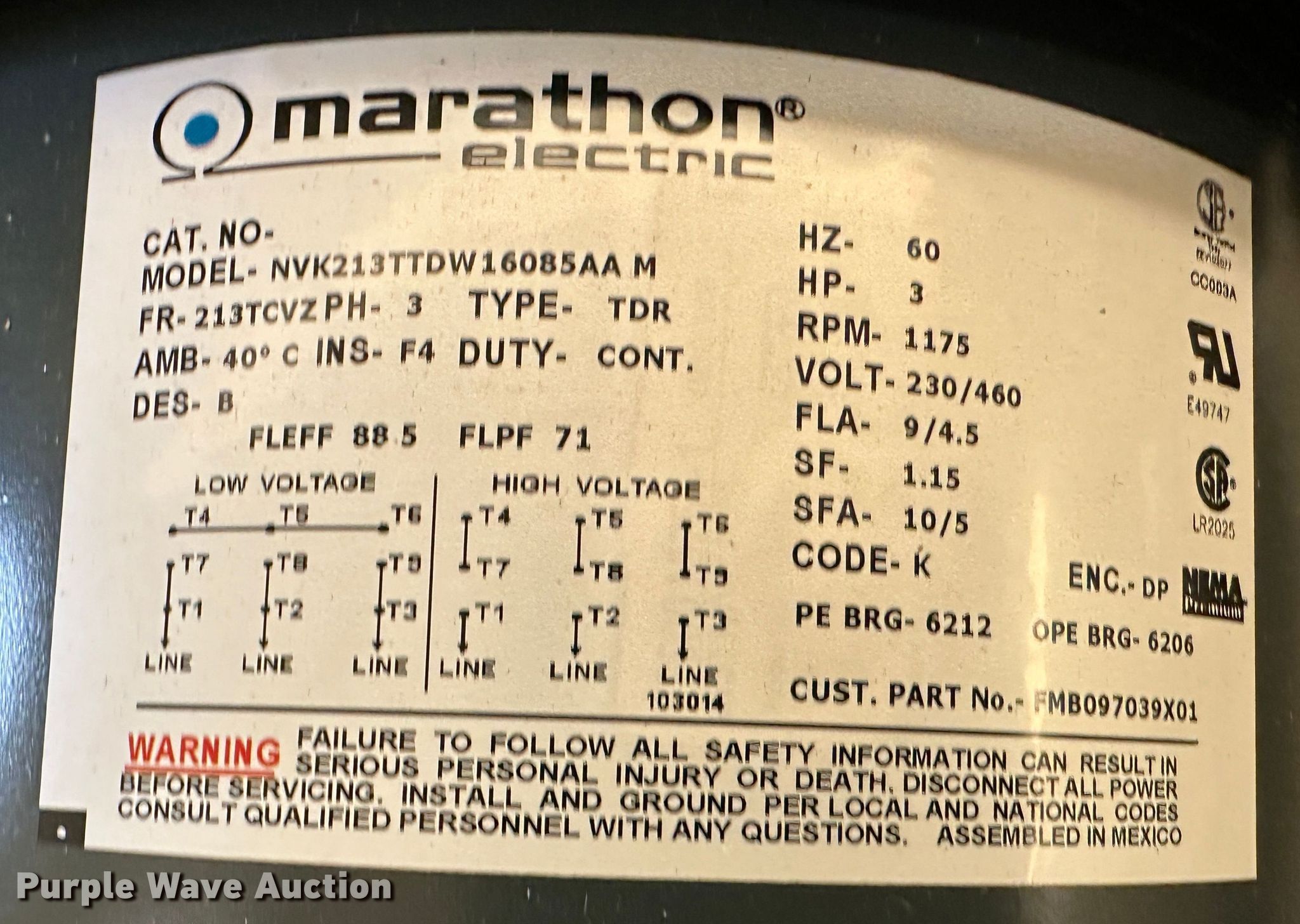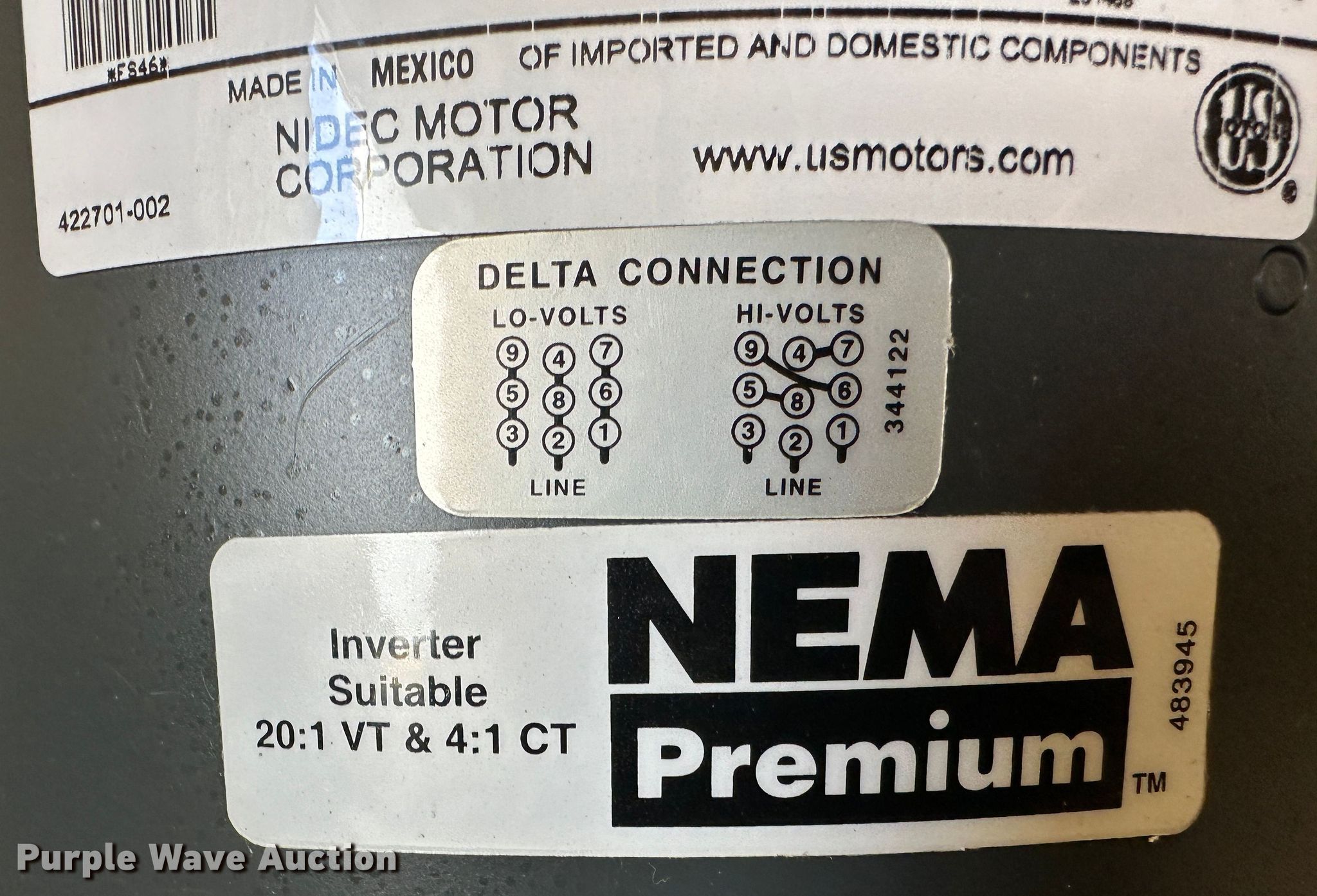 Purple Wave is selling a used Electric Motor in Kansas. This item is a (10) electric motors with the following: (2) 60 HP US electric motors, 230/460 volts, Three phase, 134/67amps, 25 HP US electric motor, 460 volts, Three phase, 29.5 amps, (2) 7.5 HP US electric motors, 230/460 volts, Three phase, 25.1/12.6 amps, (2) 7.5 HP US electric motors, 208 volts, Three phase, 21 amps, 30 HP US electric motor, 230/460 volts, Three phase, 84/42 amps, (2) 3 HP Marathon electric motors, 230/460 volts, Three phase, 9/4.5 amps, Unused