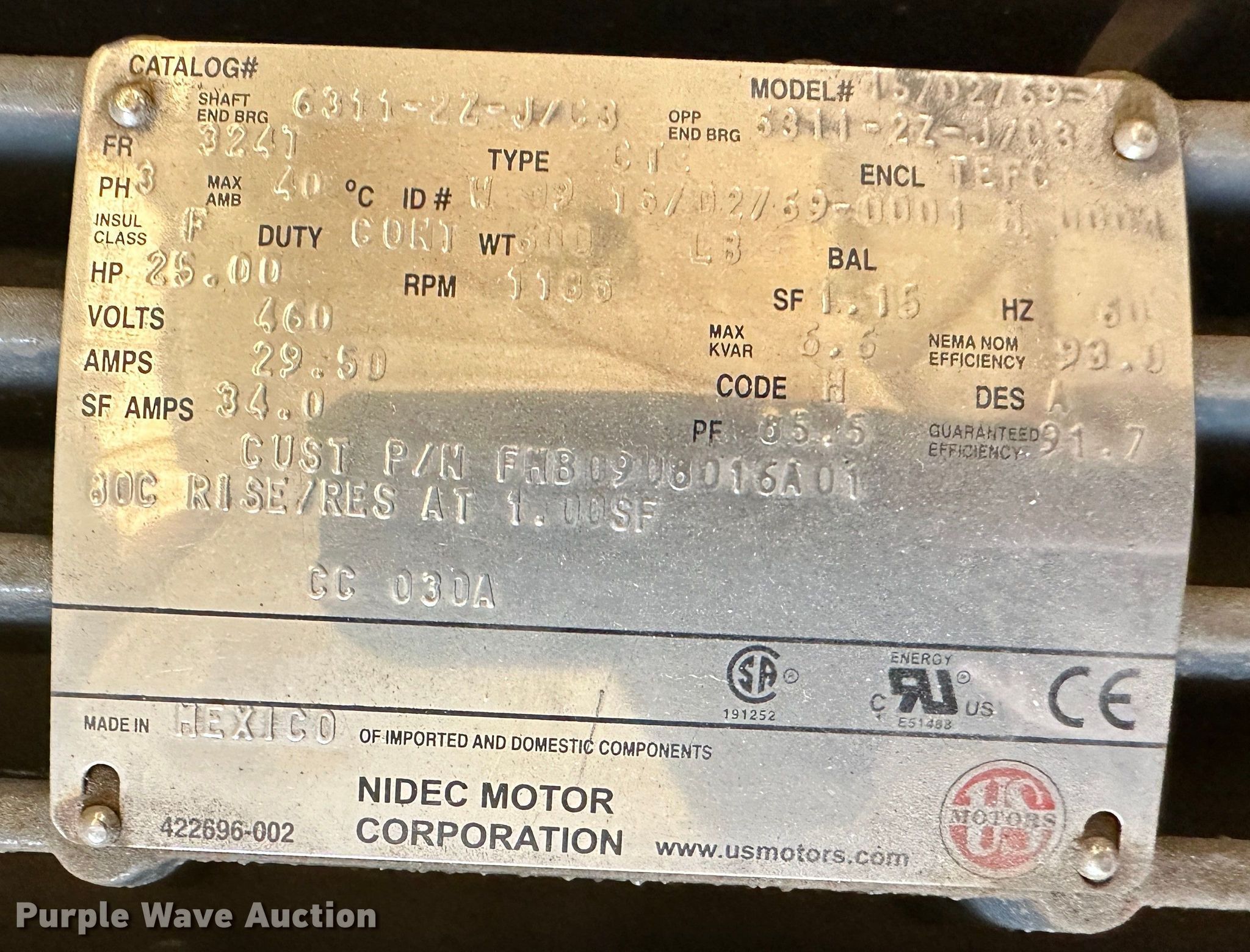 - 25 HP US electric motor
