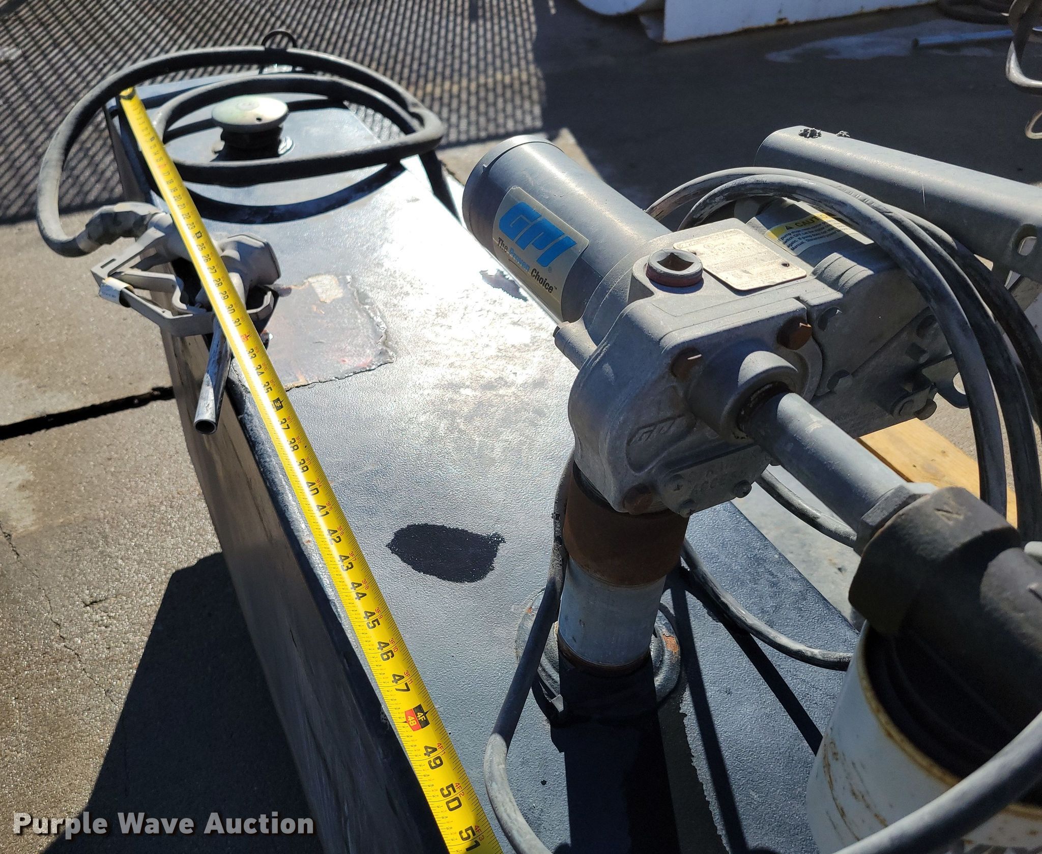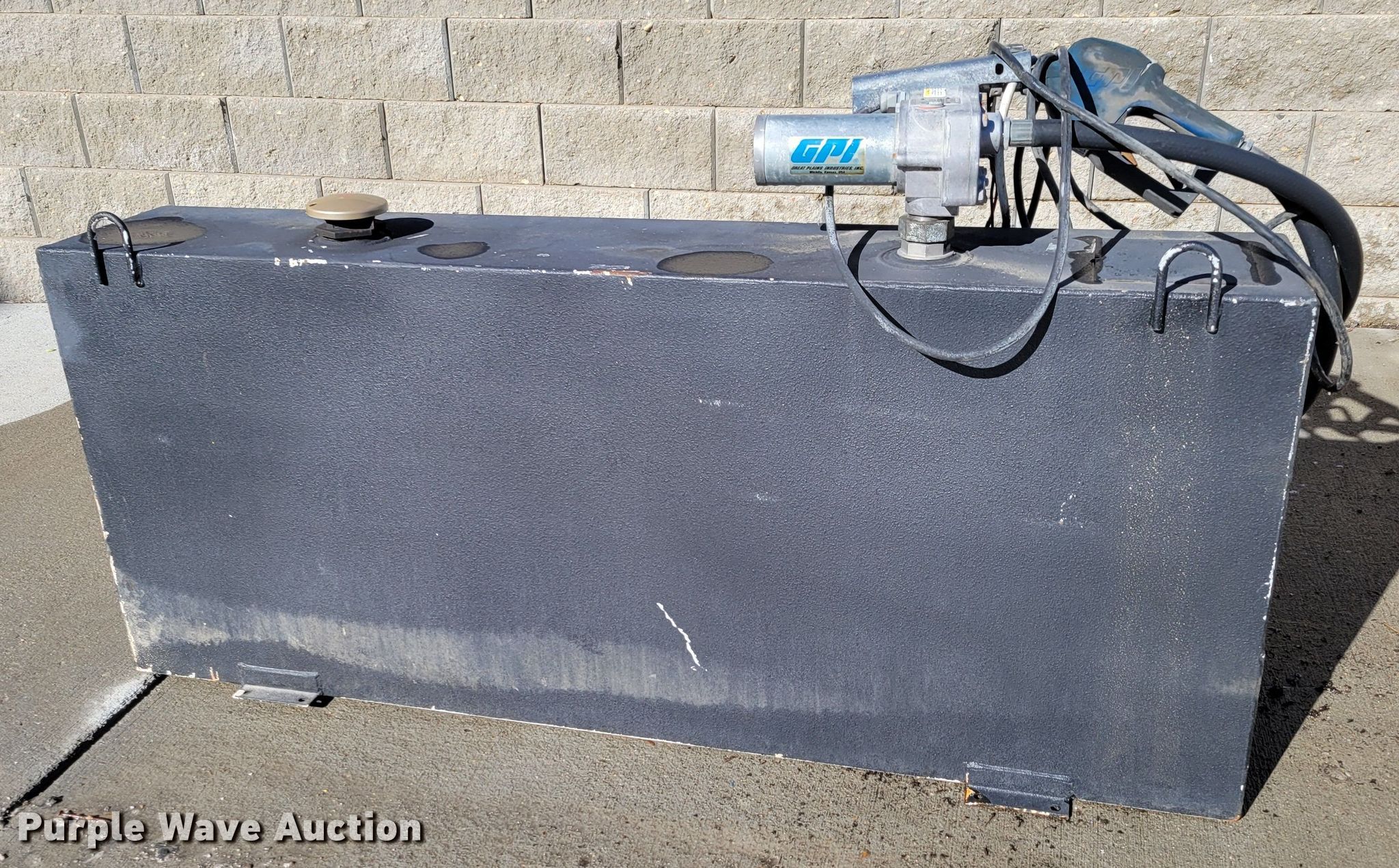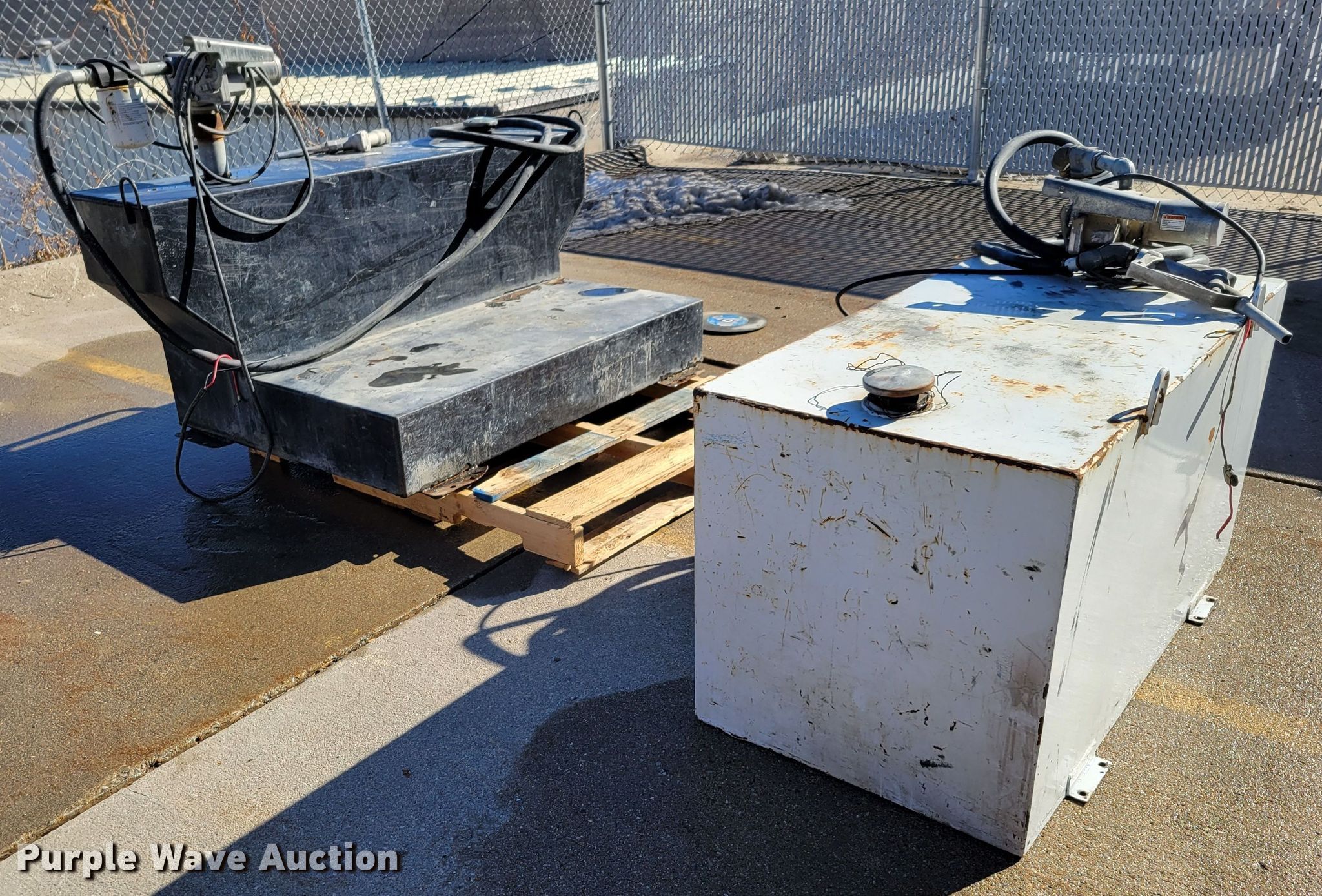 Purple Wave is selling a used Automotive Parts or Acces. in Nebraska. This item is a Automotive accessories with the following: (3) auxiliary fuel tanks, 60"W x 31"D x 25"H, GPI 150S fuel pump, 59"W x 34.5"D x 25"H, GPI 150S fuel pump, 45"W x 23"D x 24"H, GPI 150S fuel pump,, (2) toolboxes, 72"W x 18"D x 18"H