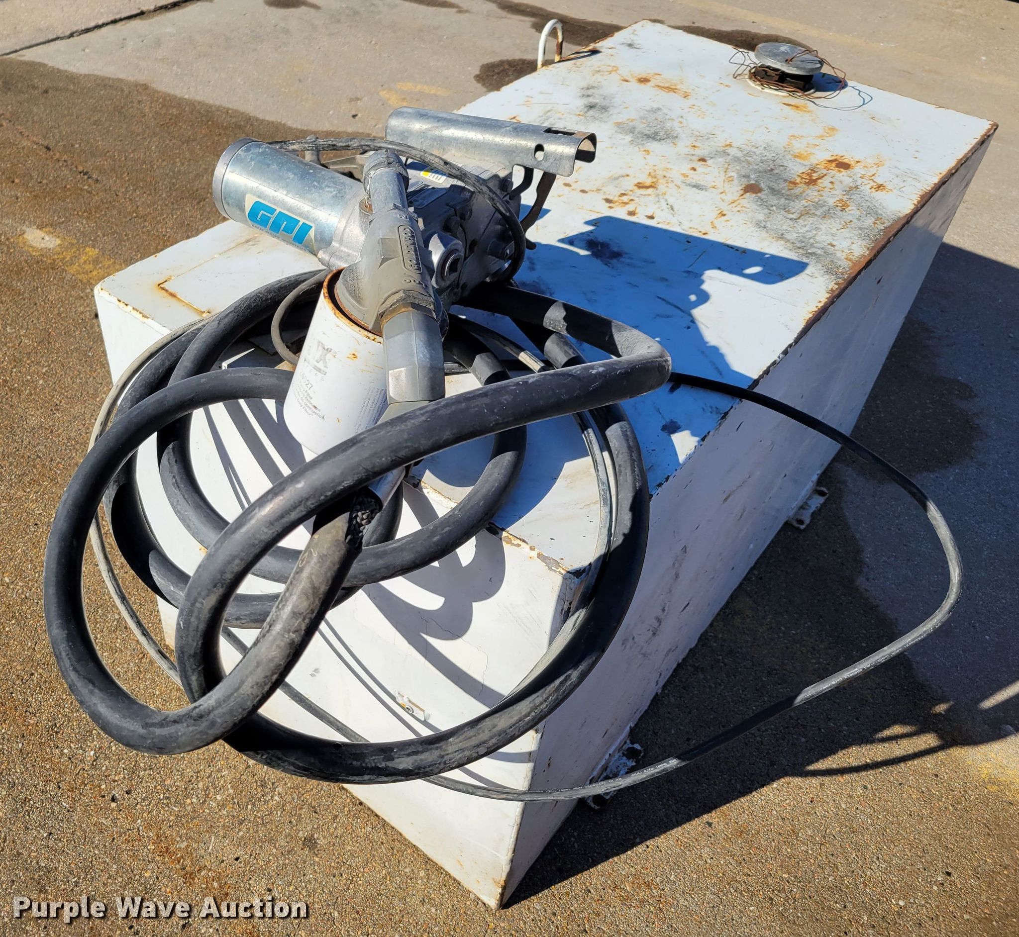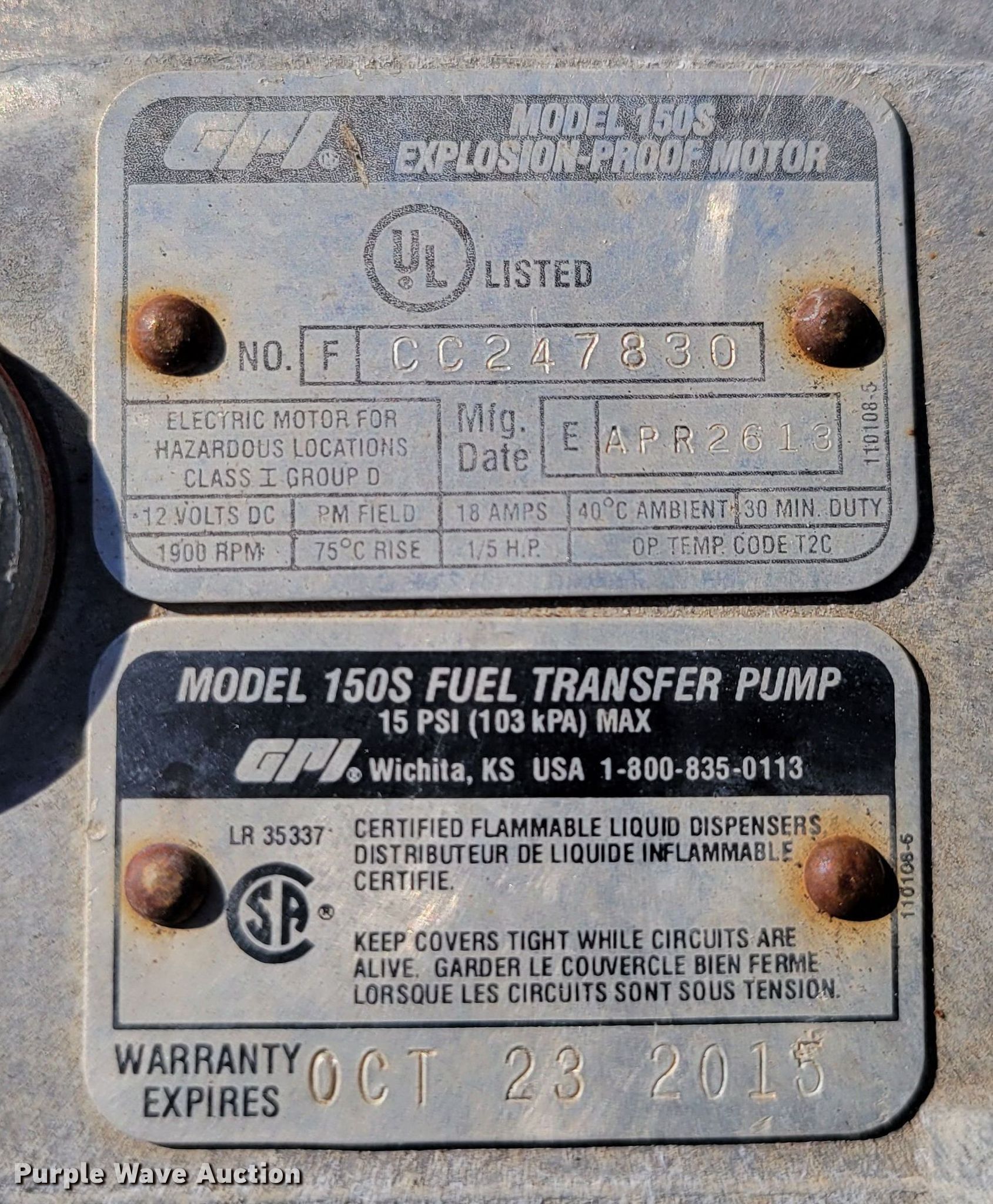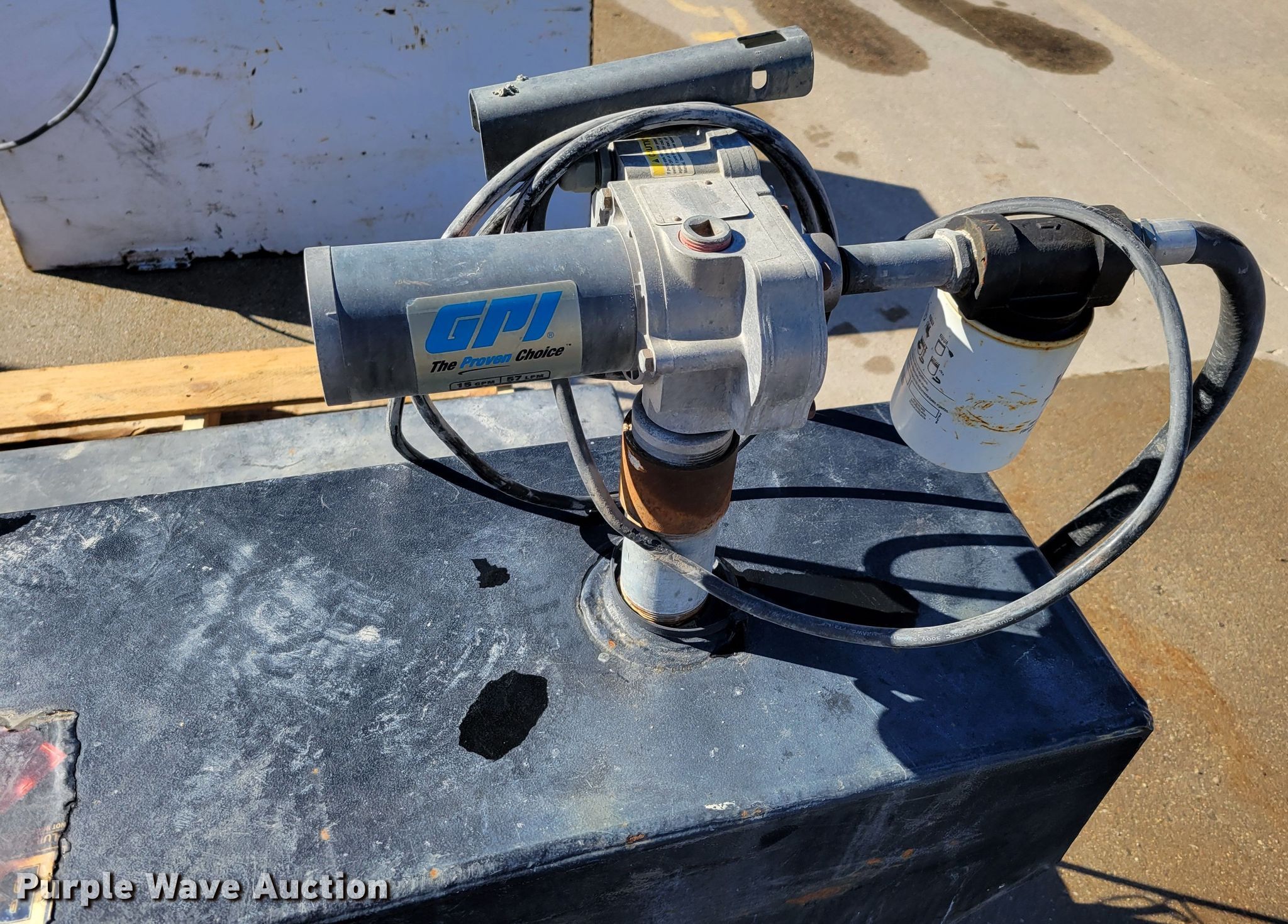 Purple Wave is selling a used Automotive Parts or Acces. in Nebraska. This item is a Automotive accessories with the following: (3) auxiliary fuel tanks, 60"W x 31"D x 25"H, GPI 150S fuel pump, 59"W x 34.5"D x 25"H, GPI 150S fuel pump, 45"W x 23"D x 24"H, GPI 150S fuel pump,, (2) toolboxes, 72"W x 18"D x 18"H