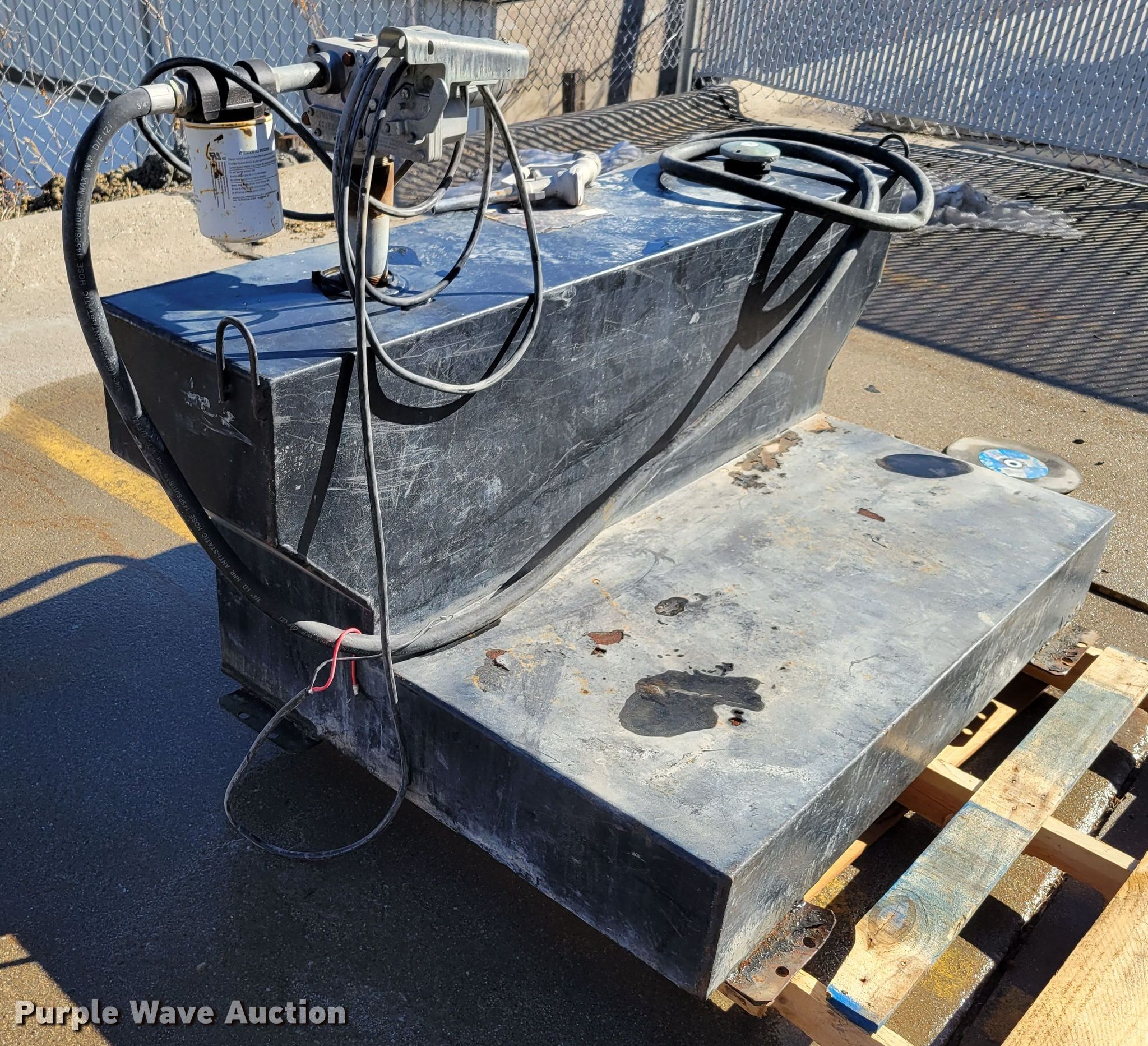 Automotive accessories. (3) auxiliary fuel tanks 60"W x 31"D x 25"H GPI 150S fuel pump, 59"W x 34.5"D x 25"H GPI 150S fuel pump, 45"W x 23"D x 24"H GPI 150S fuel pump, (2) toolboxes 72"W x 18"D x 18"H. 3307 South 67th Street. Omaha, NE 68106