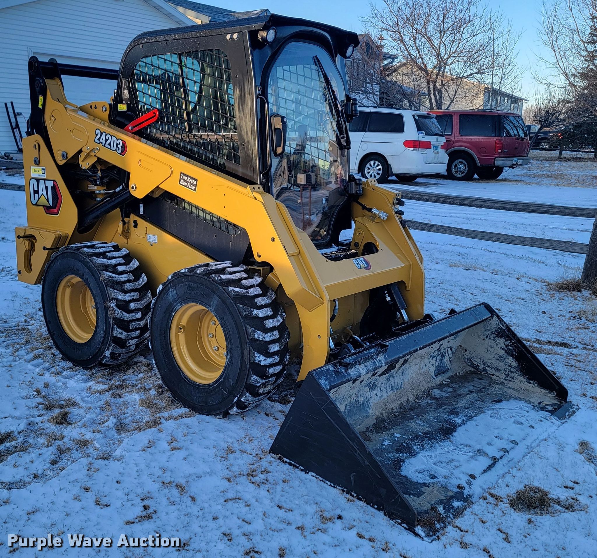 Purple Wave is selling a used Skid Steer Loader in South Dakota. This item is a 2021 Caterpillar 242D3 skid steer loader with the following: Hours: 46 on meter, Serial: CAT0242DEHSX02007