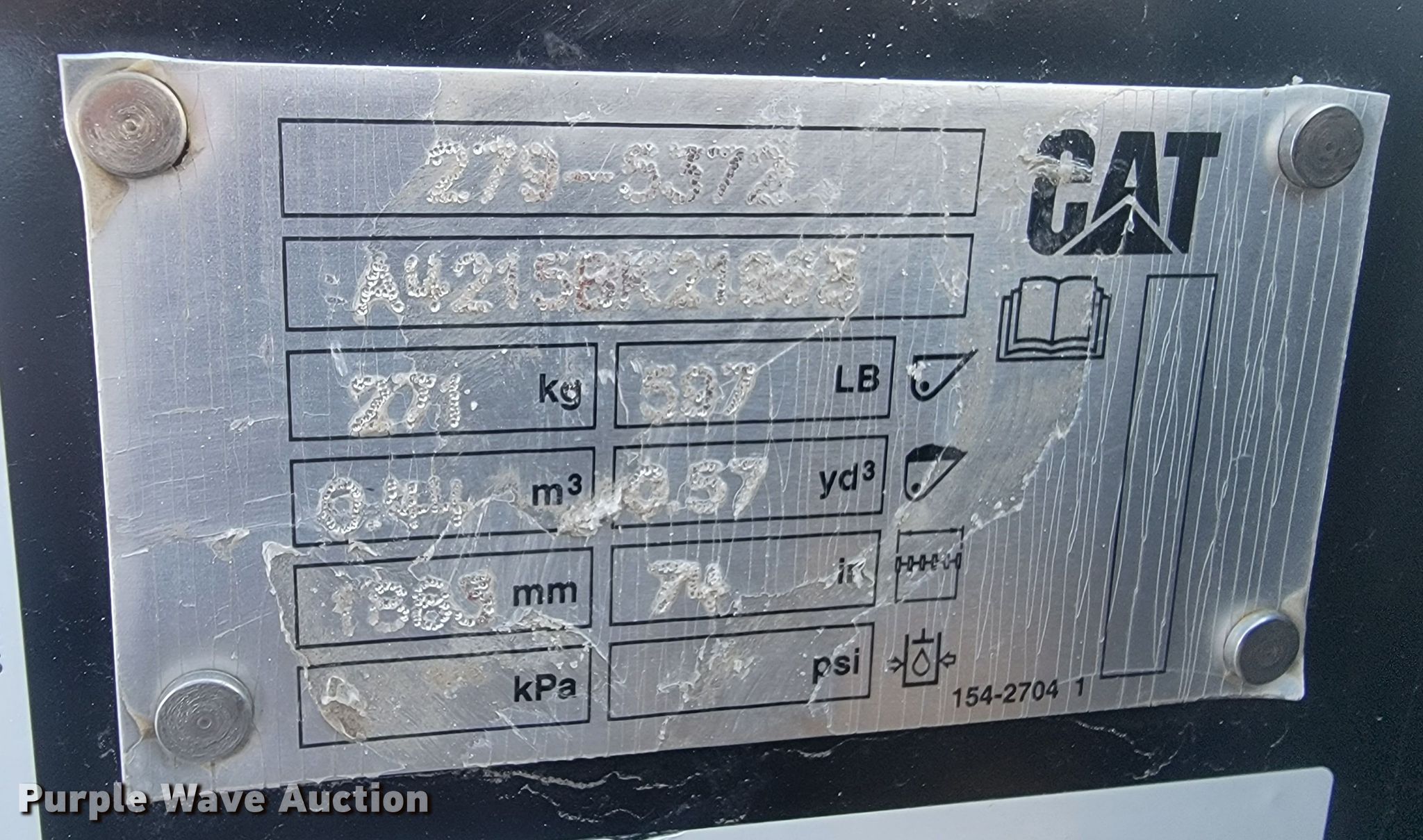 2021 Caterpillar 242D3 skid steer loader. Hours: 46 on meter, Serial: CAT0242DEHSX02007. Engine Caterpillar C3.3B-CR-T-EF04, Displacement: 3.3L, Cylinders: 4, Fuel type: Diesel. Transmission Hydrostatic, Two speed travel. Operators station EROPS, AC, Heat, Bucket control: Hand, Electronic Monitoring System panel, Backup camera. Features Auxiliary hydraulics High flow, Auxiliary electrical outlet, Quick coupler: Hydraulic, Counter weights, Bucket Caterpillar, Capacity: 0.57 cu.yd., Width: 74", Cutting edge: Bolt-on. Tires Size: 12-16.5. 611 Cardinal Drive. Box Elder, SD 57719