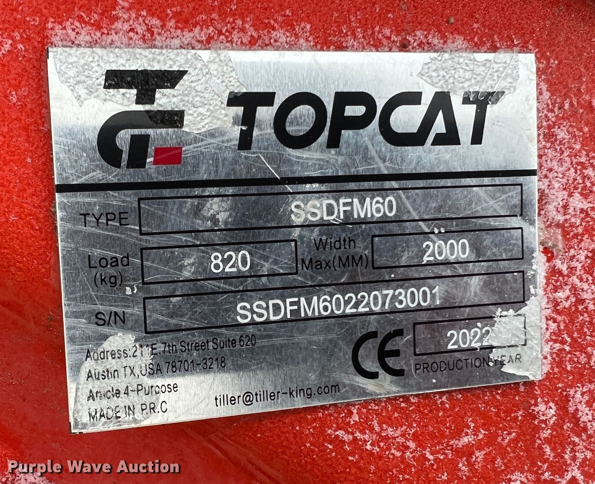 Purple Wave is selling a used Skid Steer Attach. in Missouri. This item is a 2022 TopCat SSDFM60 skid steer mulcher with the following: Serial: SSDFM6022073001, Width: 80"