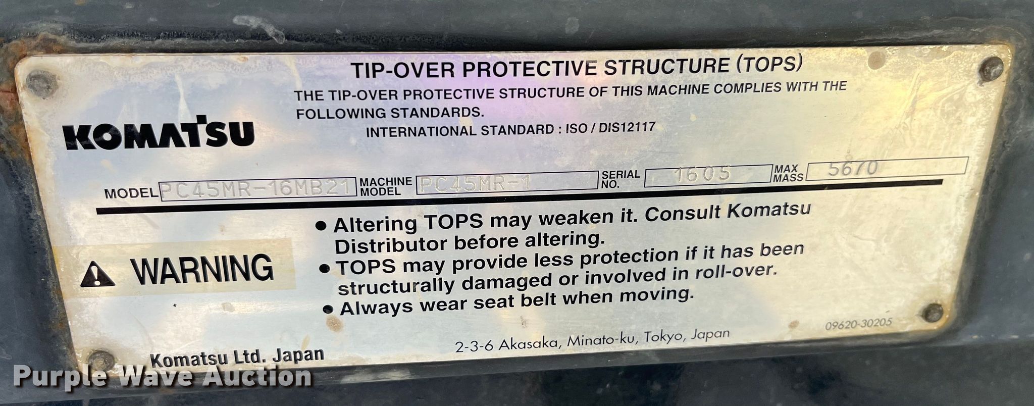 Purple Wave is selling a used Mini Excavator in Missouri. This item is a 2003 Komatsu PC45MR-1F mini excavator with the following: Hours: 3,832 on meter, Serial: 3337