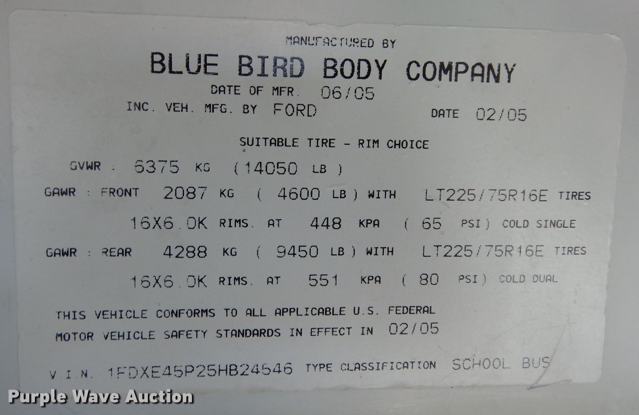 Purple Wave is selling a used Bus in Kansas. This item is a 2005 Ford E450 Super Duty school bus with the following: Miles: 138,829 on odometer, Miles or hours may vary, unit still in use, VIN: 1FDXE45P25HB24546, Unit #: 14