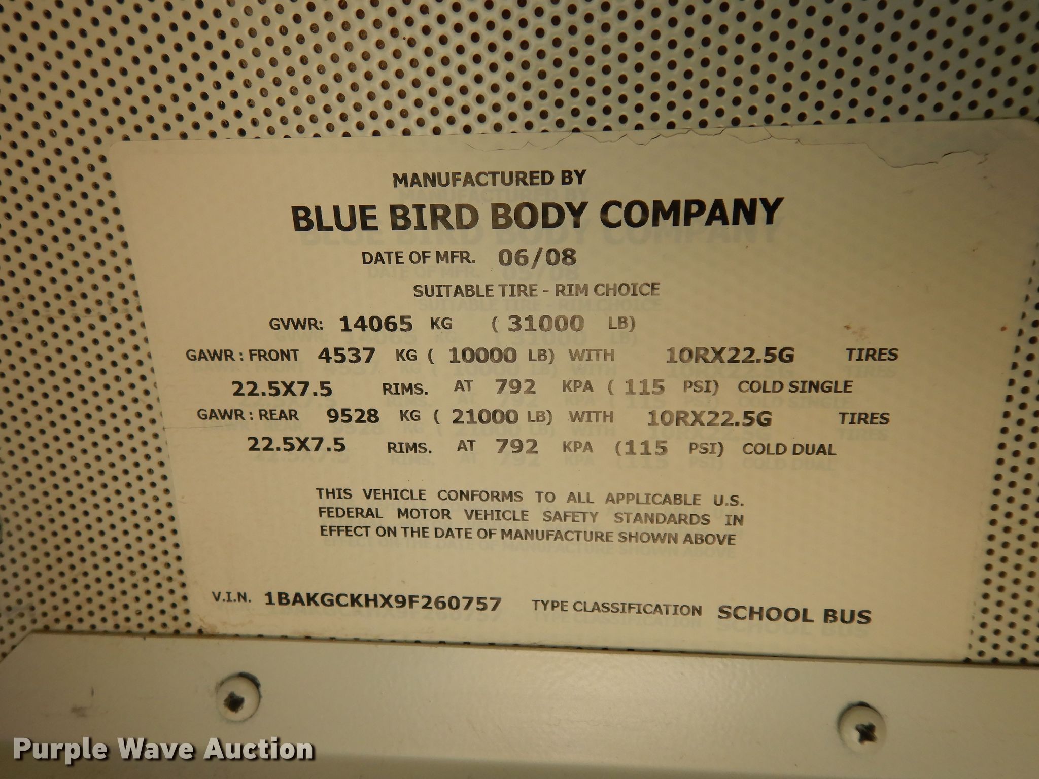 Purple Wave is selling a used Bus in Kansas. This item is a 2009 Blue Bird Vision school bus with the following: Miles: 135,728 on odometer, VIN: 1BAKGCKHX9F260757, Unit #: 1