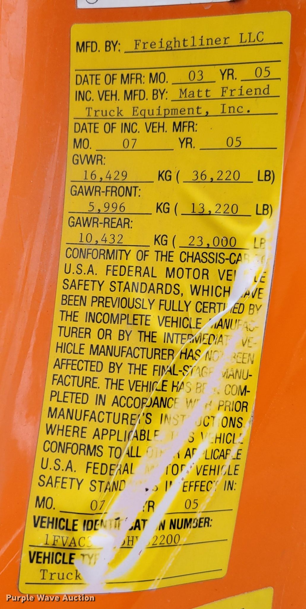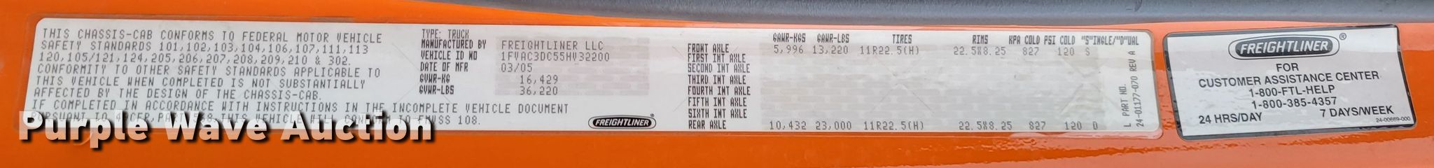 • VIN: 1FVAC3DC55HV32200