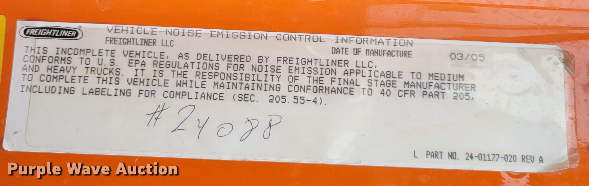 Purple Wave is selling a used Construction Dump Truck in Nebraska. This item is a 2005 Freightliner Business Class M2 dump truck with the following: Miles: 96,875 on odometer, Hours: 8,220 on meter, VIN: 1FVAC3DC55HV32200, Unit #: 24088